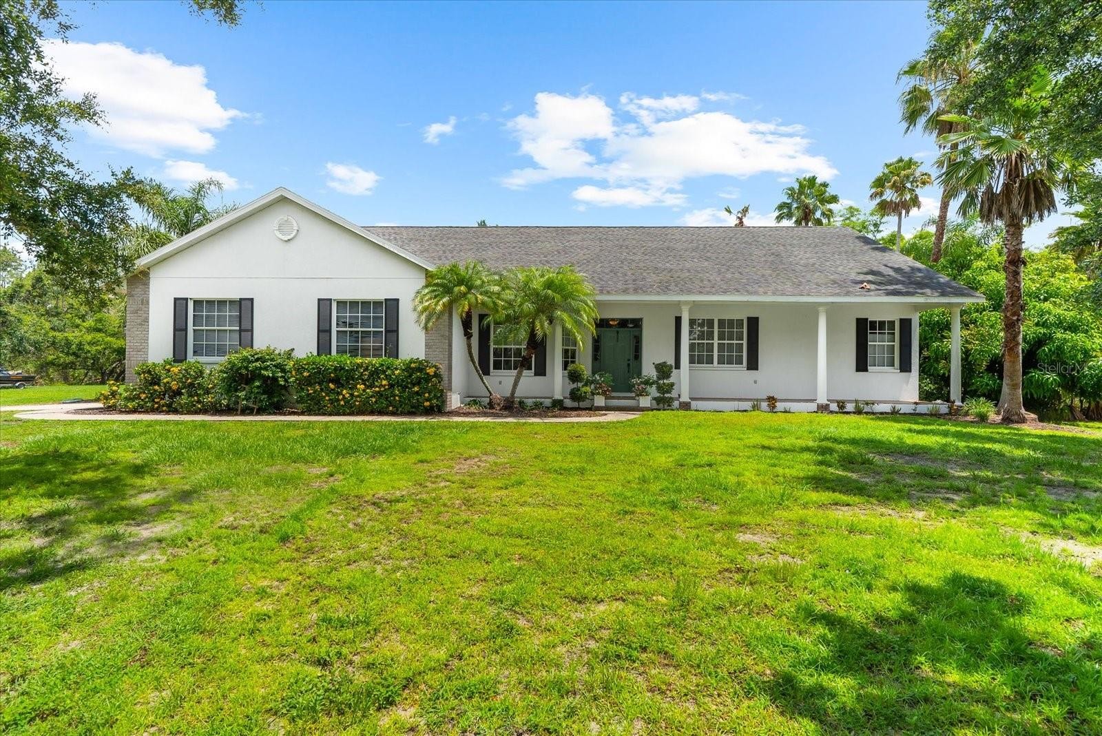 Incredible Opportunity in Panther Ridge....50,000 price reduction!** Home is now vacant and being refreshed! New photos coming in November. Easy to show! This home is priced to sell! Welcome to your own private retreat on over 9 acres in the heart of Manatee County’s most sought after equestrian community. Tucked away at the end of a quiet street, this beautiful property offers the peaceful lifestyle so many dream of, with room for chickens, cows, horses, and even future expansion with up to three total structures permitted including barns or workshops with HOA approval. Custom built by Cahill Homes, this three bedroom plus den, two bath residence is ideally positioned on one of the largest spring fed lakes in Panther Ridge. From nearly every angle, you will enjoy breathtaking views and frequent visits from deer, cranes, eagles, turtles, and more. The home has been tastefully updated and thoughtfully maintained, featuring a popular great room layout with vaulted ceilings, a skylight, a cozy brick fireplace, and a formal dining area as well as a spacious breakfast nook with oversized windows that bring the outdoors in. The chef’s kitchen boasts solid wood cabinetry, stainless steel appliances including a double convection oven, granite countertops, and vinyl plank flooring throughout the main living spaces. The owner's suite includes sliding doors to the pool area, a generous walk in closet, and a luxurious spa style bath with a Roman walk in shower and soaking tub. Outdoors, unwind on the travertine pool deck under a tongue and groove wood ceiling lanai. The saltwater pool and spa overlook the lake, where you can fish, canoe, or simply relax on your own private beach. Follow the walking trail through native cypress, pine, and oak trees and gather around the firepit for peaceful evenings under the stars. Sunrise and sunset views reflect beautifully across the always full lake, which is stocked with tilapia. Additional highlights include an extra deep 20 by 28 side entry garage, a full laundry room, and a variety of fruit trees planted around the property. Recent upgrades include a new roof in 2018, a solar powered automatic driveway gate, upgraded gig speed internet, a new washer in 2022, new pool heater 2024, two new AC systems in 2024, brand new garage door 2024, reverse osmosis water system, and conversion of the pool to a salt system. Residents of Panther Ridge enjoy a neighborhood park with sports fields, a horse only area, basketball court, and playground. Miles of scenic trails for hiking and riding offer a sense of true country living, while nearby Lakewood Ranch brings shopping, dining, and top rated schools just minutes away. Sarasota’s renowned beaches, St Pete, and Tampa are also within easy reach. Whether you are looking for a tranquil personal homestead, space for animals, or a forever home surrounded by nature, this special property offers a rare blend of privacy, convenience, and character. Inquire about owner financing option.
