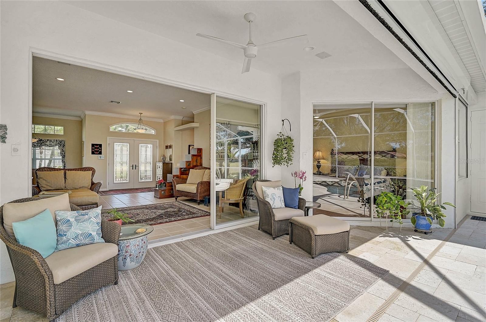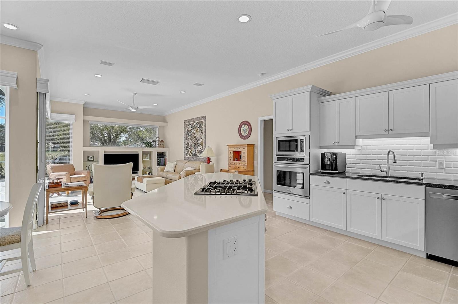 Welcome to this exceptional residence in the sought-after community of Calusa Lakes, gracefully positioned along the 13th fairway and framed by impeccable curb appeal. A stately paver driveway and walkway are complemented by lush, manicured greenery, creating an inviting first impression. The highly coveted 3-CAR garage provides ample space for vehicles, storage, or hobby pursuits. Inside, the thoughtfully renovated interior showcases light, contemporary cabinetry, an elegant backsplash, quartz countertops, and a gas range—perfectly suited for the culinary enthusiast. The home features three generously sized bedrooms, two of which are enhanced with spacious walk-in closets, and boasts a seamless flooring design with no carpet throughout, ensuring both sophistication and ease of maintenance. The primary suite is privately situated on its own side of the home, offering a tranquil retreat. Its beautifully updated bath includes a spacious walk-in shower designed with comfort and style in mind. Step outside to the west-facing travertine deck, where a private heated pool and spa invite relaxation. The outdoor living space is further enhanced by an outdoor shower, a new pool heat pump, and solar panels for energy efficiency. Additional recent upgrades include a NEW ROOF (2022), a new HVAC system (2025), and full hurricane protection for peace of mind. Ideally located just moments from the charming boutiques, fine dining, and performing arts venues of Venice Island. This home also offers convenient access to Gulf beaches, major highways, and a new hospital facility—blending refined living with everyday convenience. BE SURE TO VIEW THE 3-D & AERIAL TOURS.