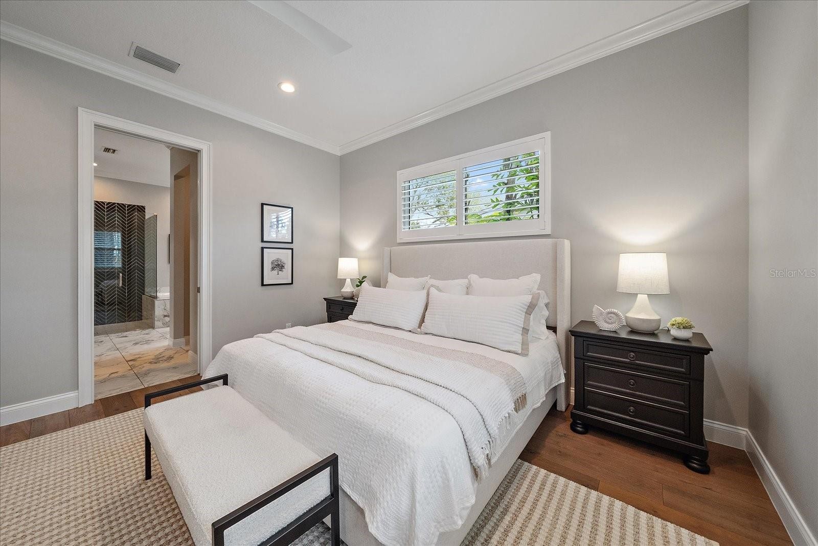 Located East of the Trail within the city limits of Sarasota, this custom-built 2017 Voigt Brothers pool home offers 3,120 square feet of living space on an oversized, gated, and fully fenced lot in one of Sarasota’s most sought-after residential neighborhoods. Just minutes to Siesta Key Beach, Lido Key Beach, downtown Sarasota, and Southside Village, this central Sarasota location offers privacy, convenience, and long-term value. Being located within Sarasota city limits also provides potential short-term rental flexibility, subject to current city regulations and buyer verification. Positioned in Flood Zone X and built with concrete block construction, the home offers durability and added peace of mind. Designed with a functional open floor plan, the home features high ceilings, abundant natural light, and seamless indoor-outdoor living. The living room is anchored by a modern electric fireplace, creating a warm focal point for the main gathering space. Automatic blinds at the front door provide added privacy and convenience. A three-panel sliding glass door connects the main living area to the covered lanai and screened pool, a highly desirable feature in Sarasota pool homes. The kitchen is equipped with Quartz countertops, stainless steel appliances, gas range, large center island, and newly installed refrigerator, microwave, and wine refrigerator in 2025. The primary bedroom is located on the first floor and serves as a private owner’s retreat with two walk-in closets and a spacious bath featuring marble flooring, soaking tub, walk-in shower, and dual vanities. A dedicated first-floor laundry room adds everyday convenience. Upstairs, engineered hardwood flooring has replaced previous carpet throughout the staircase and second level. The second floor includes a large bonus room ideal for a media room, home office, or gym. Two secondary bedrooms share a bath on one side, while a second primary suite with ensuite bath and walk-in closet is positioned privately on the opposite side, creating a desirable double-primary layout suitable for guests, multigenerational living, or flexible use. Outdoor living is designed for entertaining, featuring a screened lanai, paver pool deck, covered terrace, and fully equipped outdoor kitchen adjacent to the pool area. A newly added pool handrail enhances accessibility, and the fully fenced side yard provides usable green space for pets or recreation. The garage features epoxy-coated flooring for a clean, finished appearance. Recent improvements include fresh interior paint, professional cleaning, power washing, gutter maintenance, and refreshed landscaping, making the home move-in ready. Additional features include hurricane impact-rated windows and doors, spray foam insulation, gas tankless water heater, LED lighting, and solid concrete block construction for energy efficiency and storm protection. Zoned for Southside Elementary, Sarasota Middle School, and Sarasota High School, this East of the Trail Sarasota home offers a flexible double-primary floor plan, outdoor kitchen, pool, and proximity to beaches and downtown in one of the city’s most desirable residential areas.