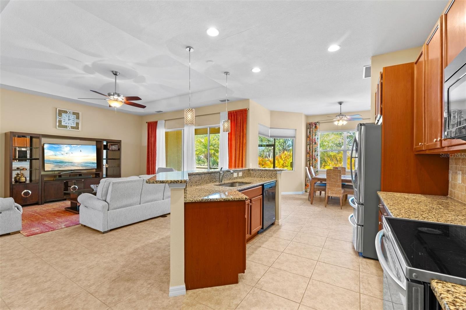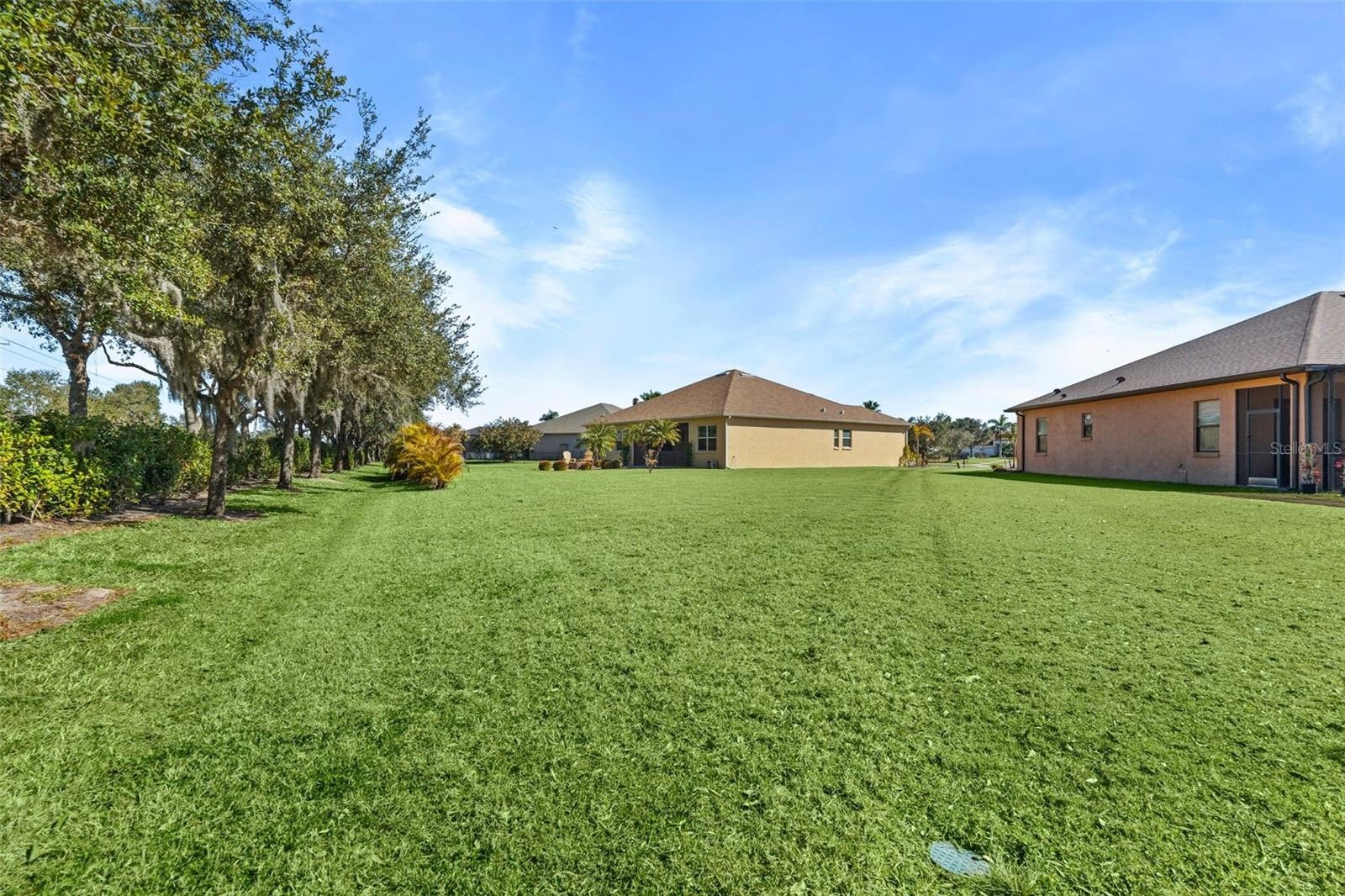 Stunning Aruba Model on the largest lot in River Plantation! Located on a quiet cul-de-sac, this beautifully maintained 3BR/2BA home plus den/office (easily a 4th bedroom) offers privacy, space, and flexibility. Situated on a rare 0.40-acre premium lot—the largest in the neighborhood, enjoy an oversized backyard with plenty of room to entertain or add a pool. Recent upgrades include a NEW ROOF, fresh interior/exterior paint, and energy-efficient improvements for low maintenance and long-term savings. The open floor plan features a spacious Great Room with tray ceilings and triple sliding glass doors leading to an oversized lanai overlooking the lush backyard and fire pit area. The gourmet kitchen includes a large island, solid wood cabinetry with pull-out drawers, granite countertops, stainless steel appliances, breakfast bar, and a dining area with backyard views. The Owner’s Suite offers tray ceilings, walk-in closet, a spa-style bath with soaking tub, dual vanities, walk-in shower, and private lanai access. Two additional bedrooms are located in the guest wing with a Jack-and-Jill bath and pocket door for added privacy. Additional features include granite throughout, crown molding, ceiling fans, hurricane shutters, irrigation system, and a spacious 2-car garage. River Plantation amenities include a 2-mile nature trail, canoe/kayak launch, tennis and basketball courts, playground, community pool, and clubhouse. Convenient to I-75, Fort Hamer Bridge, Lakewood Ranch, shopping, dining, and Gulf beaches. NO CDD FEES and NO FLOOD INSURANCE REQUIRED!