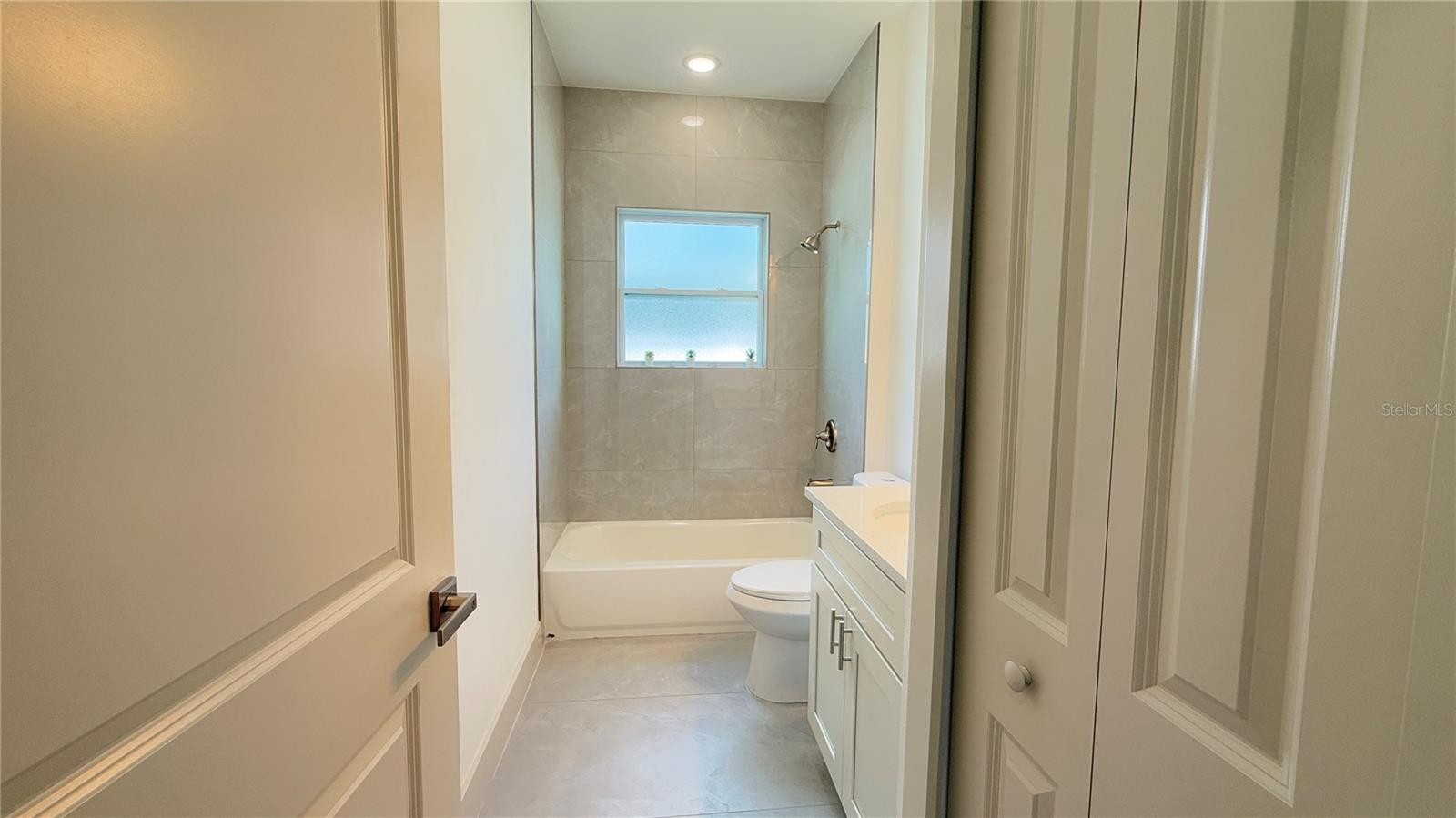 This elegant 4-bedroom, 2.5-bath home offers 1,696 sq.ft. of living space with an open-concept design and modern finishes throughout. The kitchen features a beautiful QUARTZ WATERFALL ISLAND and sleek cabinetry. The spacious living room includes an ELECTRIC FIREPLACE, creating a cozy and stylish gathering space. The primary suite offers a luxurious bathroom with a STANDALONE TUB and dual sinks. Enjoy outdoor living under the covered lanai and the convenience of a double-car garage. With a total construction area of 2,412 sq.ft., this home combines functionality and modern design perfectly. Additional features include a SMART KEY system for enhanced security and the peace of mind that comes with a 2-10 HOME BUYERS WARRANTY. Don’t miss out—schedule a showing today!