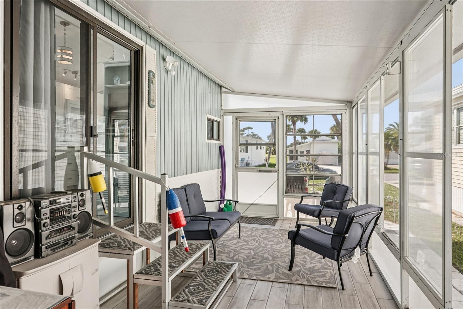 This fully remodeled and furnished 1-bedroom, 1-bathroom manufactured home is a fantastic opportunity for a second home, or permanent residence! Located in the gated 55+ community of Kings Gate Park, it is just 3 miles from Nokomis Beach! Situated on one of the highest elevations in the park and outside of a flood zone, the property includes land ownership and a low monthly HOA fee that covers cable, internet, water, sewer, and lawn care. Inside, this beach cottage-inspired retreat has been updated from top to bottom. Brand-new vinyl flooring runs throughout, complemented by modern window treatments, new front and back windows, solid wood cabinets in the kitchen, and updated electrical. The plumbing has been completely re-piped, and a new hot water tank ensures worry-free living. No polybutylene grey pipes! The beautifully updated bathroom features a walk-in shower with a sleek quartz countertop vanity, while the lanai, complete with new screens, extends your living space. For added convenience, the enclosed laundry area includes a new stackable washer and dryer. Outside, enjoy the privacy of a large green space beyond the newly installed paver patio—perfect for relaxing or entertaining. The spacious driveway provides ample parking for you and your guests. Beyond your home, Kings Gate Park offers an array of amenities to enrich your lifestyle, including a private boat ramp, RV and boat storage, a sparkling community pool, and courts for pickleball, tennis, and shuffleboard. With its prime location near pristine Gulf beaches, meticulous updates, and a vibrant community setting, this home offers the best of Florida living.
