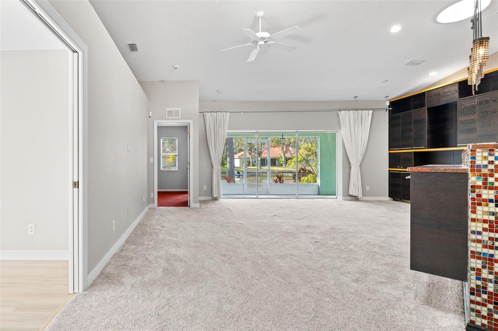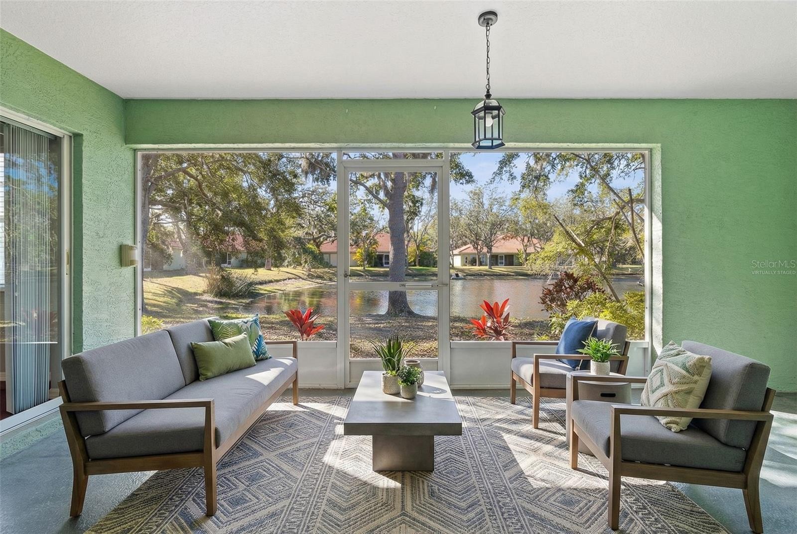 Under contract-accepting backup offers. One or more photo(s) has been virtually staged. Tucked inside the quiet community of The Palms of Manatee, this beautifully redesigned end-unit villa welcomes you with abundant natural light, thoughtful upgrades, and true pride of ownership. The flexible floor plan offers 2 BEDROOMS plus a BONUS DEN/FLEX ROOM is perfect for a home office, reading retreat, or guest space. The primary suite features a custom built-in cabinet wall, providing generous and beautifully integrated storage. The sunshine fills the open living spaces, creating a warm and inviting atmosphere. The heart of the home is the exceptional custom chef’s kitchen — featuring an impressive 87 cabinets and drawers, offering storage rarely found in a villa. Designed for both serious cooking and effortless entertaining, it includes a KitchenAid warming drawers, SubZero cooling drawers, convection oven, and high-end dishwasher. Every detail was selected with both function and quality in mind. Step outside to the screened and covered patio overlooking a peaceful pond — an ideal spot for morning coffee, quiet evenings, or simply enjoying the tranquil water view year-round. Stained concrete floors add character and durability, with carpet currently installed in select rooms for comfort (and easily removable if a buyer prefers the concrete finish throughout). The hot water heater was replaced in 2022. This specific HOA includes just 18 units. The Low monthly fee of $386 covers cable, grounds maintenance, roof maintenance and replacement, exterior paint and maintenance, building insurance, reserves, and scheduled power washing of driveways and homes — providing true low-maintenance living. Conveniently located with easy access to the Sunshine Skyway Bridge, Bradenton, and Palmetto, yet peacefully positioned within a small, quiet neighborhood. For the buyer who loves to cook, host, or simplify life without sacrificing quality — this villa offers comfort, charm, and thoughtful design in all the right places.