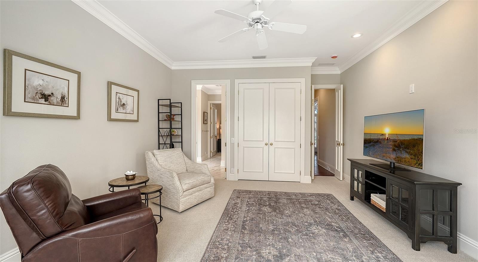 Experience the charm of this original Bo MacEwen–designed home in The Oaks Clubside. Ideally located on a quiet cul-de-sac, in the Saint James Park enclave, this 3 bedroom residence with 2.5 baths, overlooks the opening hole of the Heron Course. Clean, bright and beautifully updated and maintained, this home has an open floor plan and features high, coffered ceilings, crown molding, French doors and gleaming mahogany floors. Extensively improved, the home has been repainted inside and out, with refurbished flooring throughout (including the garage), new carpeting, a newly renovated laundry room, new pool equipment with a saltwater system, a new driveway, updated fencing, and refreshed landscaping. The open kitchen has been updated and offers quartz countertops, Sub-Zero refrigeration, a wine fridge, beverage drawers, custom cabinetry, walk-in pantry and an island that serves as a breakfast bar. The great room opens to the lanai with pool, spa, and golf views. The split plan provides privacy with a remodeled master suite featuring a spa-like bath and custom walk-in closet. The south side includes an en suite guest room and a third bedroom/office with lanai access and golf views. Additional features include a 2-car garage with epoxy floor and storage, plantation shutters, a newer roof (2020), hurricane shades and new Pella bay windows. Saint James Park offers easy access to all of The Oaks Club’s offerings: tennis. Pickleball courts, croquet lawn, a state-of-the are WellFit Center, and golf facilities. Members enjoy a wide variety of dining options and a robust social calendar.