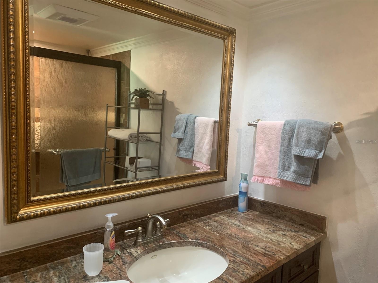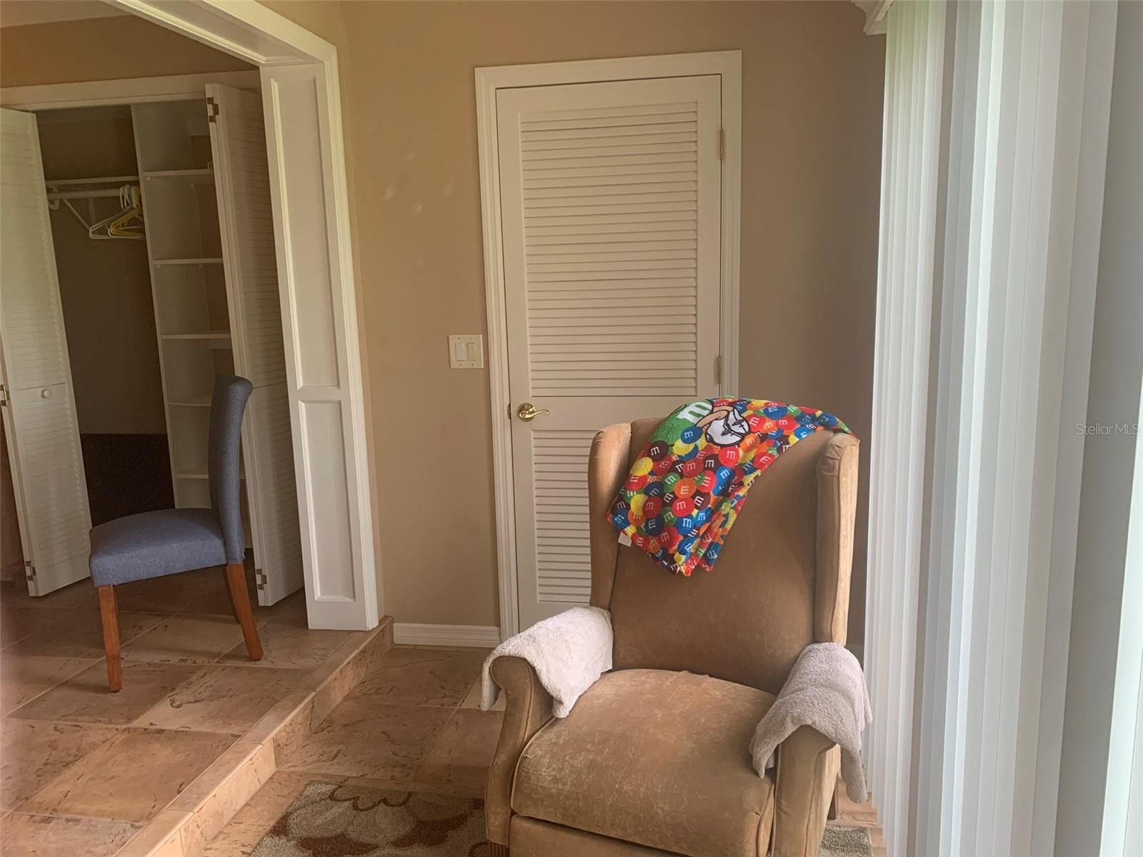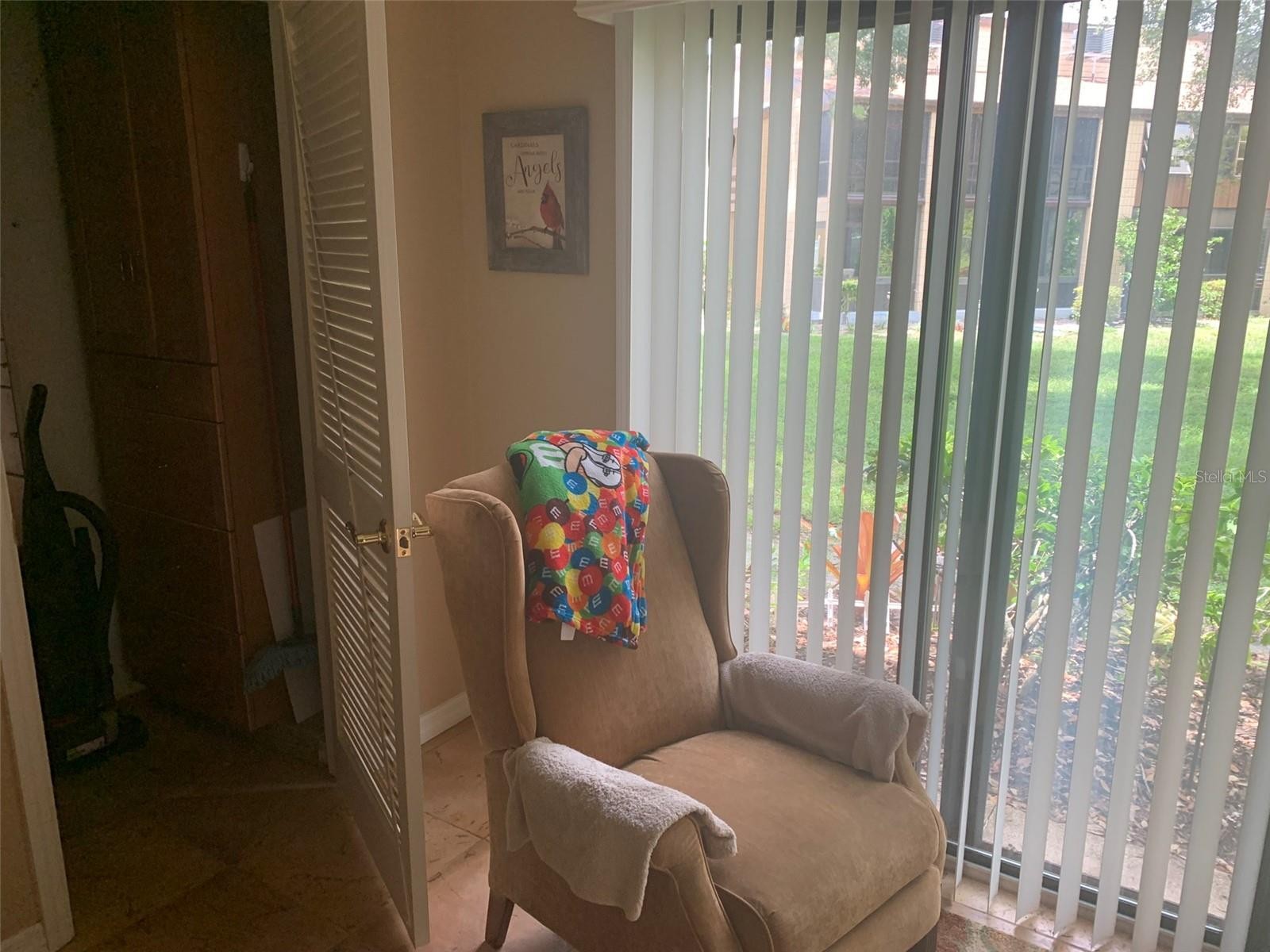 Quails Run - a 55+ community; this ground floor 1 bedroom, 1.5 bath condo is centrally located in Englewood, only minutes to Englewood and Manasota Beaches. This unit has a large living, kitchen, and dinette area. Bright decor and tastefully furnished (less the primary bedroom furniture, you will need your own), the condo boasts updated bedrooms, bathrooms, and kitchen. Bahama shutters in the living room add privacy and there is a pass-through window from the kitchen to the living/dining area. The main bedroom is spacious and includes an extended living area which converted the lanai into a small den or office. You can also open up this room for airflow during the winter months. There is an added closet to that area for storage and plenty of closet space in the master. Both bathroom vanities have granite countertops and the half bathroom has a vessel sink. The kitchen includes a dishwasher, microwave, and garbage disposal. This unit has extra storage space by the laundry room, which is located two doors down from the unit. The laundry room offers a washer and dryer for your use at no cost. The community has a community pool, clubhouse, shuffleboard courts for all to enjoy, plus a ton of activities.
