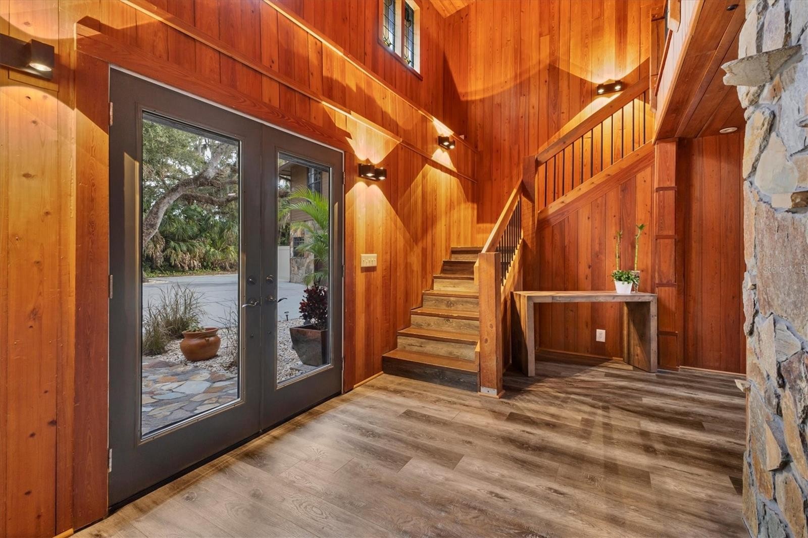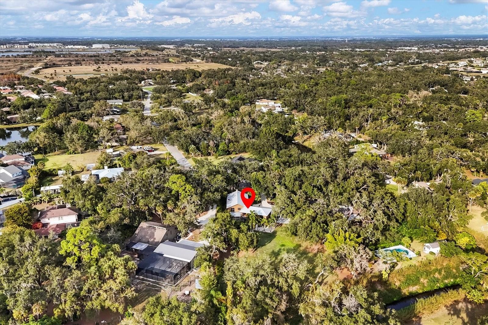 Your private oasis close to everything awaits! Welcome home to this beautiful extensively upgraded 4 bed, 4 bath, 4452 square foot home on over an acre complementing contemporary expectations with timeless country charm. Within you’ll discover a truly flexible living space for modern families & everyone’s hobbies with a master suite option on both floors, spacious living areas, dedicated office & an extra flex room, game room, playroom, gym or guest suite. Or the south wing could simply be a generous multi-generational retreat…. The 2020 renovations enlightened & streamlined the interior with a huge chef’s kitchen & dining room combo, all new bathrooms, updated bedrooms with walk-in closets & flooring too–all while maintaining the home’s warm & inviting character. Two wood-burning fireplaces add a cozy ambiance to both living rooms, upstairs & down. Outside, enjoy true Florida living with a screened-in heated saltwater pool, outdoor kitchen with built-in grill & large covered patio–perfect for entertaining or quiet relaxation. Warblers, sandhill cranes & a little family of deer will bring joy to your days as will stunning sunsets by the pool at night. With 200 feet along peaceful Philippi Creek, this private lot features outdoor lighting, irrigation, mature oaks, bamboo, banana trees, rows of foxtail palms & ample room for all the big & little kid toys you’ve been wishing for! The oversized two-car garage features EV charging, rear garage door, additional storage & extra room. Additional energy & cost-savings bonuses include a 3-zoned HVAC system & other mechanical updates throughout. No HOA or CDD fees. Flood zone X for extra savings & peace of mind. Perfect for nature lovers & exercise enthusiasts, the world-famous Celery Fields bird & nature refuge is 0.4 miles away for you to hike, bike, paddle, fish & birdwatch as a daily routine. When you must run errands, this generous retreat is also only minutes from many shopping/dining choices at Bee Ridge, Fruitville, UTC, Lakewood Ranch & Costco along nearby Interstate exits & is within thirty minutes of the airport, St Armands Circle, Lido & Siesta Key beaches & downtown Sarasota too. Then come home again & disappear into the rare rustic charm of this tropical sanctuary estate.
