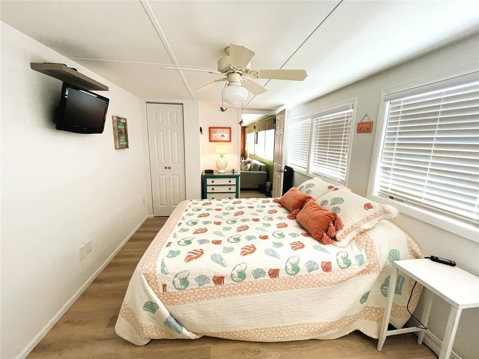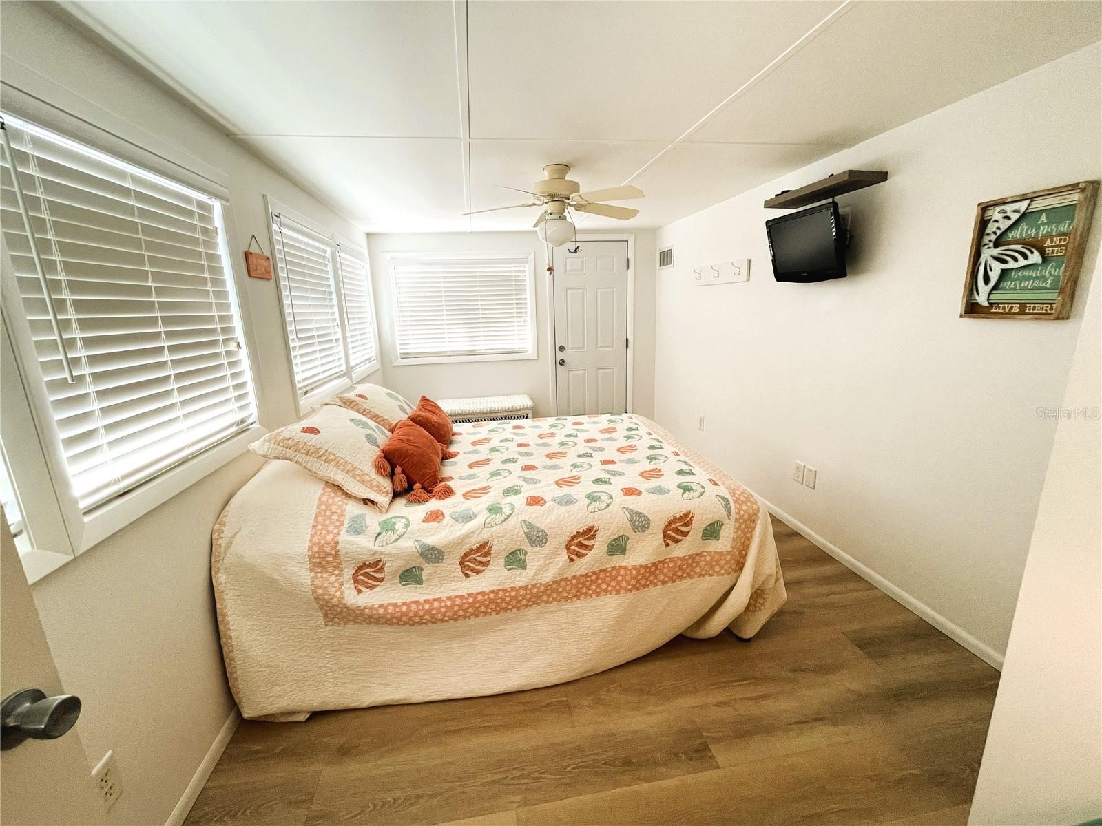 This charming 2-bedroom home features a roll-down garage door leading into a secure, block-constructed carport with metal gates and an epoxy floor—creating a rare and highly functional space for vehicle storage, golf carts, and everyday living. The block design provides privacy and protection and leads to a dedicated half bath and combined laundry area. Inside, this beachside cottage offers warmth and personality throughout. Plantation shutters, updated flooring (approximately 3 years old), and thoughtful details create a comfortable coastal feel. The primary bedroom features California Closets (2025) with a king bed. The spacious guest bedroom has a queen adjustable bed. The home is being sold furnished, including a fun yellow beach bike. While the home features one full bathroom inside, additional conveniences include an outdoor shower room and a separate half bath located within the block utility structure. Outdoor living is equally inviting, with gorgeous paver areas in both the front and back, an elevated front porch with railing and charming shaker-style accents, and a private rear patio perfect for relaxing or entertaining. Additional updates include A/C (2019), ductwork and blower (2025), and a concrete pad beneath the entire home. Located in Trailer Estates, a Special Park and Recreation District governed under Chapter 418, Florida Statutes, residents own their land so there is no lot rent, CDD, or HOA fees. The annual park tax covers cable, high-speed internet, trash pickup, fire and rescue services, and access to outstanding amenities, including a marina with rentable boat slips, private beach, pool, hot tub, fitness center, shuffleboard, bocce ball, pickleball, woodshop, and nearly 60 active clubs and social events. Experience one of Sarasota Bay’s most vibrant and welcoming 55+ communities.