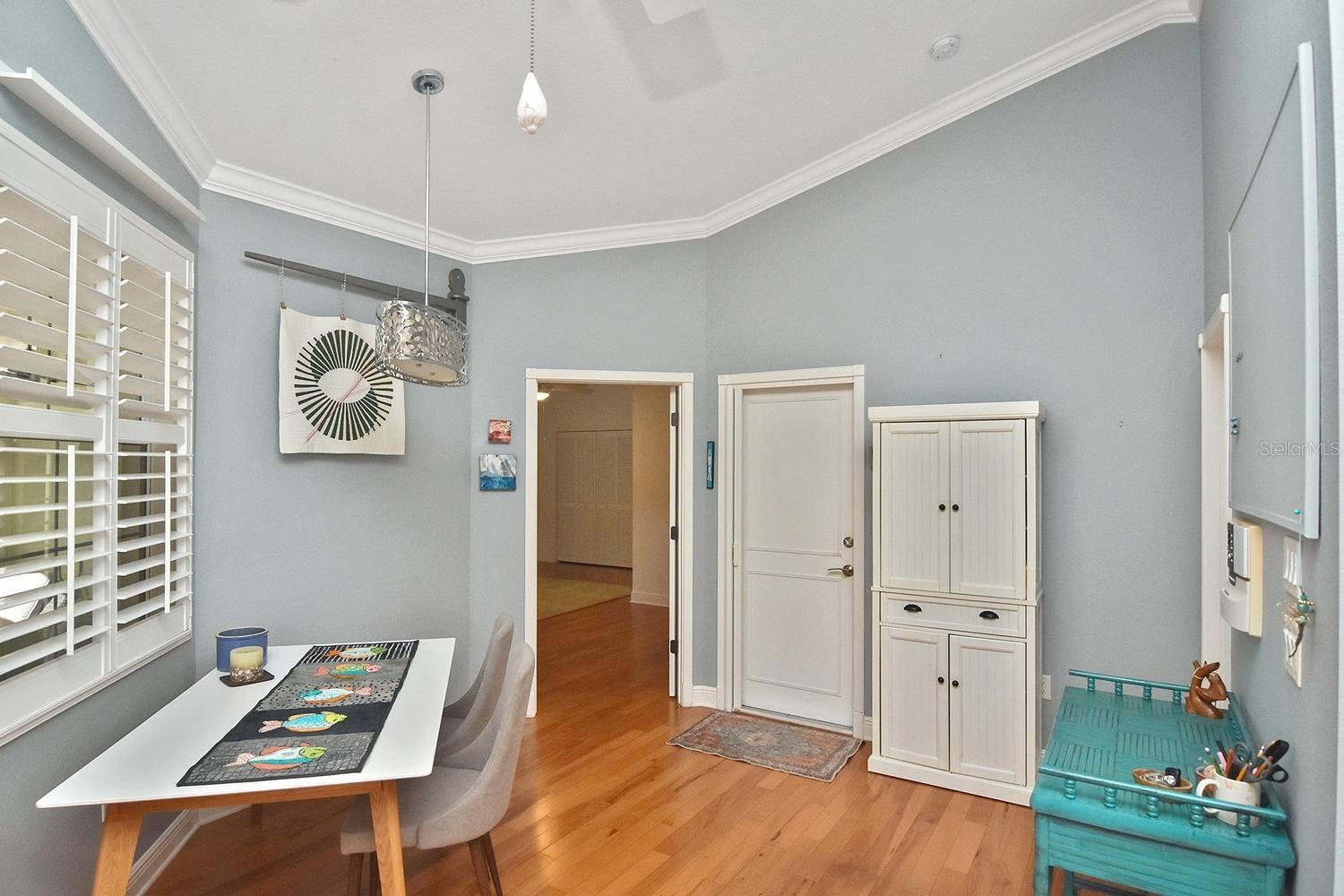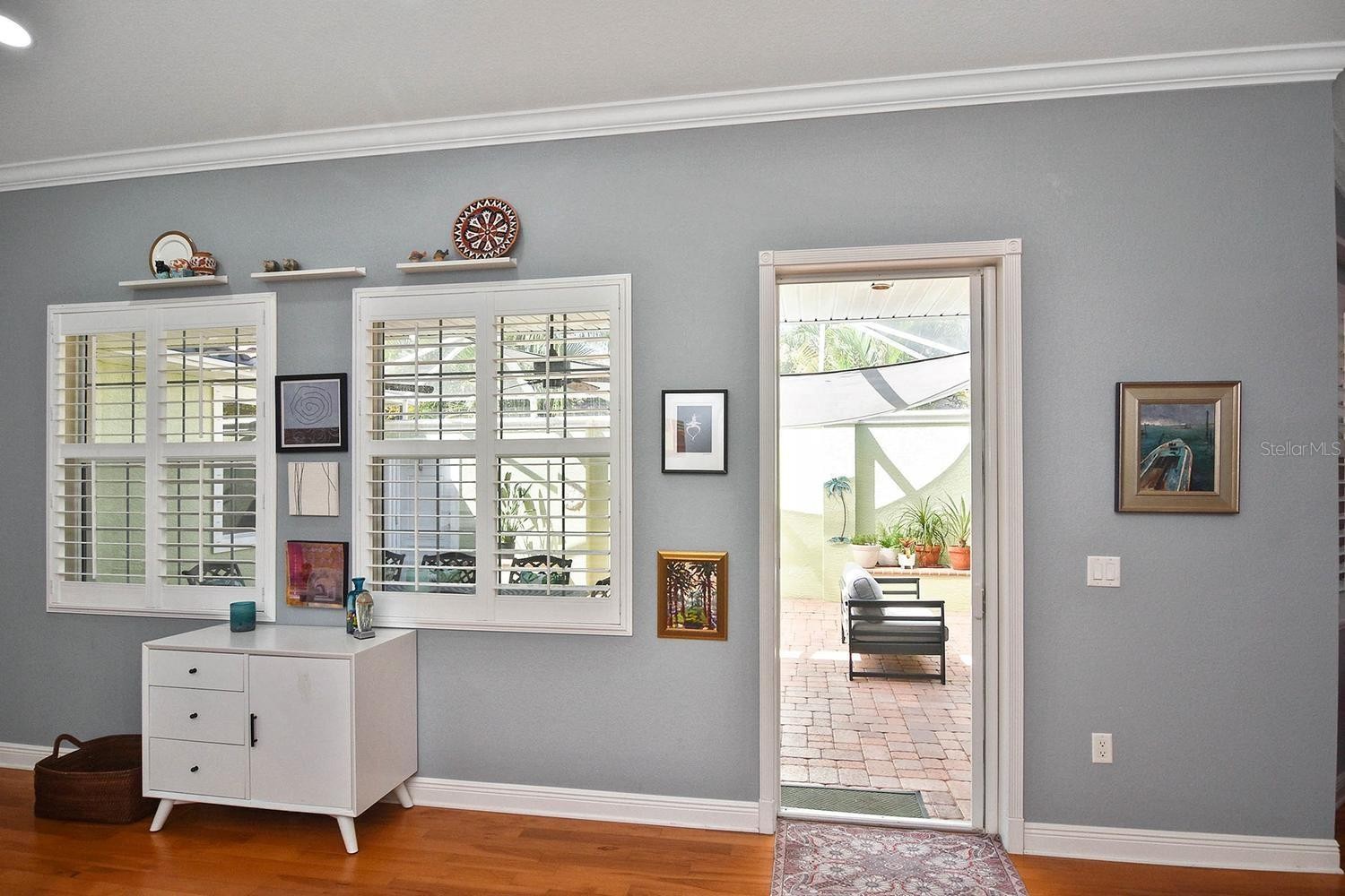 Live the coveted Venice Island lifestyle in one of its most desirable boutique communities—The Courtyards. This hidden gem of just 15 homes offers a rare blend of privacy, charm, and walkability. In under five minutes, stroll to downtown, the Venice Cultural Campus, and nearby parks, or enjoy a scenic 15-minute walk to the beach. Along the way, you’ll pass the Venice Island Recreation Area, featuring basketball, shuffleboard, tennis, pickleball, and a playground. Downtown Venice delivers a vibrant mix of dining, shopping, and entertainment, while golf enthusiasts will appreciate easy access to the island’s course just 2.5 miles away—conveniently located near waterfront favorites Sharky’s on the Pier and Fins at Sharky’s. This thoughtfully designed residence is centered around a private courtyard, creating a seamless indoor-outdoor lifestyle ideal for both relaxing and entertaining. The home features 2 bedrooms, 2 baths, a 2-car garage, and an oversized studio perfect for a home office, art space, or creative retreat. Residents also enjoy a charming shared gazebo, fostering a warm, neighborly atmosphere. Inside, the open great room floor plan offers effortless flow, complemented by a split-bedroom layout for added privacy. The chef’s kitchen, anchored by a granite-topped island, is both functional and inviting. Plantation shutters throughout enhance the home’s light-filled spaces and add to its classic Florida charm.