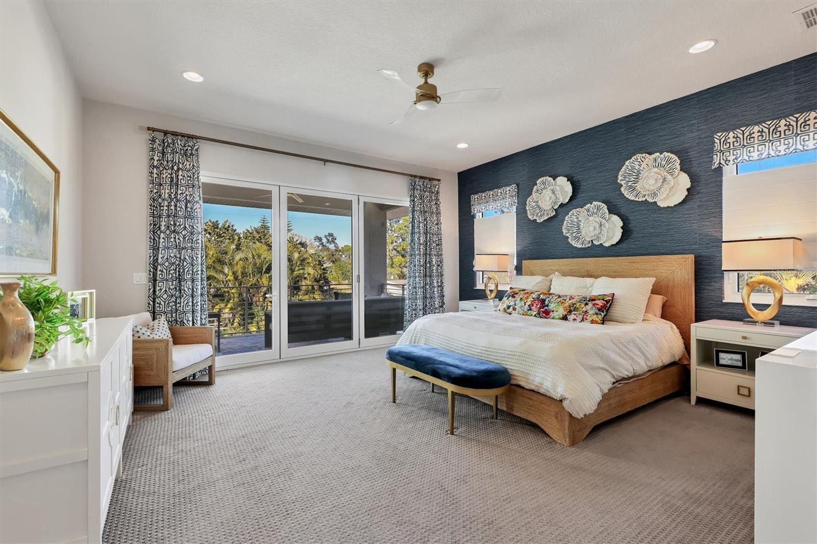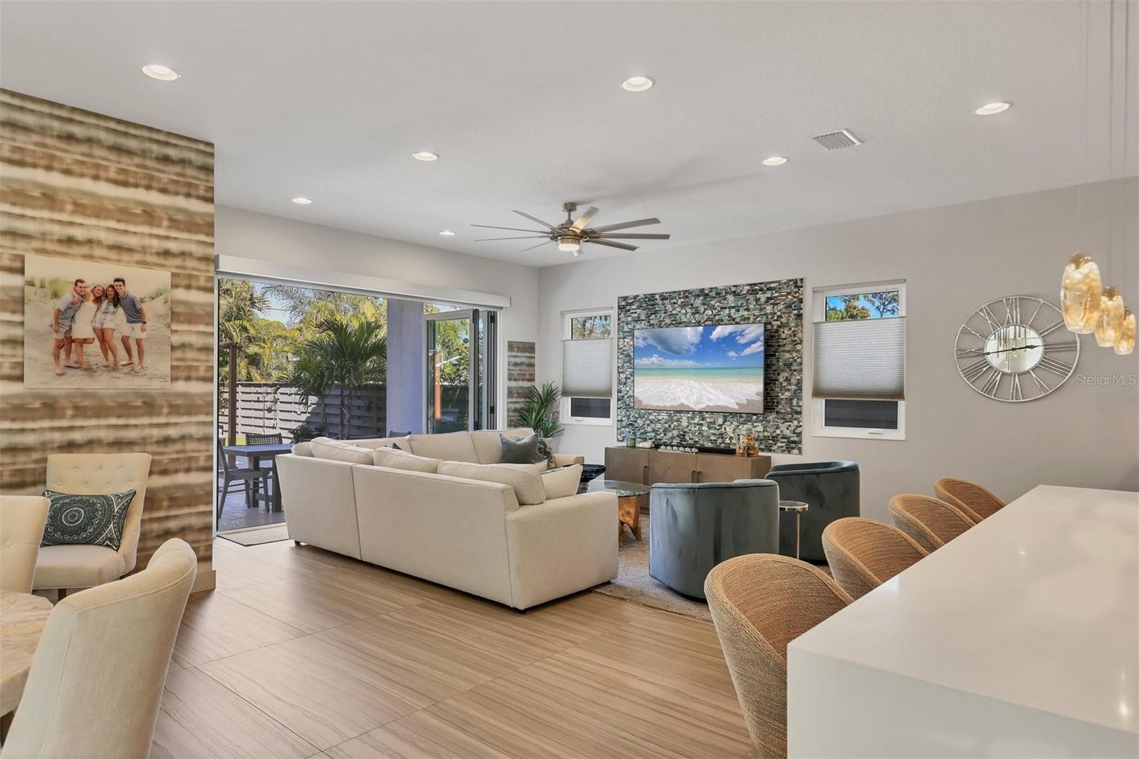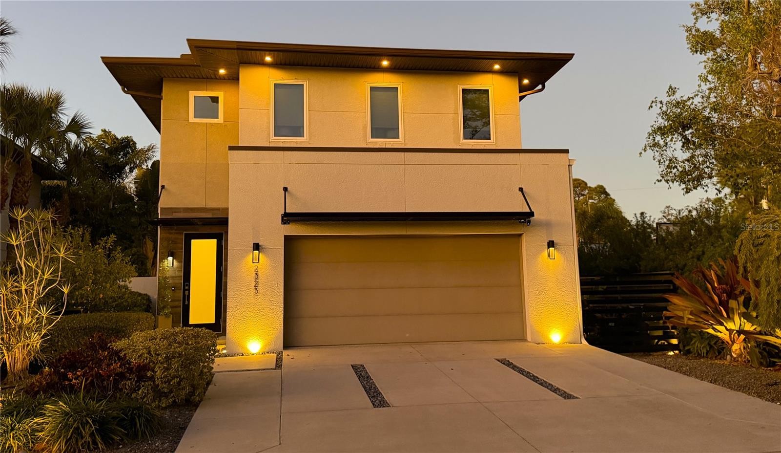 This stunning Majestik Home blends modern design with refined luxury, perfectly capturing Sarasota’s vibrant work-and-play lifestyle. Located on a desirable dead-end street just minutes from downtown Sarasota and world-famous, top-ranked Siesta Beach, this 3-bedroom, 2.5-bath modern residence is rich in artistic detail and upscale finishes. Designed by award-winning DSDG Architects, the home welcomes you with an open-concept floor plan featuring soaring 10-foot ceilings and sleek porcelain tile floors. Walls of glass frame views of the lushly landscaped backyard, creating seamless indoor-outdoor living. The private outdoor oasis includes a heated pool with LED color lighting and a salt chlorine generator, expansive entertaining space, and a stylish pergola gazebo for added shade. The tropical backyard is finished with low-maintenance synthetic turf and a built-in putting green. The gourmet kitchen is a showstopper, featuring stainless steel appliances, a Fisher & Paykel stainless steel dishwasher, a dramatic waterfall quartz island, and contemporary custom cabinetry—perfect for entertaining or everyday living. An elegant ash wood staircase leads to the second level, where you’ll find a loft space, two guest bedrooms sharing a Jack-and-Jill bath, and a luxurious primary suite. The primary retreat offers two spacious walk-in custom closets and a spa-like ensuite bath. Step out through sliding glass doors onto your private second-story balcony overlooking the pool and enjoy the beautifully illuminated nightscape. Recent upgrades include complete home replacement of impact-resistant windows and sliding glass doors installed in 2024, two new AC air handlers 2024 & 2025 and an epoxy garage floor. Centrally located near A-rated schools, shopping, downtown Sarasota, and Siesta Key Beach, this exceptional home truly has it all. Don’t miss this opportunity—schedule your private showing today.