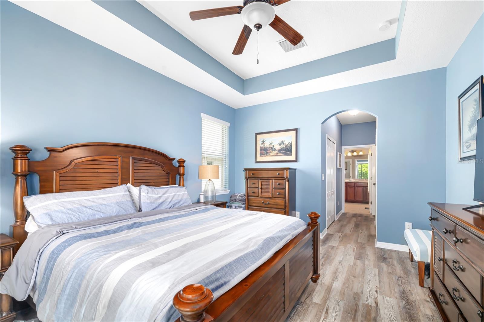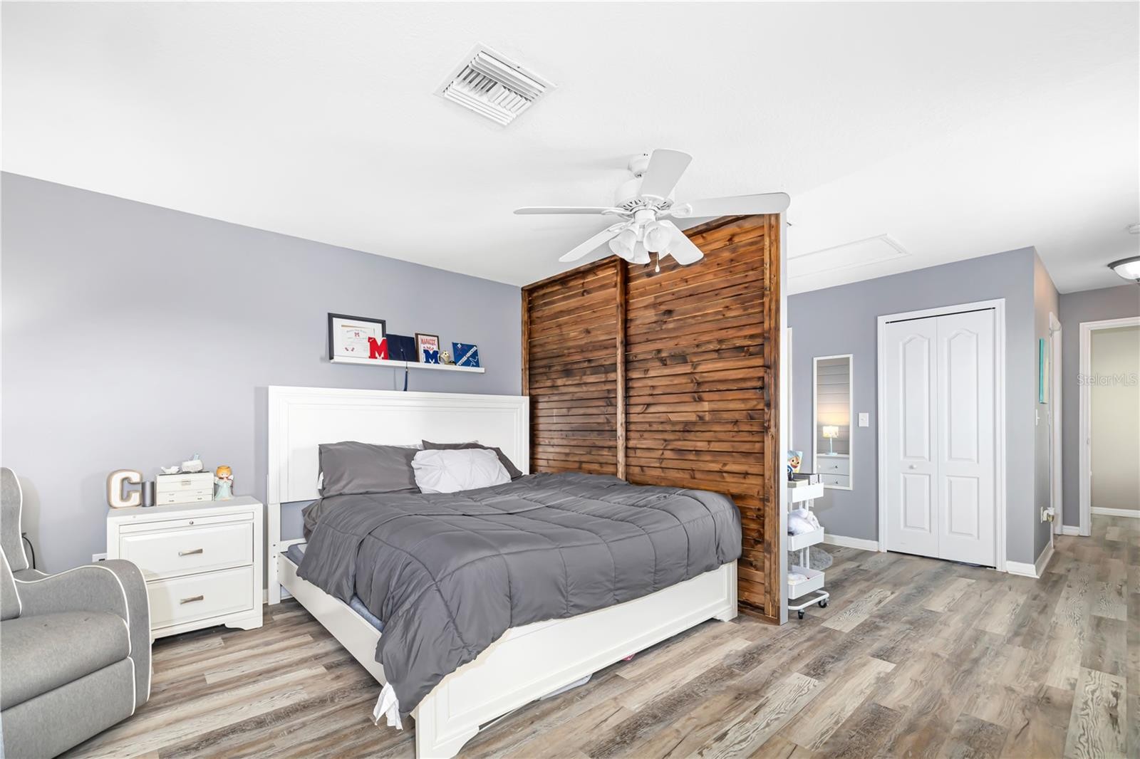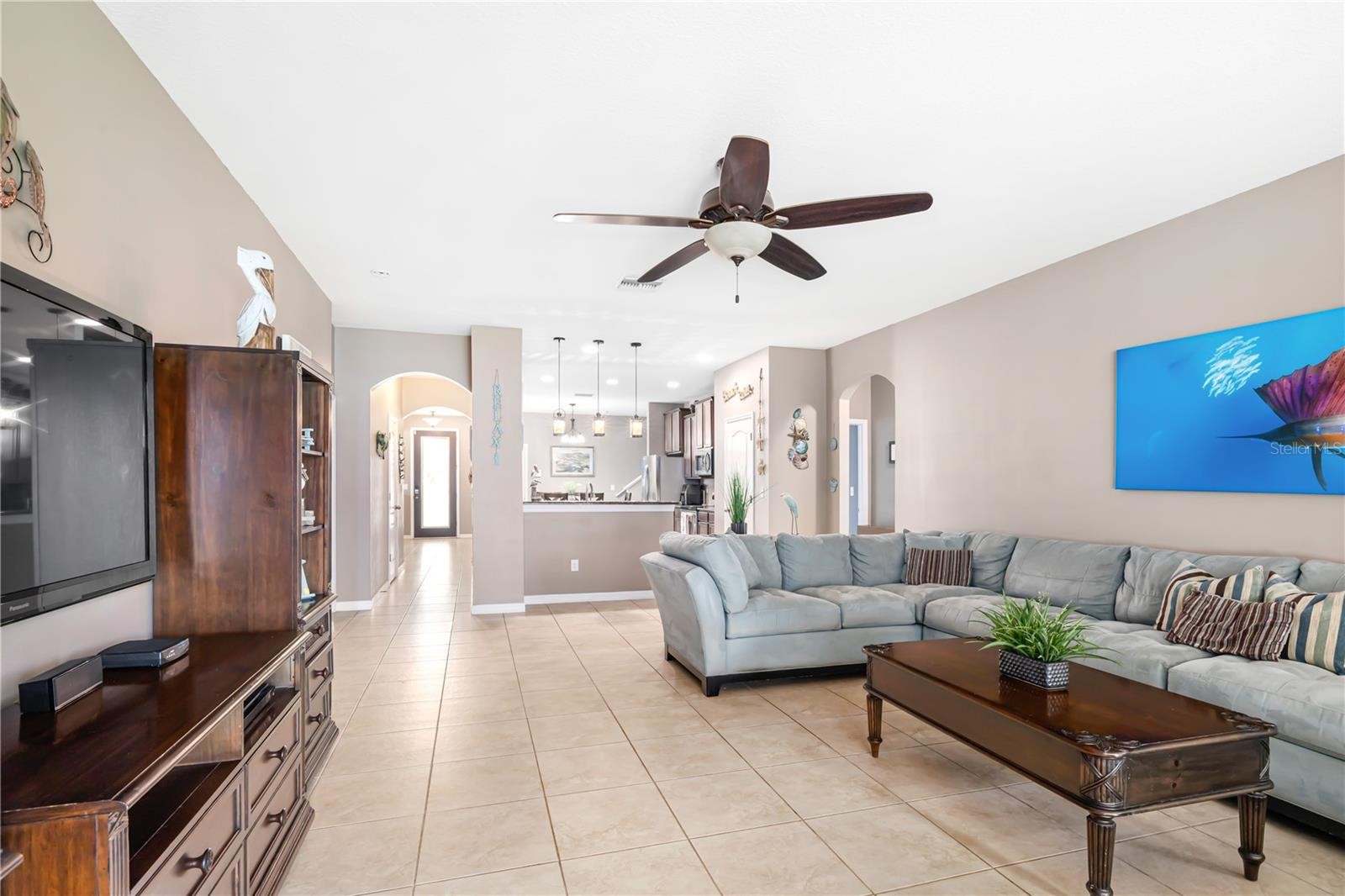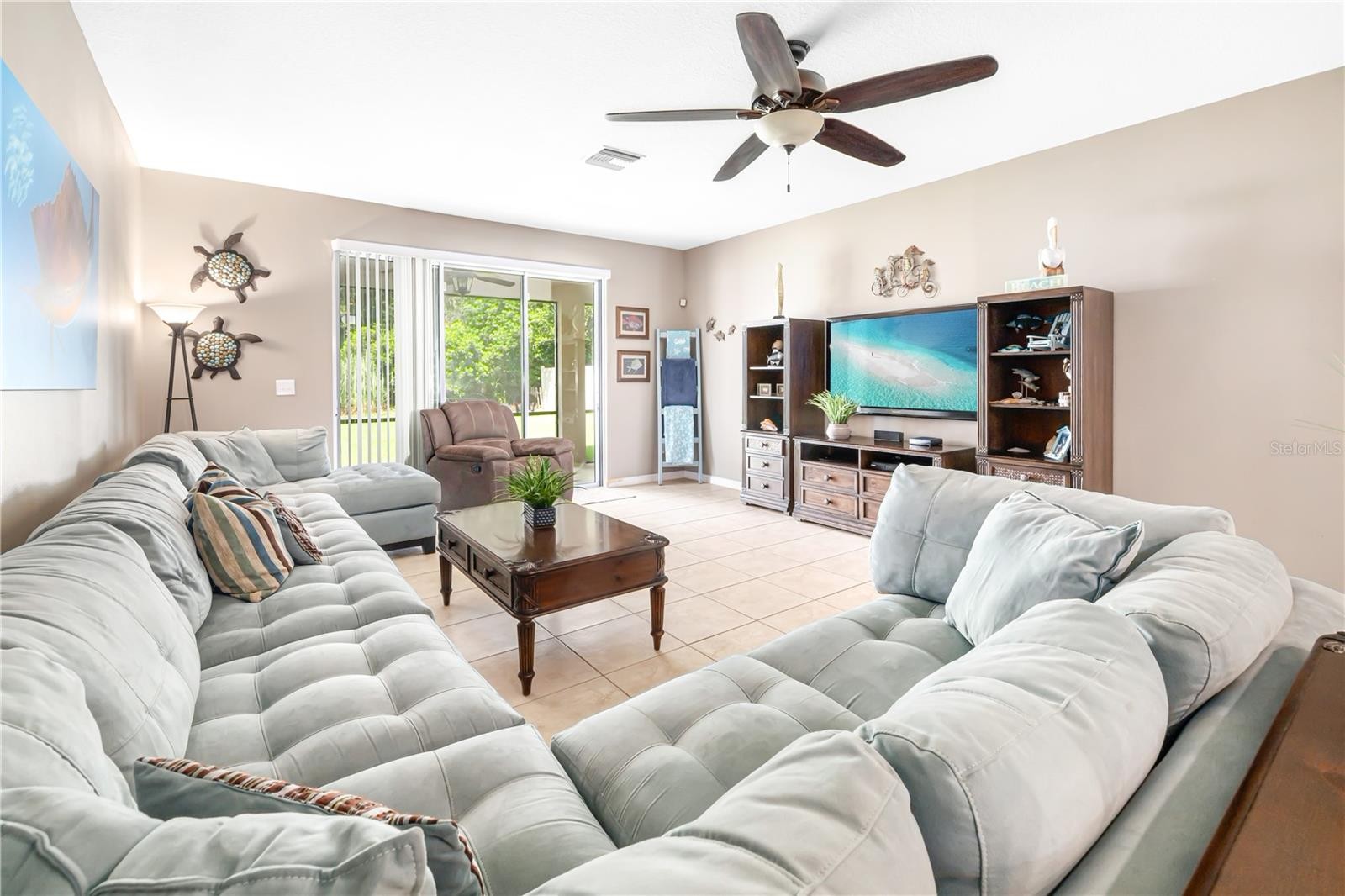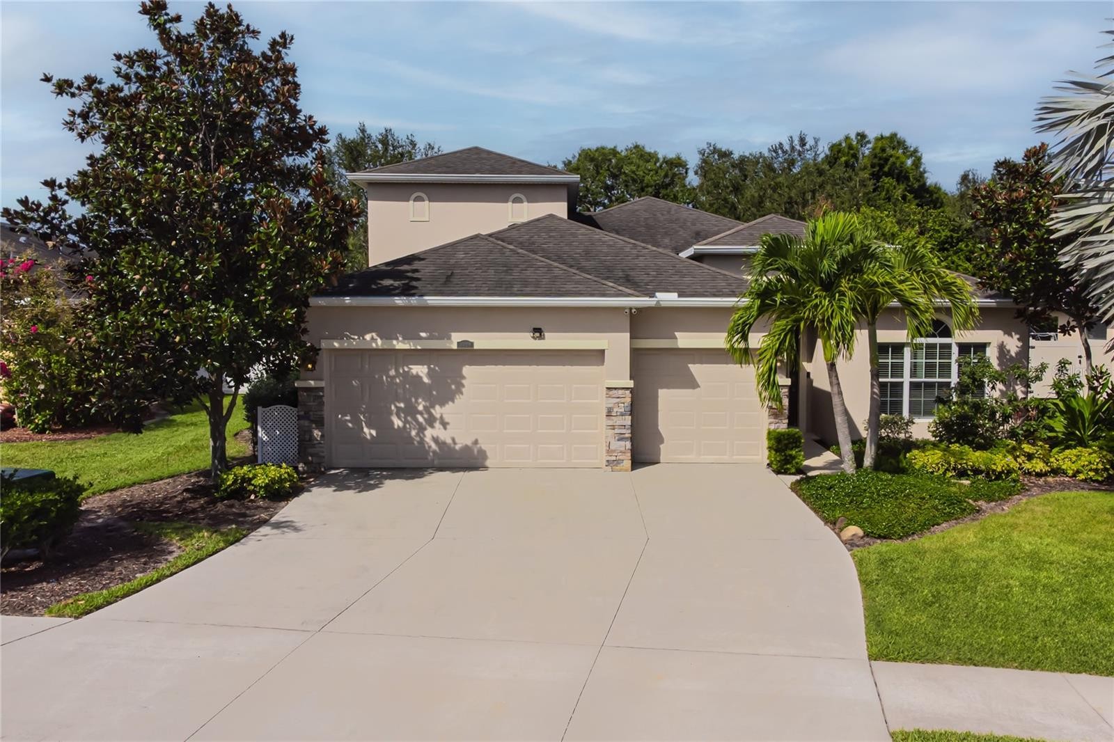 **BACK on MARKET** Buyer past inspections, NO Inspection Issues. **LOW HOA** **No CDD** This home has beautiful curb appeal and thats just the beginning of what you will find upon entering. You will be welcomed by a beautiful etched glass entry door. The foyer is wide with lots of natural light from every angle. In this home - the kitchen "is" the heart of the home. If you love to cook and entertain, this kitchen will make your heart melt - with loads of cabinets and prep space and an expansive pantry, custom light fixtures and a birds eye view of the house, you will love the configuration. This is a very large home, excellent for gatherings, parties and entertaining. With 5 bedrooms, 4 bathrooms and just under 3k SF of heated living space (3773 SF with the 3 car garage) you will never feel crowded. This home could easily be used for a home office/business and has plenty of parking. The home has beautiful, warm earth tone colors throughout with lots of natural light and an oversized fenced in back yard. Close to the highway, shopping, restaurants - the location is a commuters dream. Schedule your private showing today!