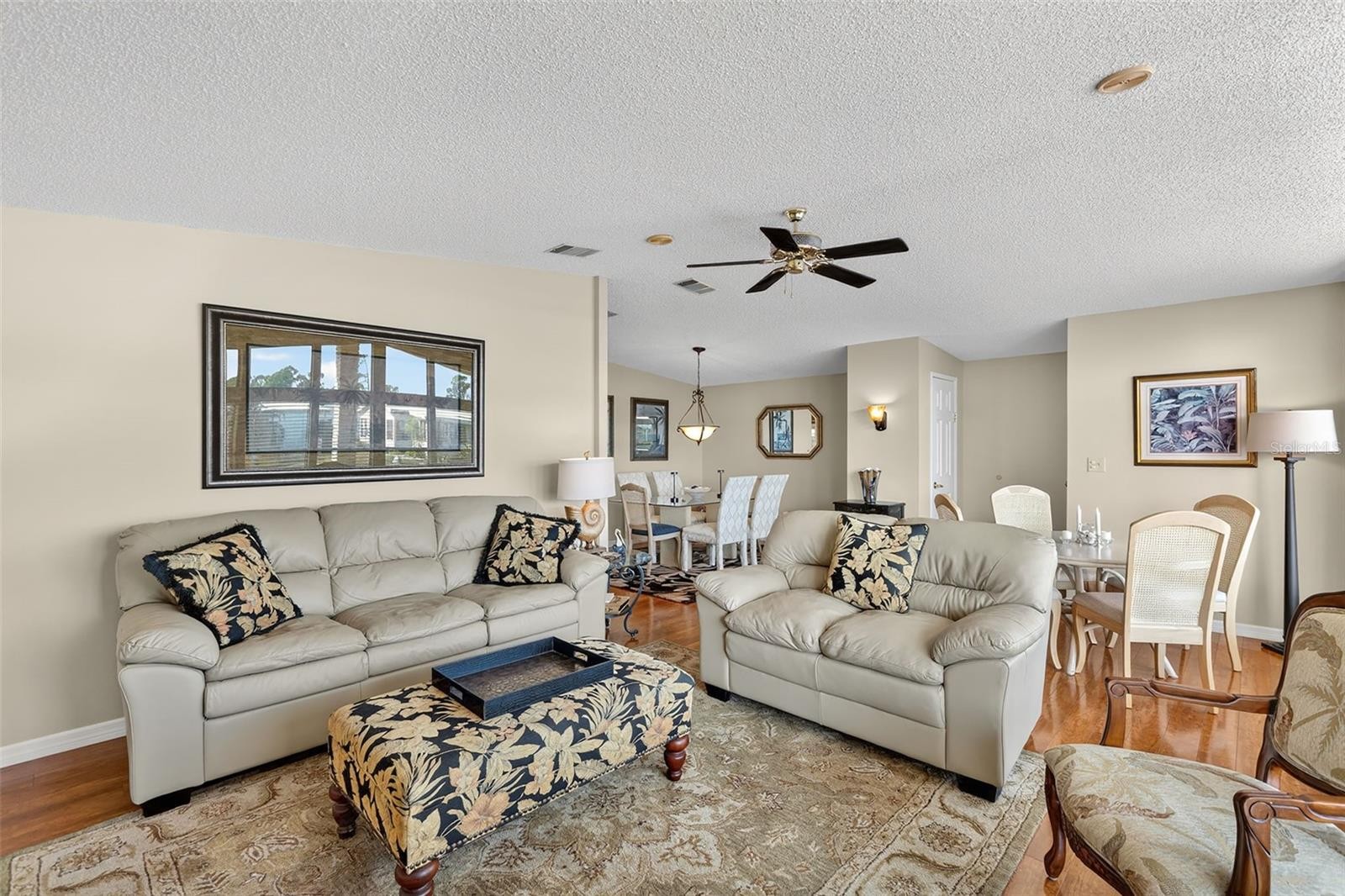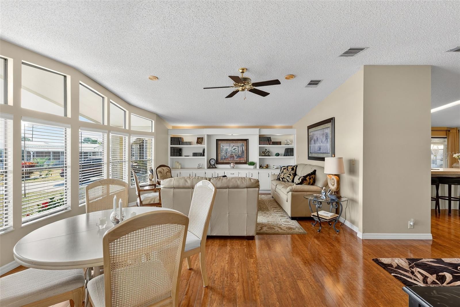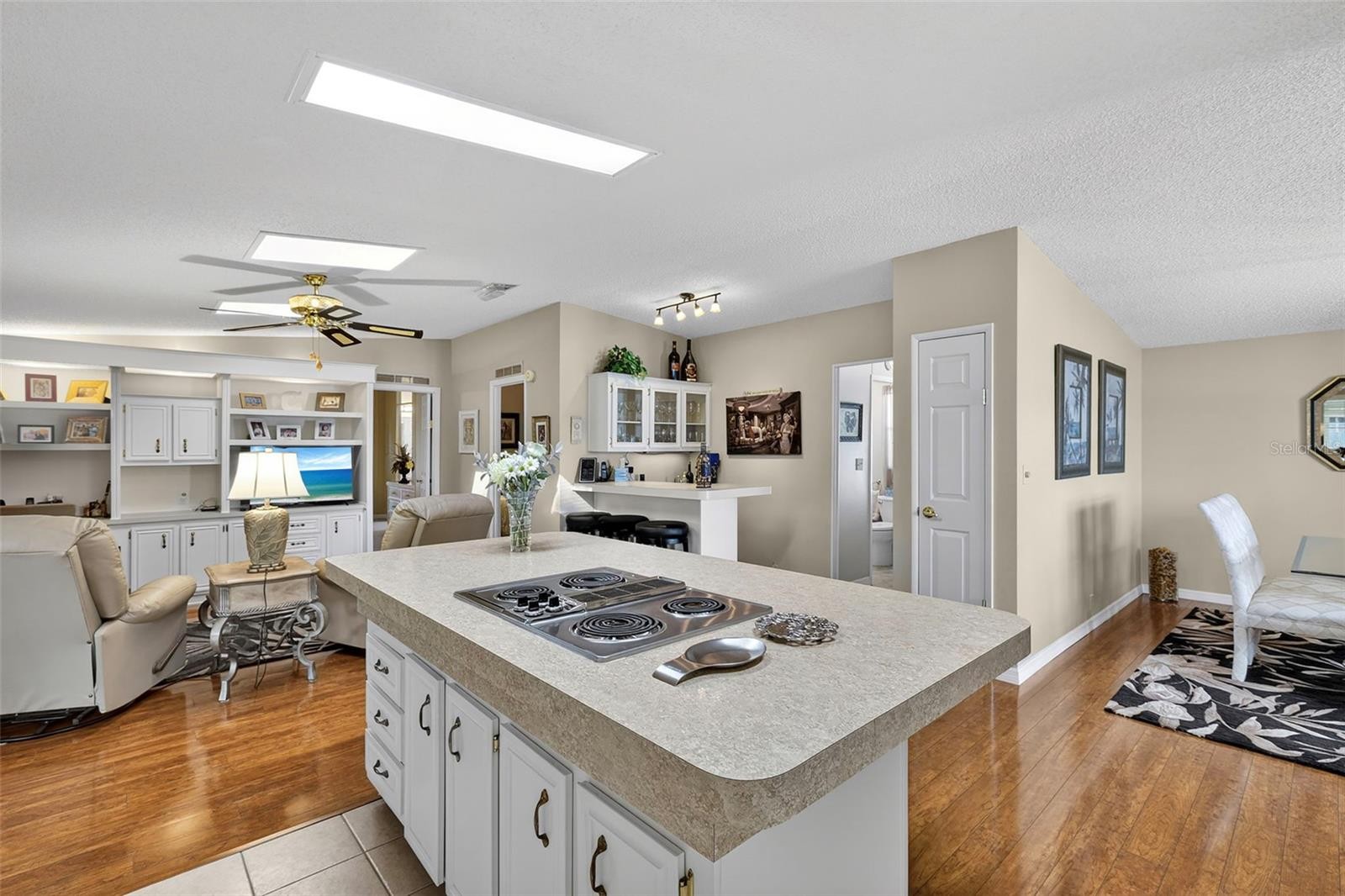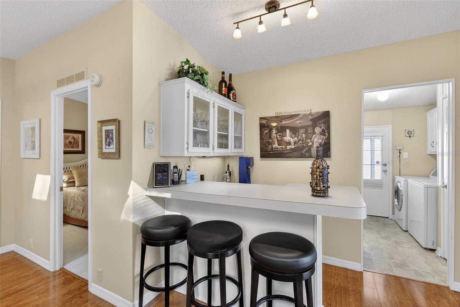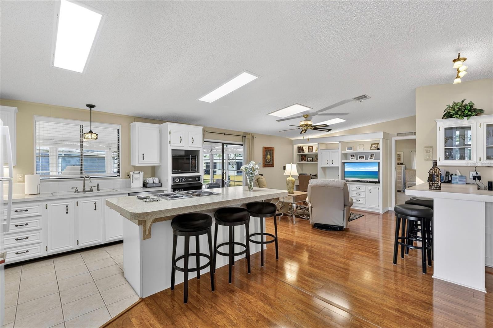 Enjoy sunrises and sunsets from this beautiful two-bedroom, two-bath home located on a lovely, tranquil lot. The entryway features a washer, dryer, upper cabinets, utility closet. Open kitchen/family room combination. The kitchen features a center-island breakfast bar and cooktop, two pantries, a built-in oven, appliances, including a new dishwasher, and under-cabinet lighting. Entertain in your family room featuring a wet bar, built-in wall unit, and a sliding door to the side. Vinyl-enclosed, carpeted 10’ X 21’ Florida room w/door to the front porch, here you can enjoy Florida breezes, and the covered walkway accented with brick pillars. The home features a formal dining room. The living room is brightened by morning sunrises and features a wall-to-wall built-in unit. Carpeted guest bedroom with a w/double closet and a built-in desk with access to the guest bath with a w/vanity and tub/shower. The spacious primary bedroom provides a double closet. The ensuite bathroom features a dressing area with a double-sink vanity, a walk-in closet, a soaking tub, and a walk-in shower. Laminate flooring throughout with tiled bathrooms. Raised panel doors and vaulted ceilings throughout. A/C 2022, humidistat, ceiling fans. Grey pipe removed. AMS metal roof 2013. Long driveway to carport. Carpeted screen room w/door to a wide walkway to a rear patio area. The utility room provides a deep sink, storage, and refrigerator/freezer. Custom curbing. New corner tie-down straps. This is a beautifully maintained home with many upgrades, and is being sold "Turnkey". Welcome to La Casa providing the ultimate lifestyle on Florida’s Gulf Coast. We are convenient for shopping, sightseeing, golfing, fishing, and boating, as well as the culture and elegance for which Southwest Florida is noted. Residents and visitors enjoy the warmth of Southwest Florida winters in a relaxed and unhurried environment far removed from the hustle of Florida’s east coast. You’ll be surrounded by hundreds of palms reaching for the sky and beautiful mature lush landscaping which demonstrates the utmost level of care our property receives from residents and management. Wireless Internet (Wi-Fi) is available at the Clubhouse, Activity Building, and Recreation Hall area where our pools & spas are located, so you can catch some rays while you catch up on your email. Sound enticing? La Casa is a friendly, family community. You will be away from the hustle and bustle except when you want to be part of it. When you leave our gates, North Port is only 1.5 miles from the city center, where you will find every kind of retail store and service you could need. Come for a visit to this self-contained oasis and see for yourself why La Casa is the ultimate destination for both snowbirds and year-round residents.