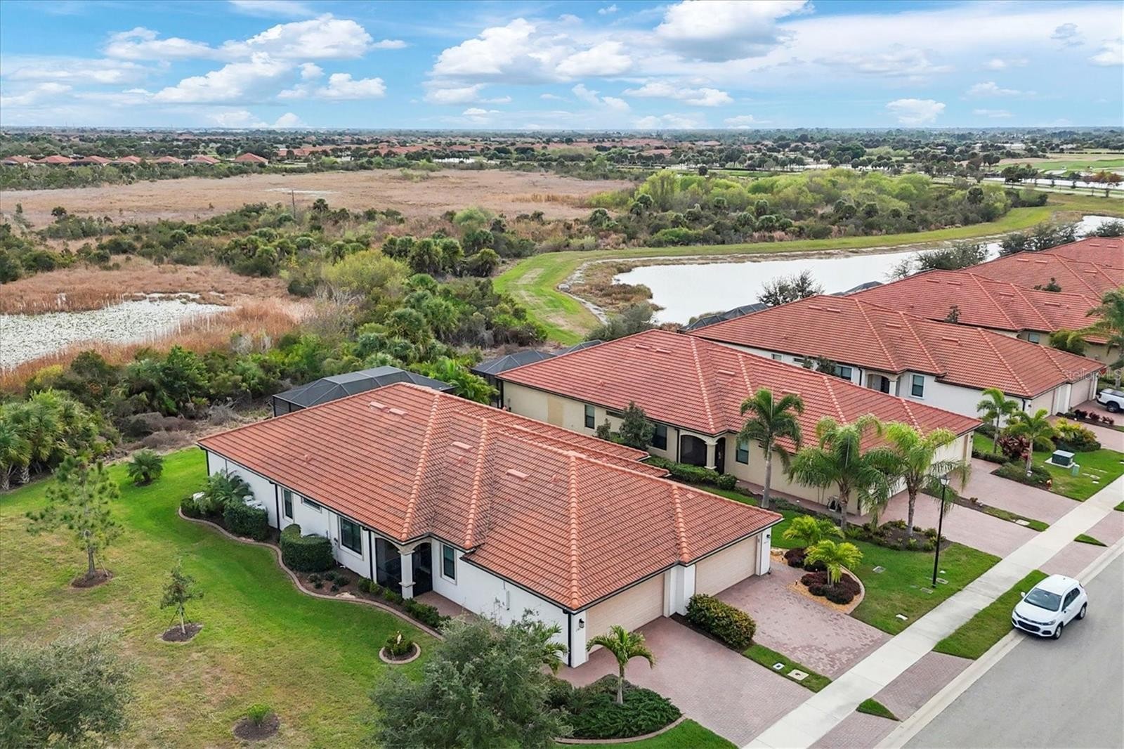 PRIVATE SANCTUARY. This is your invitation to experience the true enjoyment of Florida living. Live the easy life in this spacious villa offering 2BD/BA/Den/2CG. Open floor plan that mingles the kitchen, living area, and dining into a functional flow with casual elegance. Tile flooring throughout the home. Extra transom windows let the natural sunshine filter in. Kitchen has GRANITE counter, STAINLESS STEEL appliances, 42 inch high wood cabinets, and pantry. Large SEPARATE DEN with FRENCH DOORS. Perfect for numerous activities. Master bedroom with en suite bath has dual sinks, walk in shower, and makeup counter with extra storage. Guest bedroom at other end of villa for privacy has CUSTOM BUILT IN MURPHY BED with storage and shelving creating flexibility of use for the space. UPDATED FIXTURES AND FANS THROUGHOUT. Sit out on your PRIVATE lanai and enjoy the PANORAMIC VIEWS of Preserve and open green space. This villa sits on the end of the cul de sac. NO NEIGHBORS next to you. Just vast open space to enjoy, like having your own private park. NO NEED TO WORRY ABOUT HURRICANES. HOME IS EQUIPPED WITH ROLL DOWN HURRICANE SHUTTERS AND HAS A WHOLE HOME GENERATOR if the lights go out. DON'T PASS THIS OPPORTUNITY UP. SEE IT TODAY! NO GOLF MEMBERSHIPS, ASSESSMENTS, OR DUES IN THE VILLAS. Sarasota National is a Vibrant community with over 1300 acres designated for preservation, conservation, lakes, and open space with amazing views, Proclaimed as an Audubon International Certified Sanctuary, making it the most gorgeous and enjoyable golf course to play at in the area. Offering resort style amenities with huge resort style pool and spa,Tiki Bar to serve refreshing drinks and a bite of lunch, tennis courts, pickle ball, Bocce courts, coffee lounge/library/card room/meeting place, 7000 sq ft fitness facilities offering classes and day spa, and a 30,000 sq ft Clubhouse with dining and spectacular views. 18 Hole championship golf course surrounded by native wetlands and preserves provides an exhilarating and dramatic back drop for your golfing adventure. Minutes away from the new Wellen Park shopping area and Atlanta Braves stadium. Venice Beach and Venice Downtown are just a short drive. Your choice of restaurants and outdoor activities await. Come find YOUR Florida lifestyle TODAY and Live everyday like your on vacation!