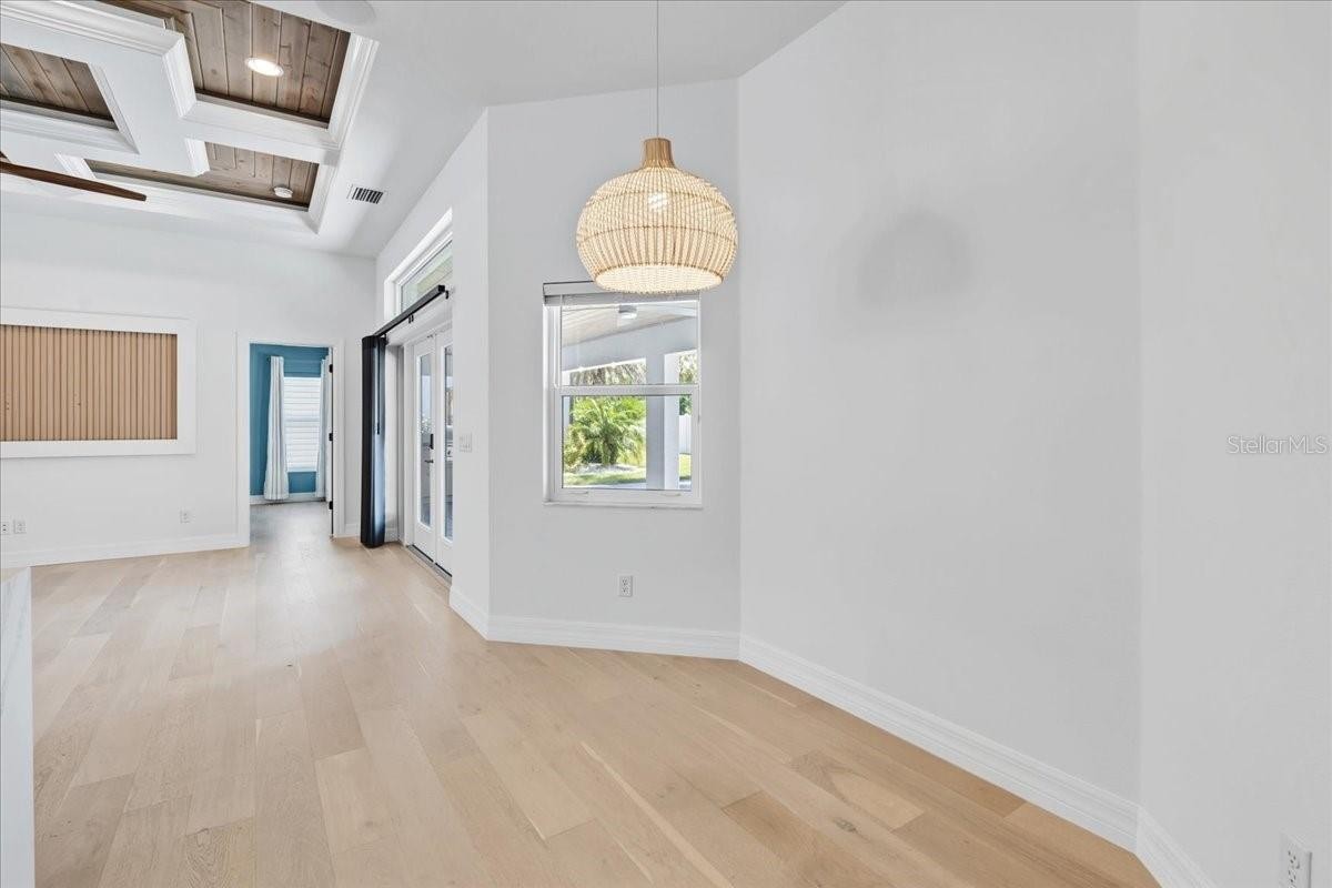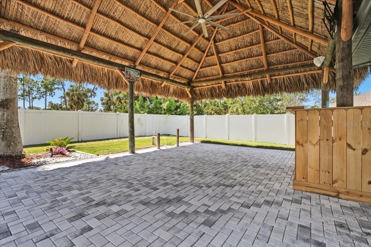 Step into luxury with this custom home built in 2018 by Walker Homes, offering 2,286 square feet of beautifully finished living space on an oversized half-acre lot in the heart of North Port. Featuring three bedrooms and two and a half baths, this thoughtfully designed residence boasts a split-bedroom layout with a spacious main-level primary suite, offering the perfect combination of comfort and privacy. The gourmet kitchen is a chef’s dream, highlighted by a striking waterfall island, custom cabinetry, stainless steel appliances, and high-end finishes throughout. The open-concept living space features coffered ceilings and is bathed in natural light, with durable luxury vinyl plank flooring throughout the main living areas and luxury tile in the bathrooms for a modern, cohesive feel. A bonus room off the main living area provides additional flexible space—ideal for a home office, playroom, den, or guest area—and includes extra built-in storage with endless potential to fit your lifestyle needs. Step outside into your private tropical retreat. Take a dip in the in-ground pool, grill under the expansive covered lanai with built-in summer kitchen or unwind beneath the brand-new patio pergola. A charming tiki hut adds a touch of island living—perfect for entertaining or simply relaxing in the shade. The lush landscaping is supported by an irrigation well system and enhanced by solar lighting, creating a tranquil, resort-style setting. The home also includes a finished RV port/garage wing with its own private entrance, workshop, office space, and half bath—perfect for guests, hobbies, or extended workspace. With plenty of parking for RVs, boats, or extra vehicles and no HOA or CDD fees, this home offers flexibility and freedom rarely found in a custom property.