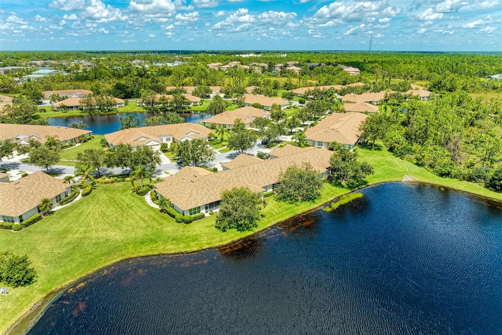 Experience the pinnacle of modern living in this beautifully renovated 2-bedroom, 2-bathroom villa with a spacious 2-car garage, ideally located in a non-flood zone for added peace of mind. Meticulously updated, this home showcases brand-new cabinetry, stunning granite countertops, new flooring, fresh interior paint, and stylish light fixtures and ceiling fans throughout. The thoughtfully redesigned kitchen is perfect for entertaining, featuring gleaming countertops, modern cabinets, and updated appliances that blend both form and function. Retreat to the luxurious primary suite, complete with a generous walk-in closet, dual vanities, and a spacious walk-in shower designed for comfort and convenience. An additional office/den provides flexible space ideal for working from home, hobbies, or accommodating guests. Step outside to your private oasis and take in the tranquil lake views surrounded by beautifully landscaped grounds and mature trees. Enjoy watching the local wildlife while embracing the serenity this exceptional setting provides. Located in the highly desirable Lakeside Plantation, a community nestled among thirteen picturesque lakes, residents enjoy an impressive array of amenities. These include a resort-style swimming pool and hot tub, a second pool exclusively for villa residents, a large clubhouse with Wi-Fi, fitness center, library, conference room, billiards and card lounge, four clay tennis courts, basketball and pickleball courts, bocce ball, playground, picnic areas, and a full calendar of social activities for all ages—all just a short distance from your front door. This like-new villa perfectly combines contemporary elegance, low-maintenance living, and a vibrant community lifestyle. Schedule your private showing today and discover the exceptional comfort and security of living high and dry at Lakeside Plantation.