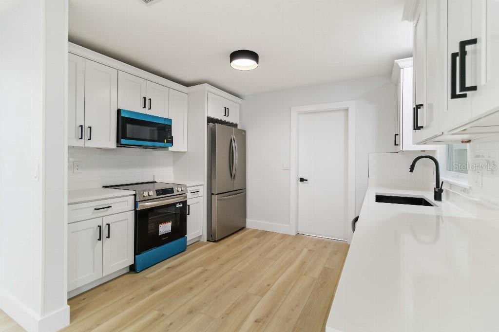 You are in luck! Chic Coastal Living is now possible, right in the Heart of Sarasota! Nestled in the desirable South Gate community, this impeccably updated home blends modern elegance with timeless charm. From the moment you arrive, you’ll be captivated by its pristine curb appeal, accentuated by lush landscaping and swaying palms. Step inside to experience an airy, sun-drenched interior with stylish finishes and thoughtful renovations from floor to ceiling. The open-concept living area features a newer roof, newer HVAC, newer hot water heater, luxury vinyl plank flooring, fresh neutral tones, and a stunning accent wall that adds character and depth to the space. A wall of PGT replacement windows bathes the home in natural light, enhancing the warm and welcoming atmosphere. At the heart of the home, the modern chef’s kitchen has been tastefully redesigned with sleek quartz countertops, bold black cabinetry, and an elegant pass-through bar, perfect for entertaining. Stainless steel appliances, upgraded fixtures, and a stylish glass-front display cabinet elevate the space, making meal prep a delight. The spacious dining area is a true showstopper, boasting vaulted ceilings, dual French doors, and expansive backyard views. Whether hosting an intimate dinner or a festive gathering, this space seamlessly blends indoor-outdoor living. Retreat to the serene primary suite, a tranquil haven featuring plush carpeting, oversized windows, and ample storage. The secondary bedrooms are equally inviting, offering flexible spaces for family, guests, or a home office. Step outside into your private oasis, where a fully fenced backyard provides both privacy and serenity. The large paver patio is perfect for al fresco dining, shaded under a chic umbrella, while tropical landscaping adds a touch of paradise. Whether enjoying your morning coffee or hosting an evening get-together, this backyard is an entertainer’s dream. Additional highlights include a newer roof, updated HVAC and hot water heater, knockdown finished ceilings, and fresh paint. Situated on a quiet street, this home is just minutes from Downtown Sarasota, St. Armands Circle, and the world-famous Siesta Key Beach—ranked #1 in the U.S.! Experience Florida living at its finest—schedule your private tour today before this gem is gone!