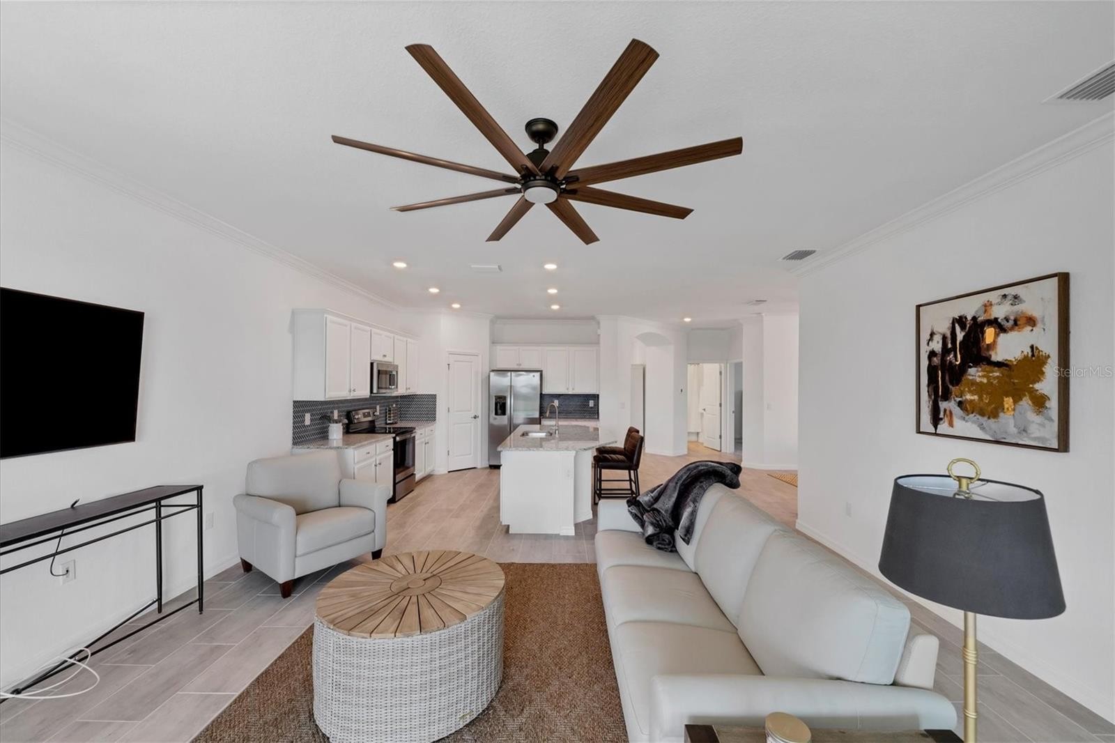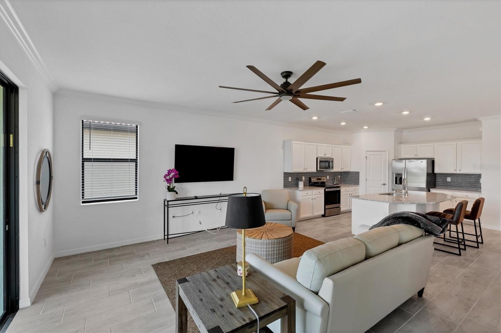 This home just built in 2022 and now available for quick move in. The popular MILAN floor plan 2BD/2BA/DEN/2CG with LAKE AND GREENSCAPE VIEWS, NO HOUSES BEHIND YOU!!! PLENTY OF ROOM TO ADD YOUR OWN PRIVATE POOL!! Open floor plan with tons of windows and light- bright and sunny with SOUTHWEST exposure. That means spectacular SUNSET VIEWS! Covered lanai to sit and watch the Florida wildlife. Plenty of room to add a pool. Property is being offered TURNKEY! TWO FULL GOLF MEMBERSHIPS COME WITH THIS HOME!! Open floor plan with rectangular tile flooring throughout main areas and carpet in the bedrooms. Crown molding in main areas. Spectacular kitchen with granite counters, stainless steel appliances, back splash, upgraded raised panel cabinets, Island with counter height seating. Separate Den area, formal living room space, or whatever your needs might be. Separate dining area for more formal gatherings, family gatherings, or game night. Master bedroom with en suite bath overlooks spectacular view. Master bath offers dual sinks and large walk in shower, walk in closet. Guest bedroom and bath at other end of home for privacy Sarasota National is a marvelous community with over 1300 acres designated for preservation, conservation, lakes, and open space with amazing views, Proclaimed as an Audubon International Certified Sanctuary, making it the most gorgeous and enjoyable golf course to play at in the area. Offering resort style amenities with huge resort style pool and spa,Tiki Bar to serve refreshing drinks and a bite of lunch, tennis courts, pickle ball, Bocce courts, coffee lounge/library/card room/meeting place, 7000 sq ft fitness facilities offering classes and day spa, and a 30,000 sq ft Clubhouse with dining and spectacular views. 18 Hole championship golf course surrounded by native wetlands and preserves provides an exhilarating and dramatic back drop for your golfing adventure. Minutes away from the new Wellen Park shopping area and Atlanta Braves stadium. Venice Beach and Venice Downtown are just a short drive. Your choice of restaurants and outdoor activities await. Come find YOUR Florida lifestyle TODAY and Live everyday like your on vacation!