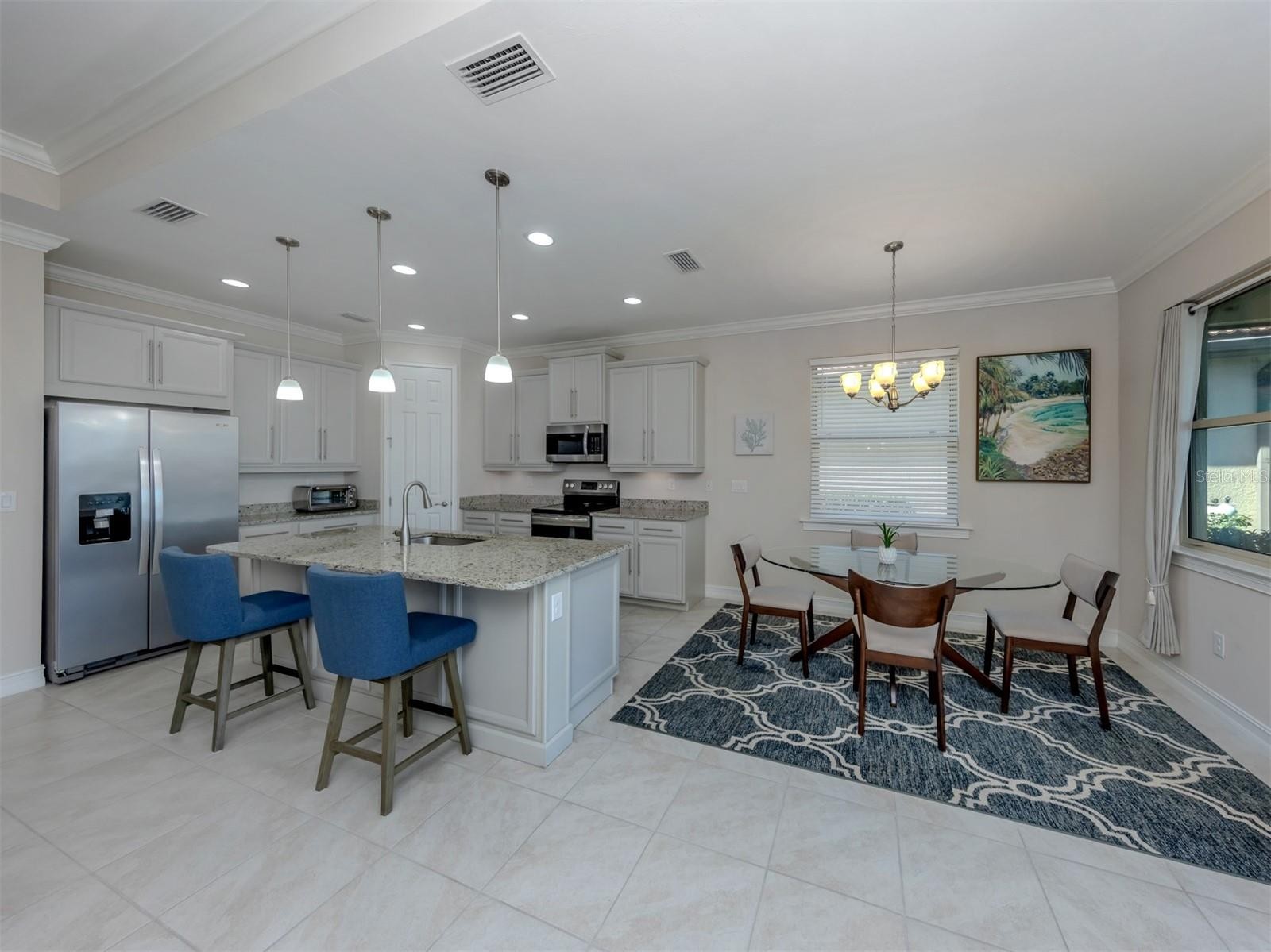 Resort-style living is infused with coastal inspiration, offering a relaxed, at-home feel from the moment you enter. An open layout interior with crown molding, tray ceilings and ceramic tile flooring balances comfort, functionality and effortless style. White cabinetry, beautiful countertops, a large center island, pantry, and stainless-steel appliances define a kitchen designed for everyday living and entertaining. The paver, screened lanai overlooks a peaceful lake, creating a serene setting for morning coffee or evening relaxation. The primary suite features a walk-in closet and a well-appointed en-suite bath with dual vanities, a soaking tub and spacious walk-in shower. Two additional bedrooms, a second full bath, and a den provide flexibility for guests, work or everyday living. Toscana Isles delivers resort-style living. Enjoy over 200 acres of lakes ideal for kayaking, paddleboarding, fishing and more. The Tuscan-inspired clubhouse features an infinity pool, fitness center, billiards, bar and event spaces. Outdoors, residents love tennis, bocce, a dog park and one of the area’s active pickleball programs. All this is just two miles from Sarasota Memorial Hospital, six miles from Nokomis Beach, and minutes to Venice Island’s shops, dining and world-class Gulf sunsets.