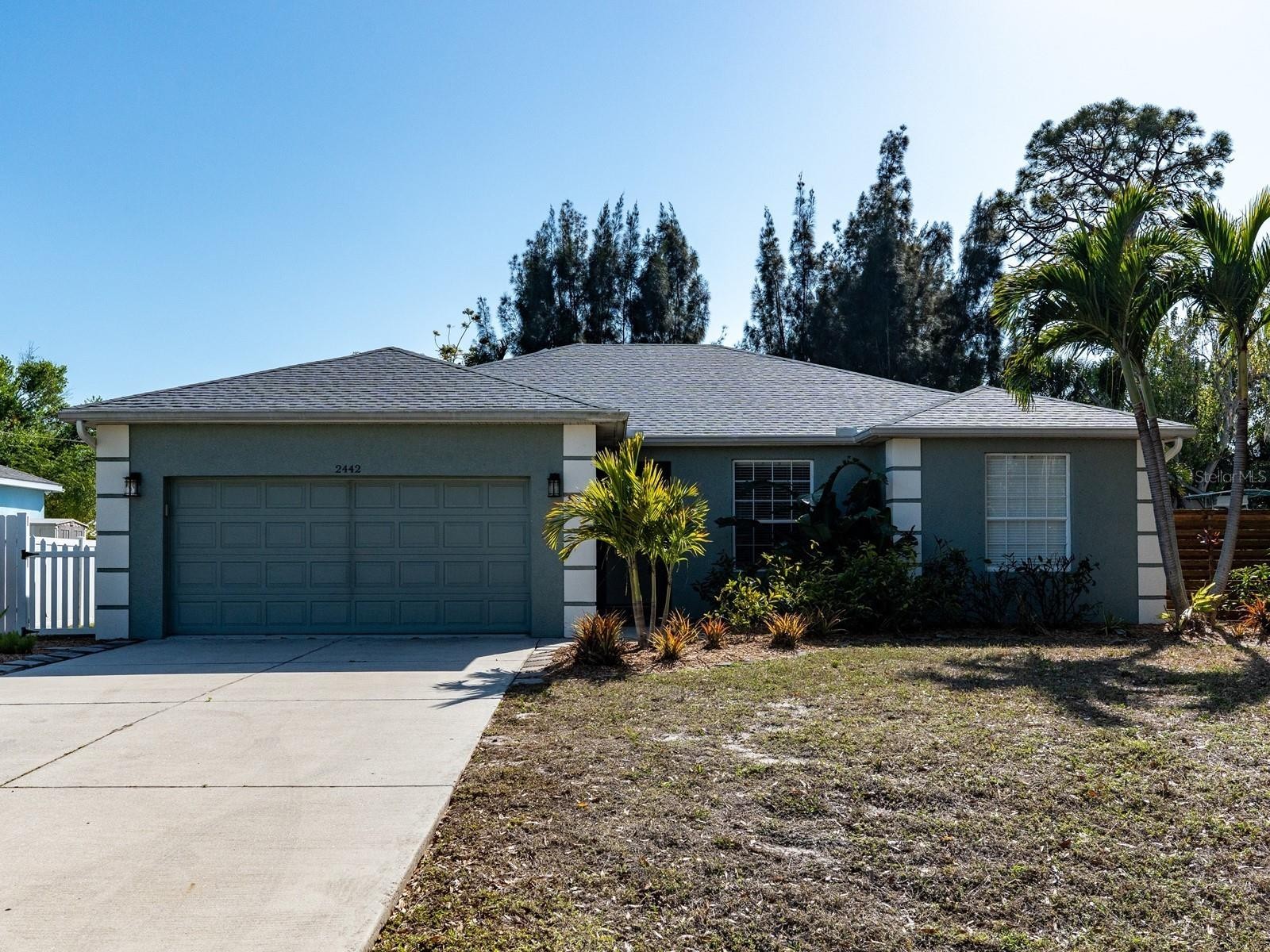 One or more photo(s) has been virtually staged. Your ideal move-in-ready home is modern and updated, with a brand-new roof, and is located near Sarasota Bay, beautiful beaches, and top-rated golf courses. This spacious residence has everything you need! It features a home office, three bedrooms, and two bathrooms, all situated in a non-deed-restricted community, allowing you to bring your boat or RV without any hassle. Considering adding a pool? No problem! The property already includes essential electrical connections and a dedicated equipment pad, making installation easier. As you enter the open-concept design featuring a spacious great room that seamlessly combines the living and dining areas, you can feel the cheerful ambiance of the beautifully bright interior. Numerous upgrades include tray ceilings, crown moldings, arched entryways, granite countertops, and high-quality white cabinetry throughout, as well as offset-tiled flooring in the main areas for a visually dynamic experience. The bedrooms and home office, with a stylish glass double door entry, showcase laminate flooring that beautifully mimics the look of wood! A remodeled, gourmet-inspired kitchen showcases a stainless-steel range hood and top-name-brand appliances, including a five-burner ceramic cooktop with a double oven. There is ample cabinetry and storage, along with a built-in pantry, all complemented by a tiled backsplash, granite surfaces, and breakfast bar. Just off the kitchen, the eating area boasts a built-in buffet with more storage and a wine rack that fits the vibe perfectly. The primary suite has direct access to the two-car garage and laundry area. A tray design in the Owner’s bedroom makes the high ceilings feel even more impressive. The renovated 4-piece en suite connects to a spacious walk-in closet. Sliding glass doors lead to the covered lanai and patio, which incorporates paver bricks and opens to a private, fenced backyard. Imagine embracing the desirable Florida lifestyle by making this inviting home yours! With a lovely avocado tree in the front yard, a treasured cocktail tree offering four delicious citrus fruits, and an ever-bearing fig tree, you’ll not only enjoy a vibrant outdoor experience but also enjoy substantial savings at the Farmer’s Market. It’s an exciting opportunity to enhance both your home and your lifestyle! Featuring a newer air conditioning unit, hurricane shutters, and an impact-rated garage door for peace of mind. Situated about a mile from the bay and outside of a flood zone, this home offers an ideal central Sarasota address just a short drive from the beach. It's in a desirable school district, with Gulf Gate Elementary about 2 miles away and in the Riverview High School region. Just minutes to Costco, Total Wine, Sprouts, Publix, Target, and Starbucks, the area also features the Gulf Gate Public Library, dining at the Sarasota Pavilion, the beautiful beaches of Siesta Key, championship golf, and several recreational venues, including the YMCA and Legacy Trails.