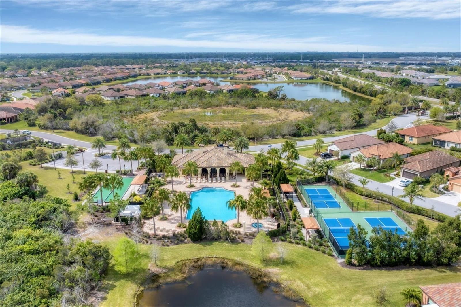Welcome to easy Florida living in this inviting two-bedroom, two bath DETACHED home that is tucked inside an amenity rich, gated community in sunny Sarasota. This lightly lived-in residence features a bright, airy layout perfect for both everyday comfort and entertaining. The open kitchen is designed for both style and function, showcasing crisp white cabinetry, abundant counter space, and a seamless flow into the main living and dining areas. The spacious primary suite features ample closet space and a private bath with a large walk-in shower and doors built extra wide for easy access. The second generous bedroom is ideal for guests or a home office. Enjoy peaceful mornings and relaxed evenings on your very private, OVERSIZED lanai surrounded by lush landscaping. The resort-style amenities include a clubhouse, pool and spa, outdoor pavilion with fireplace, dog park, as well as pickleball and bocce courts. Milano is superbly located just minutes from pristine beaches, downtown Venice, dining, I-75 and the new Sarasota Memorial Hospital. Residents of the community benefit from an active lifestyle (with the amenities located just a short walk away), LOW HOA FEES and NO CDD FEES. Whether you are looking for a full-time residence or a seasonal retreat, this home checks all the boxes for relaxed coastal living.