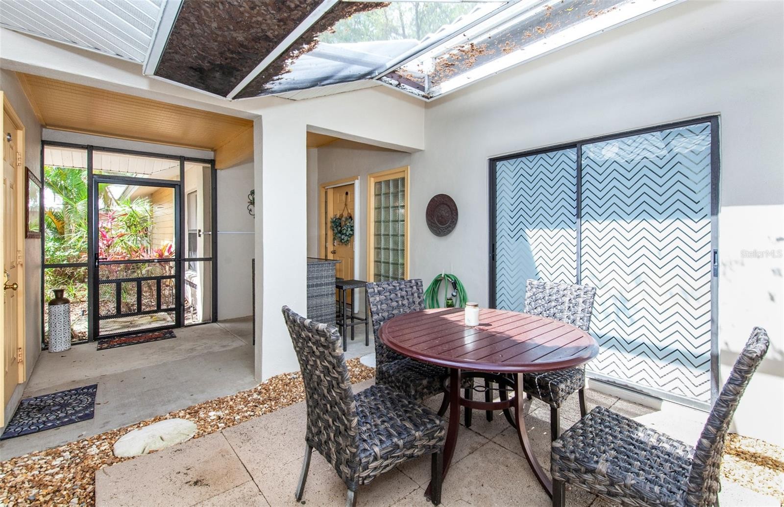JUST LISTED | NEW ROOF | PRIVATE COURTYARD OASIS IN MYRTLE TRACE. Welcome to Paradise, a beautifully updated, move-in-ready villa tucked away on a peaceful cul-de-sac beneath a canopy of mature trees in the highly sought-after Myrtle Trace community of Plantation Golf & Country Club. From the moment you arrive, you will feel the tranquility, charm, and that unmistakable “this is the one” feeling. Step through the front door into a light-filled interior where soaring cathedral ceilings and a fresh, neutral palette create an open, airy elegance that instantly feels like home. Designed for Living & Entertaining this home offers two spacious living areas, including a sun-drenched Florida room overlooking lush tropical landscaping—perfect for morning coffee, afternoon reading, or hosting unforgettable gatherings. The inviting great room features a cozy fireplace, adding warmth and character on those rare cool Florida evenings. The kitchen is both stylish and functional, featuring: Shaker-style cabinetry, generous counter space, pantry storage, raised breakfast bar, and adjacent dining space. Your Private Retreat features the primary suite is thoughtfully positioned for privacy and relaxation, offering a peaceful escape at the end of the day. The en-suite bath includes a spacious vanity, walk-in shower, and separate water closet. Guests will feel right at home in the secondary bedroom, complete with sliding doors that open to the Courtyard , a perfect blend of indoor-outdoor Florida living and perfect for entertaining or a serene retreat for you! The lanai (fondly known as the “Jungle Room”) and dinette feature remote-controlled blinds, giving you effortless control of light and privacy. Updates have been done for Peace of Mind with a NEW ROOF (2026!), AC System & Electrical Panel (2020), and an Oversized 2-car garage. Here’s what truly sets this home apart! This villa has weathered two major hurricanes in recent years without any issues peace of mind that’s hard to find. Myrtle Trace is more than a neighborhood, it is a Lifestyle! Tree-lined streets, a peaceful atmosphere, and a welcoming, active community make this one of the area’s hidden gems. You and Your Family will the Heated Community Pool, Clubhouse with Kitchen, Grill Area, Meeting Room & Lending Library creating a Vibrant Social Calendar. Optional membership to Plantation Golf & Country Club includes, Two Championship 18-hole golf courses, Tennis & Pickleball courts, Fitness center, Dining, Jr. Olympic Pool, and Location, Location, Location. Just minutes from shopping, dining, medical facilities, Wellen Park home of Atlanta Braves spring training facility, stunning Gulf Coast beaches, and Historic Downtown Venice. This is more than a home, it’s your everyday escape, whether you’re looking for a full-time residence or a seasonal retreat, this villa delivers comfort, charm, and the Florida lifestyle. Schedule your private showing today—homes like this in Myrtle Trace don’t last!