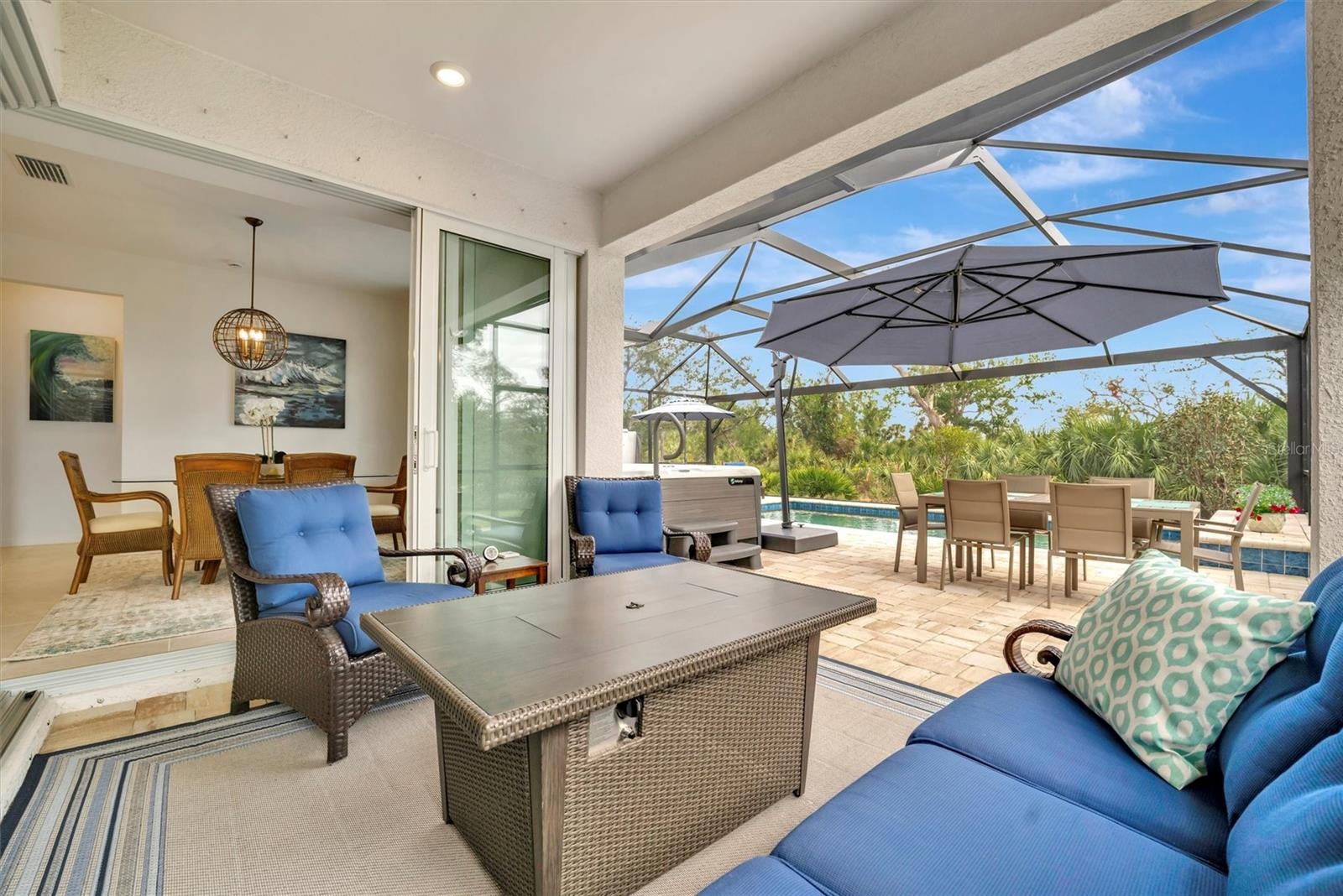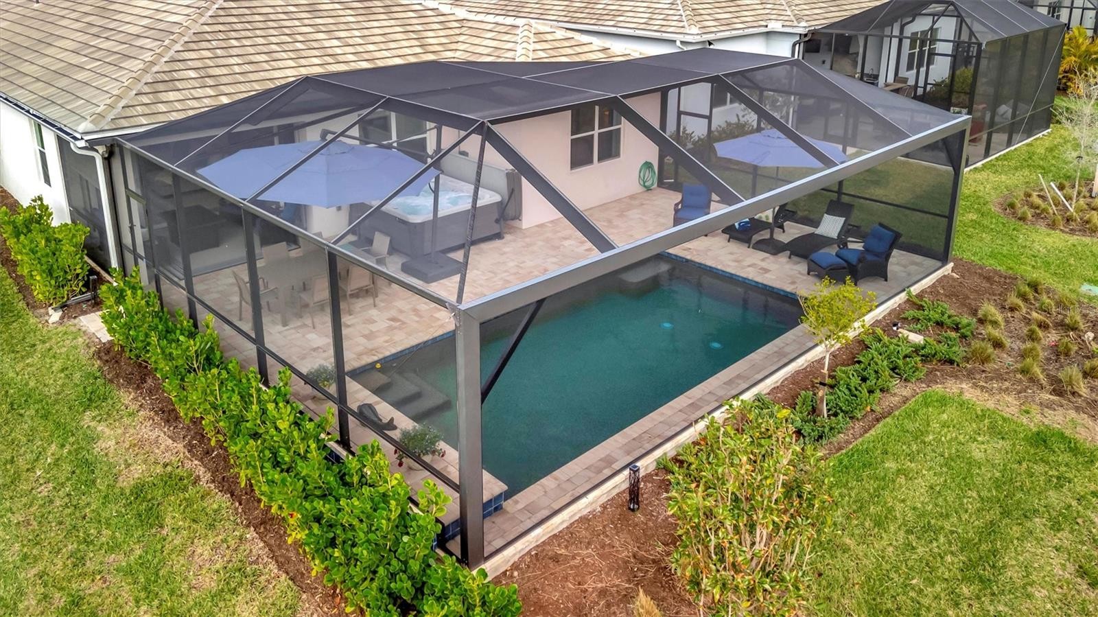 Welcome to Beachwalk, a brand-new, RESORT STYLE community in the charming beach town of Englewood, Florida. Designed with contemporary coastal living in mind, this vibrant neighborhood offers an unmatched lifestyle just minutes from everything you need. Located 5 MIN FROM THE BEACH! 15 MIN FROM WELLEN PARK & COOL TODAY PARK, 10 MIN FROM THE BOAT CLUB, and 15 MIN FROM DOWNTOWN VENICE, waterfront restaurants, shops, and more, you'll find convenience and entertainment at every turn. Enjoy GOLF CART RIDES to NEARBY BEACHES or local dining spots that exude a relaxed, beachside vibe—it’s like being on VACATION every day! As you approach this stunning home, you'll be greeted by the Key West charm, beautifully maintained landscaping, UPGRADED PAVERS walkways, and exceptional curb appeal. The exterior showcases a blend of stucco and tile roofing. Inside, the popular MYSTIQUE floor plan provides a spacious 2,067 square feet with 4 BEDROOMS, 2 BATHROOMS, and a 2 CAR GARAGE. This home is packed with upgrades, including large square ceramic TILE FLOORS throughout, 8-foot-high doorways, SMART Home, 5 1/4” baseboards, and KitchenAid STAINLESS STEEL appliances. The warm neutral color palette, Quartz countertops, SHAKER STYLE cabinets, and modern light fixtures create a welcoming, timeless aesthetic. The open floor plan with TRAY CEILINGS flows seamlessly into the expansive screened lanai. upgraded ZERO-CORNER sliding glass doors allow indoor and outdoor spaces to blend effortlessly, leading to your own tropical backyard retreat. Relax by the POOL and HOT TUB, warmed by a gas heater, and enjoy sunset views framed by swaying palm trees. The owner’s suite offers a tranquil escape with a spacious WALK-IN closet and a spa-inspired en suite bathroom, complete with a frameless Eurostyle shower and DUAL-SINK vanity. The guest bathroom features similar high-end finishes with tile surround shower and tub combination, QUARTZ countertops, and shaker style cabinetry. Situated within a upscale GATED COMMUNITY, this property provides access to first-class amenities. Residents can enjoy a RESORT-STYLE POOL with lap lanes, a HEATED SPA, TIKI BAR, RESTAURANT, PICKLEBALL, tennis, bocce ball, a FITNESS CENTER, and a clubhouse perfect for socializing. Conveniently located near top-rated golf courses, pristine beaches, shopping, and dining, Beachwalk offers an unmatched combination of beauty and practicality. Additional benefits include maintenance-free living, an affordable HOA, NO CDD fees, and the peace of mind that comes from being located OUTSIDE OF A FLOOD ZONE. Don’t miss your opportunity to own this slice of PARADISE. Schedule your private showing today and start living the Florida COASTAL LIFE-STYLE you’ve always dreamed of! ****Ask about TURNKEY OPTION **** (Hot tub is separate from the sale of the home. Ask for pricing if interested)