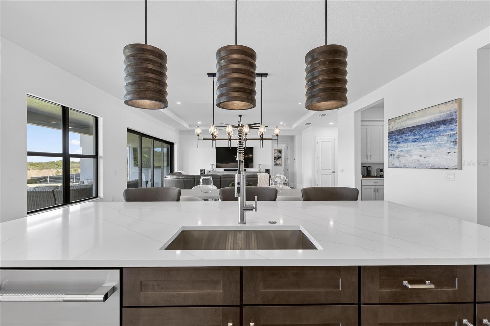 2508 Waterfront Cir, Sarasota, FL 34240 | 5 Bedrooms + Den | 5.5 Bathrooms | 4,695 Sq Ft | Monterey at Lakewood Ranch | Built 2025 Here's something you almost never find: the only resale home in a brand-new neighborhood — and it's better than anything being built around it right now. While surrounding homes at Monterey at Lakewood Ranch are still under construction, 2508 Waterfront Circle is finished, refined, and ready. But this isn't just move-in ready — it's been taken to another level entirely. The current owners moved in and immediately got to work, hand-selecting and installing high-end fixtures and appointments throughout, and replacing the builder flooring with stunning 9.5-inch wide custom oak hardwood that runs through the main living areas. What you're getting is a 2025-built estate with the kind of elevated interior that most new construction simply doesn't have — and you can see it the moment you walk through the door. The entry makes an immediate impression. A grand two-story foyer with a custom oak staircase draws your eye upward and sets the tone for the architectural detail found throughout the 4,695 square feet of living space. Ten-inch baseboards, cathedral and tray ceilings, recessed lighting throughout, and a curated custom lighting package complement the home's clean modern lines. Custom Rockwood plantation shutters and a light, neutral palette keep the interior bright and cohesive from room to room. At the center of the home, the open-concept great room and chef's kitchen form the kind of space that makes you want to host. The kitchen is built for it — an oversized island with pendant lighting and breakfast bar seating, quartz countertops with a full matching backsplash, abundant cabinetry, a natural gas cooktop, built-in oven, stainless steel appliances, a large walk-in pantry, and a separate butler's pantry for the moments when prep space actually matters. The main living areas transition effortlessly to a large second-floor bonus space that works equally well as a media room, game room, or additional lounge area. The dedicated first-floor office with French doors creates a quiet, private setting for remote work without sacrificing proximity to the rest of the home. Upstairs, the primary suite is a true retreat — tray ceiling, dual walk-in closets, and a spa-caliber bath with split dual vanities, a freestanding soaking tub, and an oversized walk-in shower tiled to the ceiling and fitted with multiple shower heads, a rain showerhead, built-in benches, and inset niches. Three of the four secondary bedrooms feature private en suite baths, every bedroom includes a walk-in closet, and the laundry room is outfitted with built-in cabinetry and a utility sink. Outside, a large pavered driveway, generous parking, and spacious patio areas carry the same intentionality as the interior — polished, functional, and built to impress before anyone even reaches the front door. Monterey is a gated community Positioned within Lakewood Ranch — one of the country's premier master-planned communities — this home puts I-75, top-rated dining, golf, parks, and Gulf Coast beaches all within easy reach. Head east on Fruitville Road approximately seven miles from I-75 and you've arrived. The window to own the only resale in a brand-new neighborhood — already upgraded beyond what the builder left behind — won't stay open long. Call to schedule your private tour.