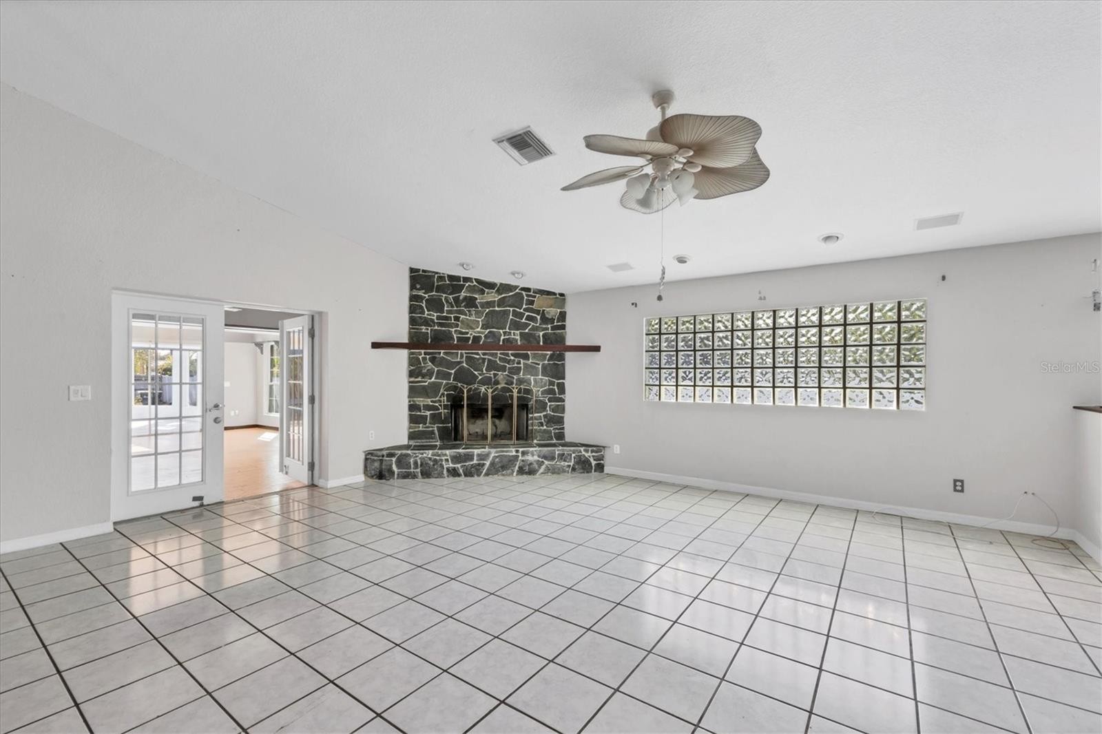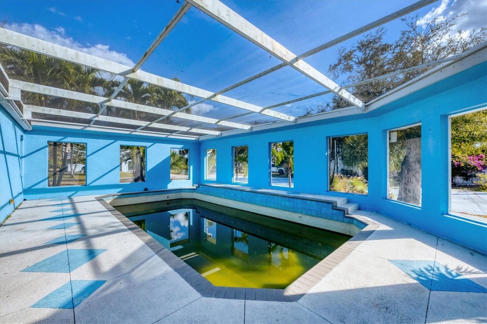 This spacious 4-bedroom, 3-bath home with a den is located on a corner lot and offers 3,458 square feet of comfortable living space. Highlights include an open floor plan with vaulted ceilings, a cozy wood-burning fireplace, and a large Florida room ideal for relaxing or entertaining. The extra-large 0.46-acre lot features a private pool and a huge concrete driveway with a basketball court. Recent upgrades include a new roof in 2020 and an HVAC system in 2022. Conveniently situated just 15 minutes from the beach, with shopping, dining, and the interstate all within minutes.