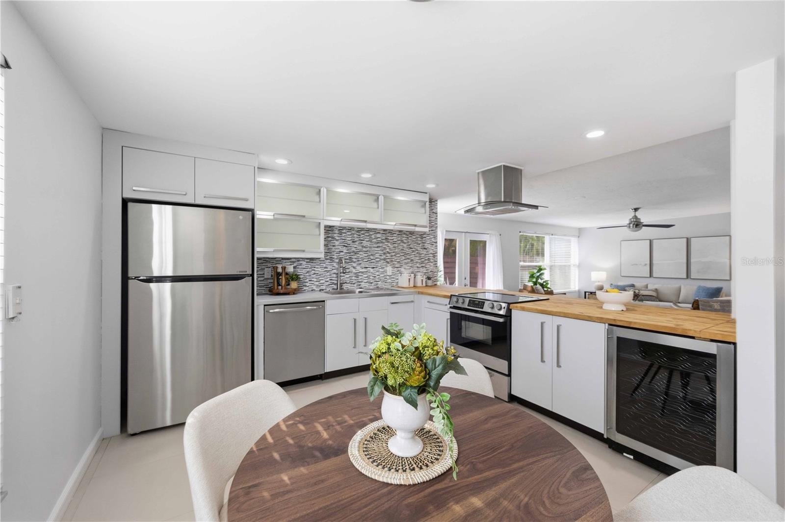 One or more photo(s) has been virtually staged. Experience the pinnacle of coastal living at 2546 Parma St, Sarasota, FL 34231. This meticulously updated three-bedroom, two-bathroom contemporary ranch is situated on a quiet, dead-end street in the highly sought-after Riverview High School district. Built with solid block construction and featuring the added security and efficiency of impact-resistant windows and doors throughout, this home offers 1,787 square feet of thoughtfully designed, worry-free living space. The bright, open-concept floor plan is beautifully finished with a combination of warm natural wood and durable ceramic tile flooring—completely carpet-free! The chef-inspired kitchen serves as the heart of the home, boasting solid wood cabinetry, solid countertops, a wine fridge, and a spacious eat-in kitchen area perfect for daily meals and entertaining. Flowing seamlessly from the main living areas, the inviting family room features French doors that lead directly to the private patio and fully-fenced backyard, creating a perfect indoor-outdoor transition for weekend gatherings. The primary suite serves as a private sanctuary, complete with a spa-like ensuite featuring a luxurious jacuzzi tub and a walk-in shower. Significant mechanical updates provide lasting peace of mind, as the home was fully re-plumbed in 2013, including all water and sewer lines. Additionally, a private well handles all irrigation needs to keep the landscaping lush and affordable, featuring a brand-new well pump. This property offers the ultimate freedom with no HOA fees, providing ample space for your coastal lifestyle including an oversized one-car garage, an expansive driveway, and a dedicated side parking pad for additional vehicles or a boat. The outdoor living space is equally impressive, featuring a 0.19-acre lot with a private patio and mature landscaping ideal for pets and relaxation. The location is truly unbeatable for those seeking the Sarasota lifestyle, located just a short drive to the world-famous white sands of Siesta Key Beach. Residents will appreciate being just steps away from top-rated Riverview High School, as well as enjoying quick access to the Legacy Trail and Downtown Sarasota. Whether you are looking for a primary residence or a high-potential investment property, this move-in-ready home offers the versatility and prime location you have been searching for.
