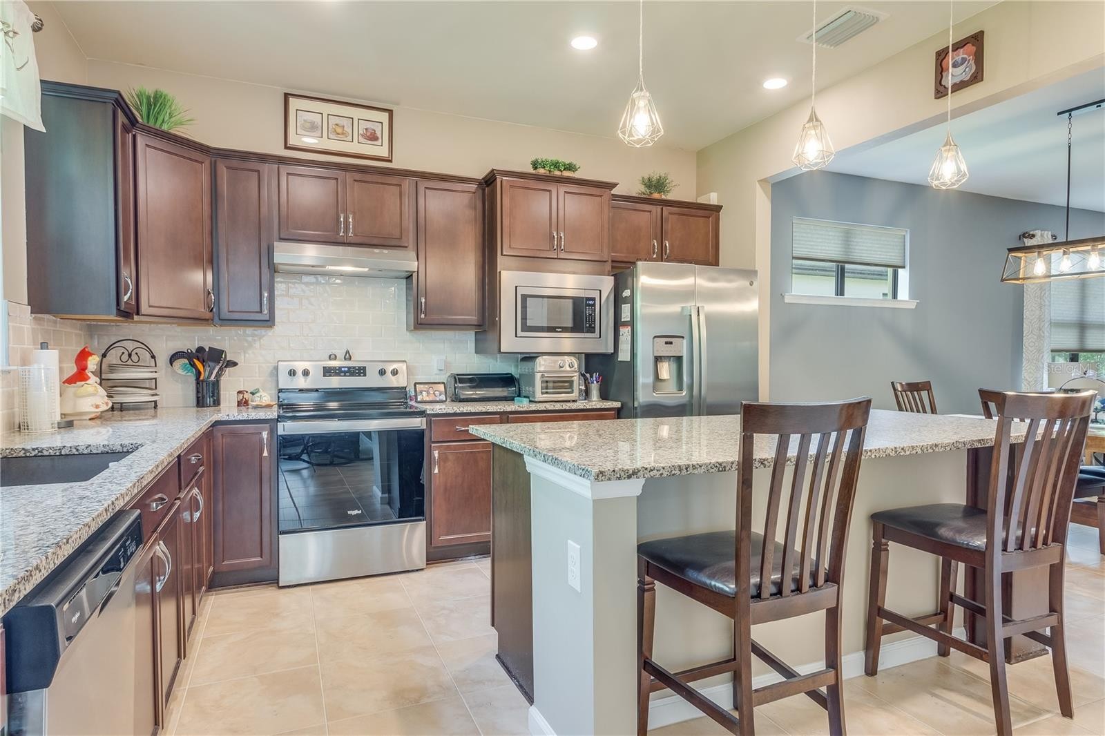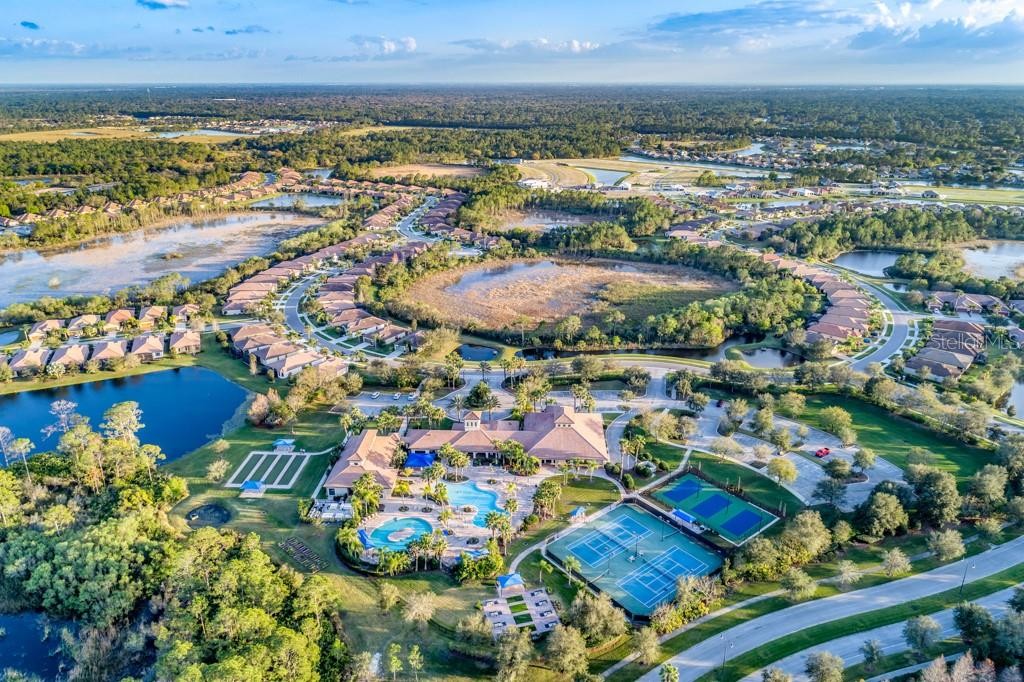 **MOTIVATED SELLER, BRING ALL OFFERS!** *3D Tour* Enjoy resort style living in the 55+ active adult, maintenance free, gated, Del Webb community of Cypress Falls! NOT IN A FLOOD ZONE, EVACUATION ZONE "E"! This home is a rare TAFT Model, feauturing a cozy and inviting interior feel, this meticulously maintained 2 bedroom, 2 bathroom home is an extraordinary find! Pull into your driveway and be greeted with lush Florida landscaping including curbing, palm trees, lush green grass, exterior lights, stone enhacements and the scent of flowers in bloom as you make your way into the place you'll call "home." Open the front door and be welcomed to an inviting foyer entrance and admire the neutral paint colors, 9ft high volume ceilings, and freshly steamed tile floors throughout the main living area, making cleaning a breeze and pet friendly! The open layout connects living spaces seamlessly, while the well-appointed kitchen with a huge kitchen island makes meal prep and baking a breeze. The kitchen is a chef's delight, featuring stainless steel appliances, granite countertops, closet pantry, plant shelves, ornate tile backsplash, an abundance of solid wood cabinets aligned with crown molding, and the soft close feature with pull out shelves for the ultimate in organization, including a corner lazy susan cabinet and trash compartment. The SILGRANIT kitchen sink is a luxury item you won't find anywhere else! Complimented by a central island, highlighted with pendant lights, this space offers additional seating and dining options and extra storage space. The dining room is showcased by a modern hanging light, and overlooks all of your main living areas so you won't miss out on any of the conversations when entertaining family and friends. Double French doors lead you into a quaint den/office space that would also make an excellent game room, playroom or craftoom - the possibilities are endless! The stunning primary bedroom and bathroom are a haven of tranquility, featuring dual sinks, walk-in-shower and granite countertops. A large walk-in-closet with ample shelving provides plenty of storage space for your entire wardrobe. The guest bedroom and bathroom are secluded down the hallway, with privacy in mind for your out of town visitors. The guest bedroom is equipped with a private closet, window and ceiling fan, and the guest bath has a vanity with large mirror, light fixture, and shower/tub combo. A charming SUNROOM off of the kitchen is the picture perfect spot to relax with a good book or catch up with an old friend. The OVERSIZED GARAGE has an additional 4 ft extension, and the floor has an epoxy finish! Step outside to the screened in lanai and watch the beautiful sunsets every evening while dining outdoors and enjoying the gorgeous weather Florida has to offer. Lots of natural wildlife in your own backyard with Heron & Crane visiting regularly. The vibrant community features a clubhouse, tennis courts, dog park, community center, and entry access pools & spa which is just the beginning! Enjoy pickleball courts, bocce ball, billard's, ping pong, horseshoes, library and internet cafe. Are you the social type? Come take part in the numberous clubs and classes, crafting, bridge, poker, yoga, tai chi, water aerobics, dance and more! Community events like Bingo and parties which add to the vibrant lifestyle. With numerous beaches and golf courses nearby, Cypress Falls presents the lifestyle you've longed for, where every day feels like a vacation.