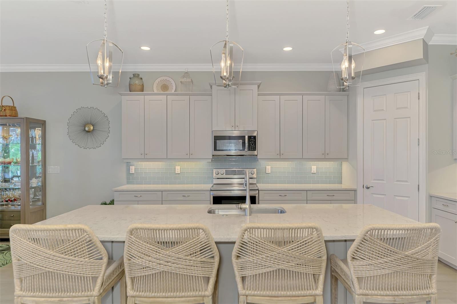 Toscana Isles with immediate occupancy available! This beautifully appointed 3-bedroom, 6-bath home in the gated community of Toscana Isles offers rare waterfront living with spectacular lake views and unforgettable sunsets. Situated on a 65-acre naturally sprung lake, residents can enjoy fishing, kayaking, canoeing, and electric boating directly from their private dock. The heated saltwater infinity pool with spa overlooks the lake, creating the ultimate backdrop for outdoor living. The expansive lanai with wide-screen enclosure, outdoor kitchen, and a rare poolside half bath provides the perfect setting for entertaining. Inside, the home is designed with elegance and function in mind. The gourmet kitchen features a large quartz island, abundant cabinetry, newer stainless-steel appliances, and opens to a dining room with an aquarium-style window framing the lake and pool. Upgrades include tray ceilings, crown molding, 8-ft doors, crystal chandeliers, architectural archways, a new impact front door, auto pool fill, and an electric fireplace. The owner’s suite offers a spacious retreat with a luxurious bath and dual custom walk-in closets. Additional features include a separate office, well-equipped laundry room with sink and cabinets, and a 3-car garage. The second level is an entertainer’s dream—complete with a 9-seat movie theater (with light-up cup holders), game room, kitchenette, and full bath. Toscana Isles delivers a resort lifestyle with world-class amenities, including tennis, pickleball, bocce, fitness center, clubhouse, resort pool, fire pit, and golf-cart friendly living. This home is simply one of a kind—an impressive and unique waterfront property offering luxury, lifestyle, and unforgettable sunsets. Quick access to the beach, commerce, Legacy Bike Trail, parks and the new Sarasota Memorial Hospital. You have it all!