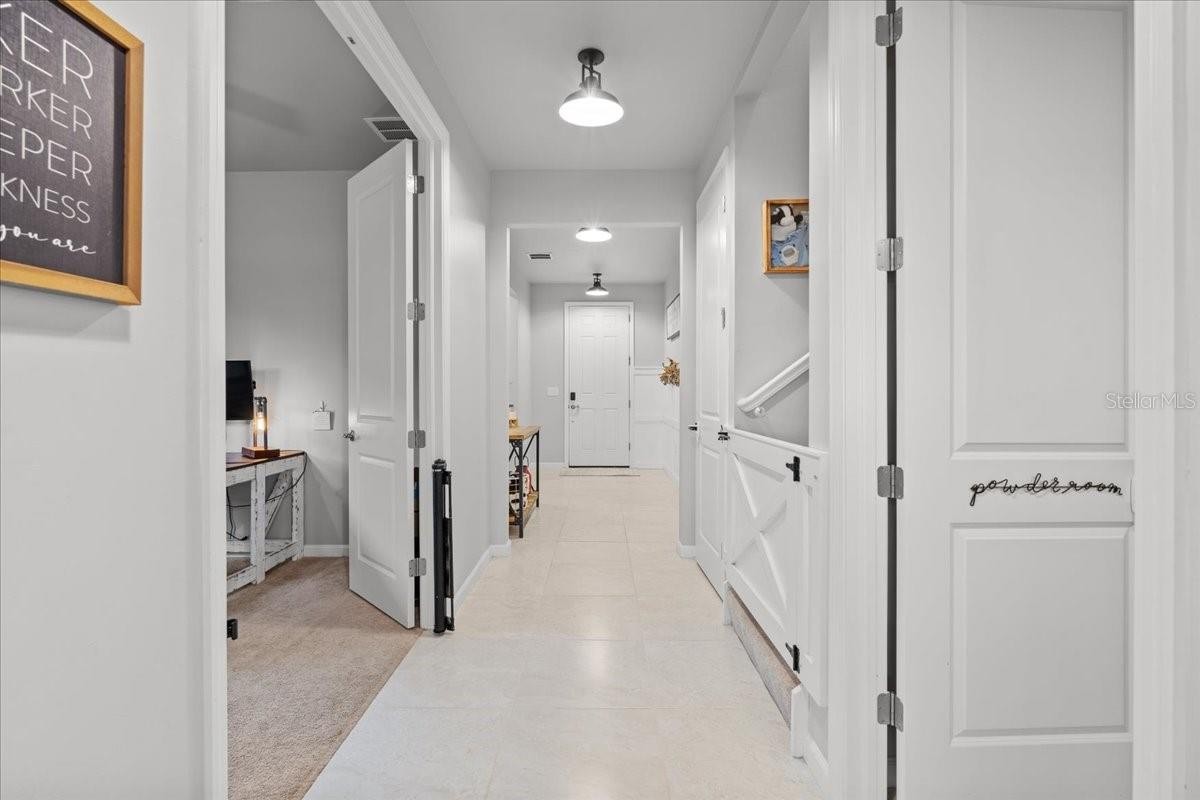 Welcome to this gorgeous five-bedroom (3 of the bedrooms have their own private bathrooms!), four-and-a-half-bath, plus office, tandem 3 car garage, waterfront residence located in the highly sought after community of Cedar Grove in North Port, Florida. Thoughtfully designed with both functionality and a modern farmhouse style, this spacious home offers over 3,400 sqft of versatile living spaces and stunning pond views via multiple large windows and sliders. Immediately upon entrance you begin to see the plethora of upgrades adorning this home. 8' doors throughout the main floor, custom wainscoting, oversized tile flooring, custom cotton greige painted walls, farmhouse light fixtures and more! Located to the right of the entrance, you’ll find a private guest suite complete with its own en-suite bathroom and large walk in closet, perfect for visitors or multigenerational living. Off to the left of the entrance is a mudroom and catch all space! Ahead you'll find a dedicated office with elegant double doors and a custom wood trimmed accent wall, providing the ideal space for working from home or having a quiet study. The expansive main living area features a family room with another custom wood trimmed accent wall, two dining space options with both wine and coffee bars and panoramic views of the serene pond and inviting rear lanai, creating a peaceful backdrop for everyday life. The beautifully appointed kitchen showcases: crisp white cabinetry, 42" uppers with soft close doors and drawers, multiple drawer pullouts, a lazy suzan corner cabinet, under cabinet lighting, quartz countertops, beautiful custom backsplash, stainless steel appliances with a built in oven and microwave, a huge walk-in pantry and is capped off with an oversized island that has farmhouse pendants, an upgraded deep basin sink, and generous prep space, perfect for gatherings and entertaining. There is also a convenient guest half bath with a pedestal sink. But before you head upstairs make sure to look under them to locate the ultimate Jr Man Cave or simply a ton more storage space if desired. Upstairs, a large secondary living area on the upper level is currently set up as an arcade game room, but offers a flexible space for recreation, media, or play. The primary suite offers a great sized primary bedroom, huge walk-in closet, and a luxurious retreat with a seamless glass walk-in shower and a double vanity, providing both comfort and elegance. Three additional spacious bedrooms and two full bathrooms, (one is a private en-suite) provide ample room for family and guests. A sizeable laundry room with additional cabinetry and a big closet makes doing this chore a breeze. The Cedar Grove community is a wonderful family centered place to call home! Low hoa fees include all aspects of lawn maintenance such as mowing, blowing, weeding, trimming, mulching and even irrigation. There is also a 1/2 basketball court, covered playground, serenity viewing area and resort like pool area. This location offers easy access to HWY 41 and I75, parks, highly rated schools, and local amenities including the North Port Water Park. With its well-planned layout, thoughtful upgrades, and scenic surroundings, this property is the perfect place to call home. So don't let your dream home become someone else's address, setup your showing today! * Please check out the virtual tour and fly through video for even more details *