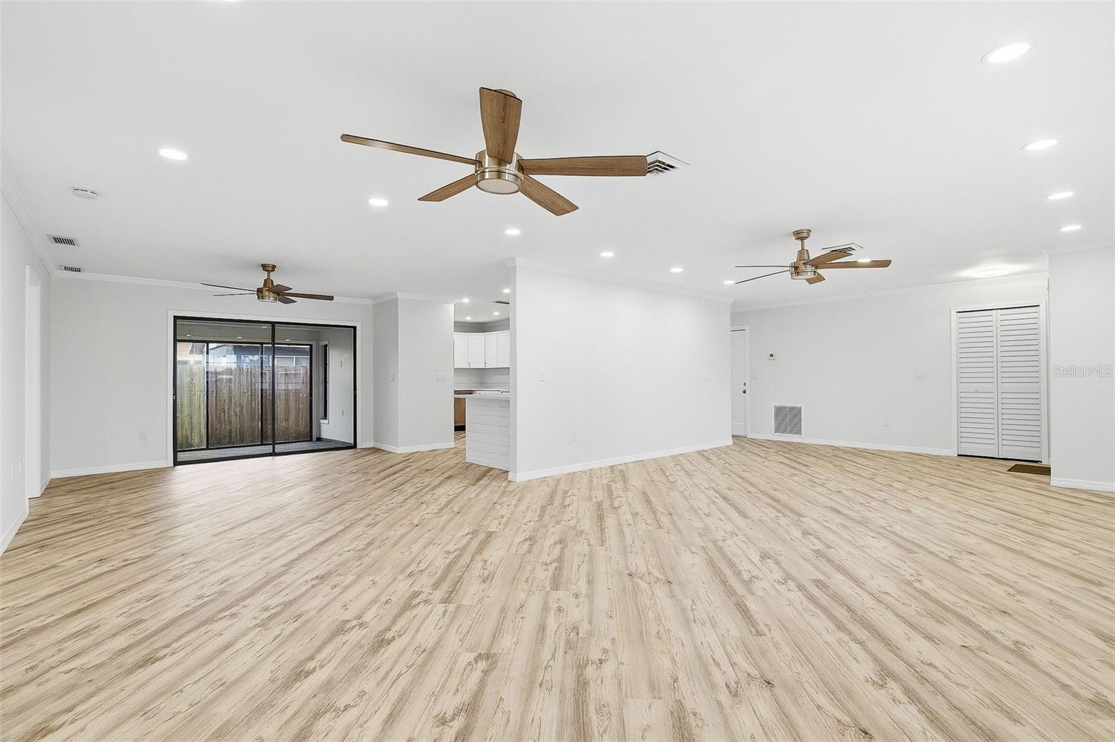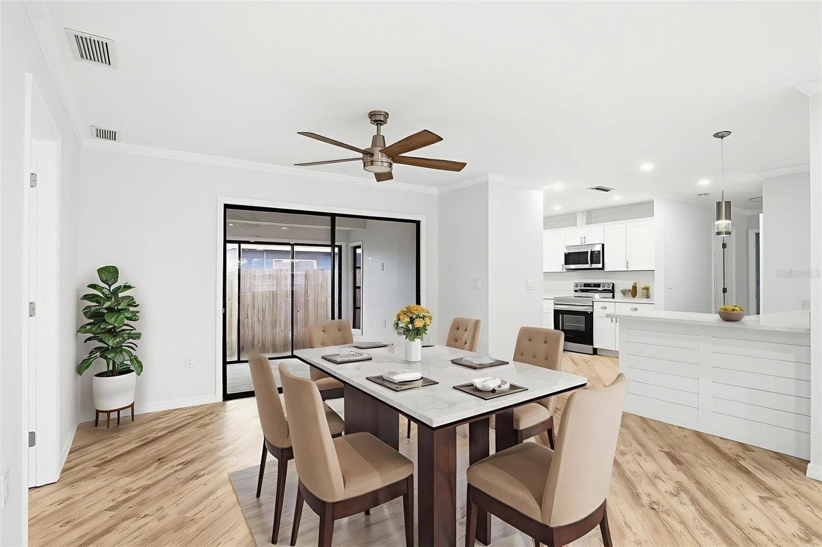 Fully renovated and truly move-in ready, this beautifully updated 3-bedroom, 2-bath home offers modern finishes, a flexible floor plan, and an abundance of natural light throughout. From the moment you arrive, you’ll appreciate the fresh exterior, wide driveway, inviting curb appeal, and the roof installed in 2023. Inside, the home features new flooring throughout, fresh neutral paint, crown molding, recessed lighting, and updated ceiling fans, creating a bright and contemporary atmosphere. The open living and dining areas flow seamlessly, making the space ideal for both everyday living and entertaining. The stunning, brand-new kitchen showcases white shaker cabinetry, sleek countertops, stainless steel appliances, modern hardware, and ample storage. The spacious primary suite offers a peaceful retreat with a fully remodeled en-suite bathroom featuring elegant tilework, a modern vanity, and a walk-in shower. The additional bedrooms are generously sized with excellent closet space and natural light. A standout feature of this home is the office/flex room, complete with large sliding glass doors perfect for a home office, library, or playroom. The second bathroom has also been fully updated with stylish finishes and contemporary fixtures. Additional highlights include updated doors and trim, oversized closets, and no HOA or deed restrictions. Conveniently located near shopping, dining, schools, and major roadways, with easy access to Bradenton, Sarasota, and nearby Gulf beaches.