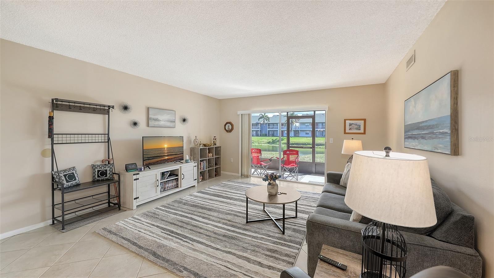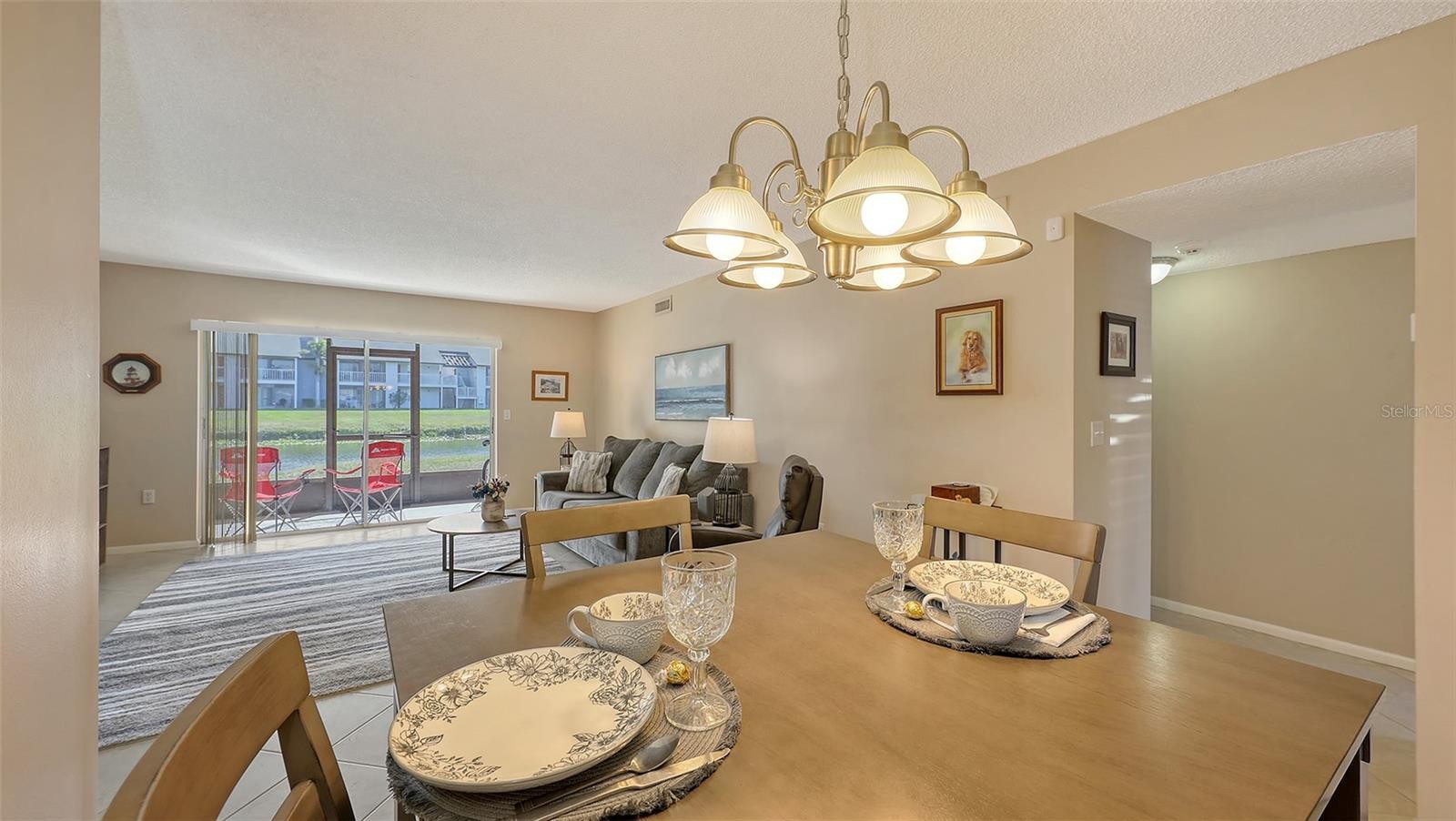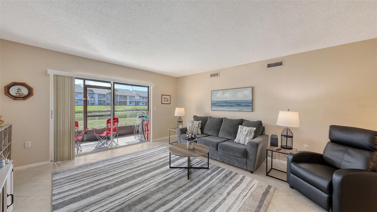 GOOD VALUE for this beautiful nicely-maintained light & bright ground floor condo on the lake with lots of updates. Serene view of the lake and preserve from the living room, dining area, primary bedroom & screened lanai and a few minutes to downtown Sarasota. New AC in 2024 and new roof in 2025 in this comfortable 2-bedroom split-plan condo. Luxury vinyl tile has been installed in the bedrooms, large neutral ceramic tile laid on the diagonal in the living areas, and the condo is freshly painted. Wood cabinets, granite countertops, a new refrigerator & a pantry are featured in the open kitchen, off the separate dining area. Additional updates are refinished bathroom tub & tile surround, new vanity, new bathroom fixtures, new blinds, and new light fixtures. Enjoy birds and wildlife from your screened lanai, swim in one of the two pools or play a game of tennis. Drive only a few minutes to the arts, restaurants and culture in downtown Sarasota and not far from the beaches on St. Armand's Circle & Lido Key. No current special assessments and no storm or flood damage. Please see the list of updates in attachments. Beautiful inside! A must-see! MAKE THIS YOUR HOME!