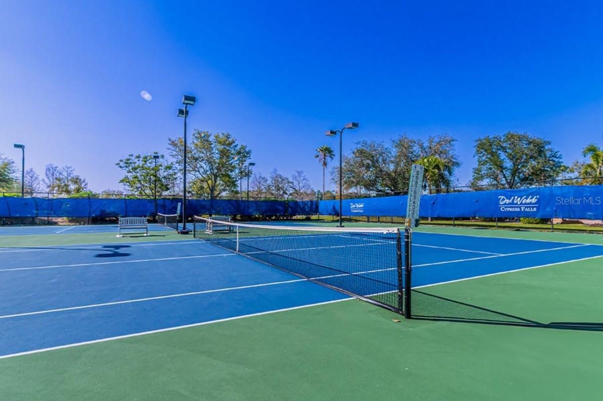 Welcome to a POOL home that feels easy to love from the moment you arrive. This meticulously maintained, turnkey furnished, 2-bedroom, 2-bath layout with a bonus/flex room and a spacious 2-car garage sits in the inviting 55+ resort-style setting of Cypress Falls at the Woodlands. The foyer leads into an open, welcoming interior in contemporary tones, crown molding, and added SolaTubes that brighten the space beautifully. The gourmet kitchen is a true highlight with granite counters, tall soft-close cabinetry with upgraded crown molding, recessed and pendant lighting, a double oven, stainless steel appliances, a closet pantry, and a large island ready for your favorite barstools. The private suite includes a generous walk-in closet with shelving and an upgraded bath featuring dual sinks, granite counters, a separate water closet, and a custom tiled walk-in shower with a frameless enclosure. Both bedrooms feature newly installed carpet for added comfort, and the main bedroom even includes a replaced window upgraded to a sliding door for easier access to the Lanai and natural light. The oversized indoor laundry room brings practical convenience with cabinetry, a sink, and an additional walk-in storage closet for everyday extras. Thoughtful upgrades continue with Storm Smart Shutters, plantation shutters, tile flooring in the main areas, upgraded fixtures, a whole-house water softener, and overhead storage in the garage. The garage also features an epoxy-coated floor and smart-home connectivity with remote control of the thermostat, front door, and garage door. Step out to the screened, paver-lined lanai overlooking your private pool/spa, wide backyard, and peaceful preserve—an ideal spot to relax or enjoy the passing wildlife. The community is full of ways to stay active and connected, offering a zero-entry pool, resistance pool, spa, tennis, fitness center, social spaces, art and crafts room, billiards room, library, and more, with golf carts and bicycles encouraged for easy cruising. All of this is less than seven minutes from the interstate and just a short ride to shopping. This is maintenance-free Florida living at its best—welcome home.
