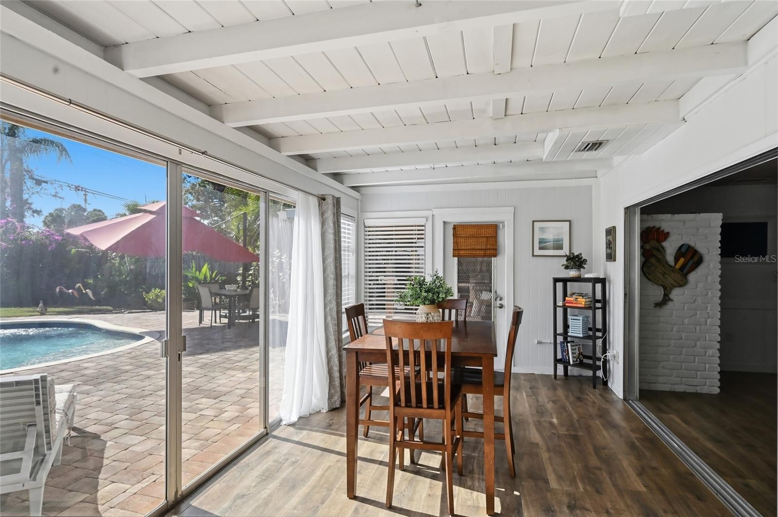 Bright, welcoming, and effortlessly livable—2651 Leafy Lane is one of those homes that simply feels right the moment you arrive. Tucked away in the heart of Sarasota’s beloved South Gate neighborhood, this classic Florida ranch offers an easy blend of comfort, character, and smart updates, all on a generous 0.23-acre lot. Built with solid concrete block construction, the home has been meticulously maintained and thoughtfully improved over time, creating a space that’s as practical as it is inviting. A brand-new roof completed in October 2024, impact-rated front window and garage door, 2019 HVAC system, and a water heater replaced around 2022 all contribute to peace of mind and lower ongoing expenses. At the center of the home, the updated kitchen delivers both function and warmth. Remodeled in 2020, it features cherry wood cabinetry, leathered granite countertops, a farmhouse sink, stone tile backsplash, and stainless steel appliances, with under-cabinet lighting adding a soft glow that works just as well for casual mornings as it does for hosting friends. Both bedrooms are well-sized and comfortable, with the primary suite offering a walk-in closet and an updated en-suite bath complete with a walk-in shower and stone-topped vanity. Updated plumbing fixtures and a whole-house water filtration system round out the interior upgrades, reinforcing the home’s low-maintenance appeal. Out back, your private saltwater pool becomes the star of the show, truly an oasis with it's outdoor fireplace and built-in grill. The fully fenced yard, refreshed in 2018, is beautifully landscaped. With no HOA, no CDD fees, and a non-flood-zone location, this home offers an ownership experience that’s refreshingly uncomplicated. South Gate’s charm extends beyond the front door, with walkable access to local dining, cafés, boutiques, and neighborhood favorites. An optional community center and pool are available, though it’s hard to imagine needing more than what you already have at home. Whether you’re looking for a primary residence, a seasonal retreat, or a rental opportunity, this property delivers comfort, flexibility, and long-term value in one of Sarasota’s most established neighborhoods. Easy living, smart updates, and a location that never goes out of style—this is South Gate at its most inviting.