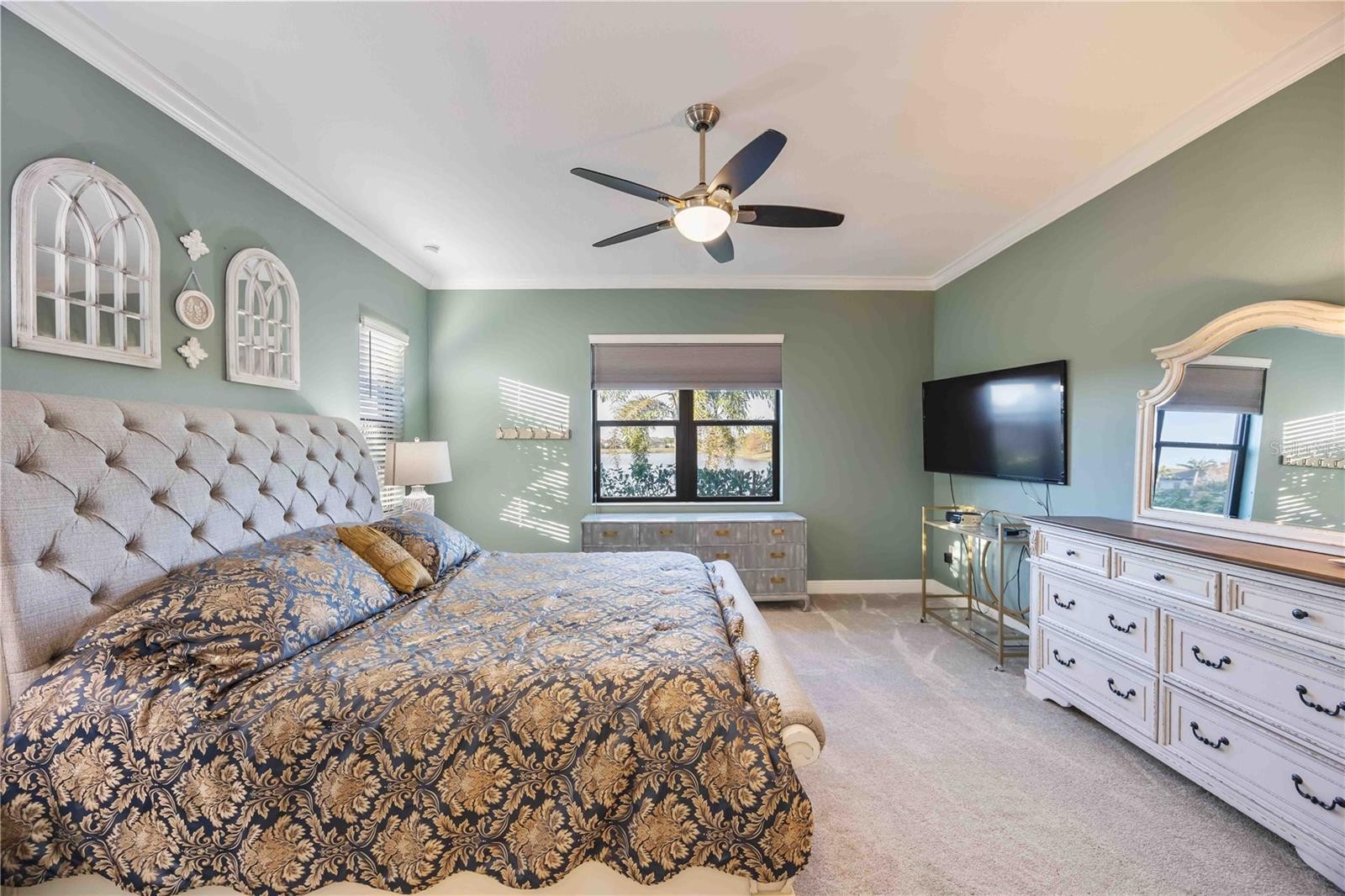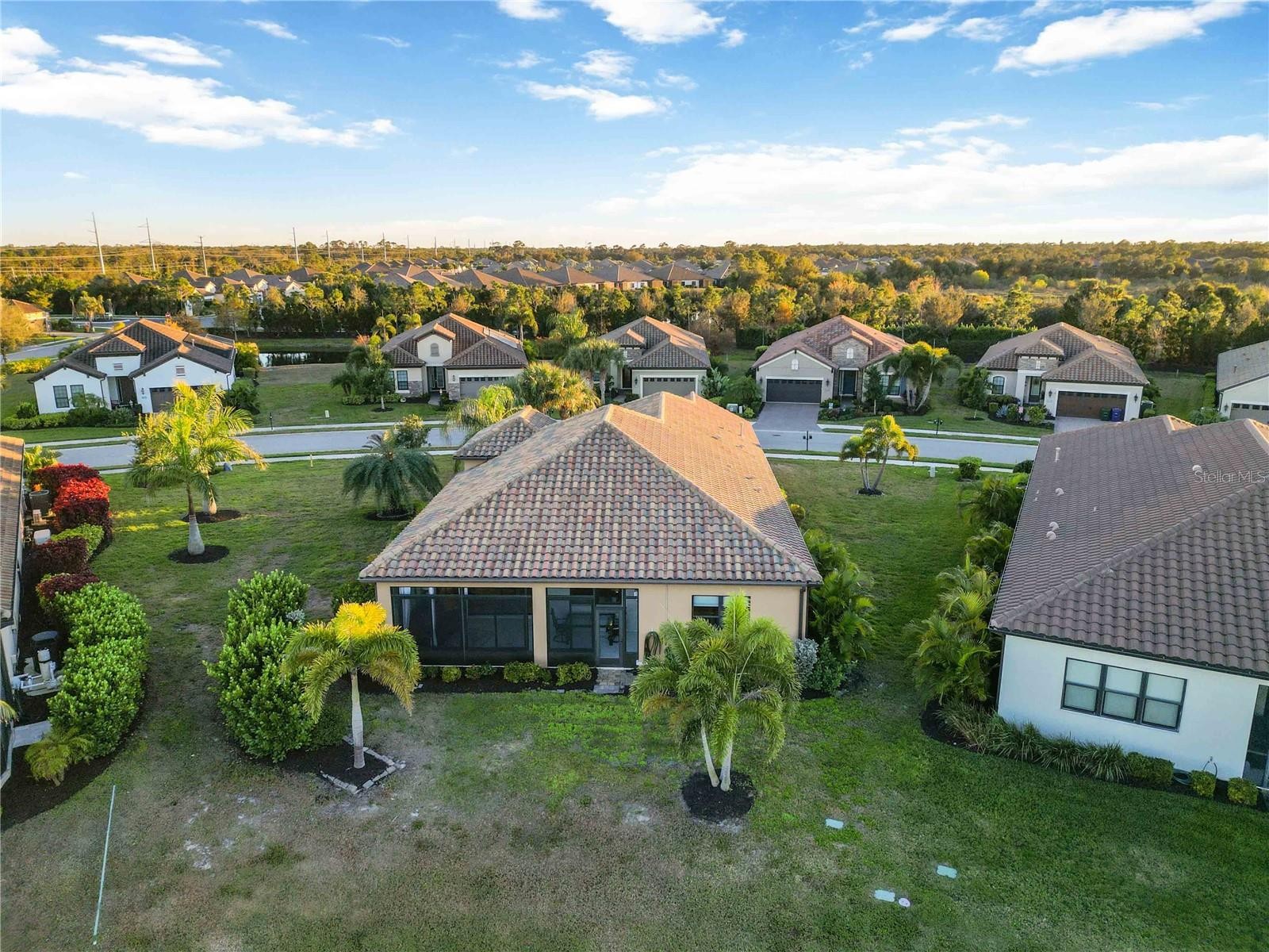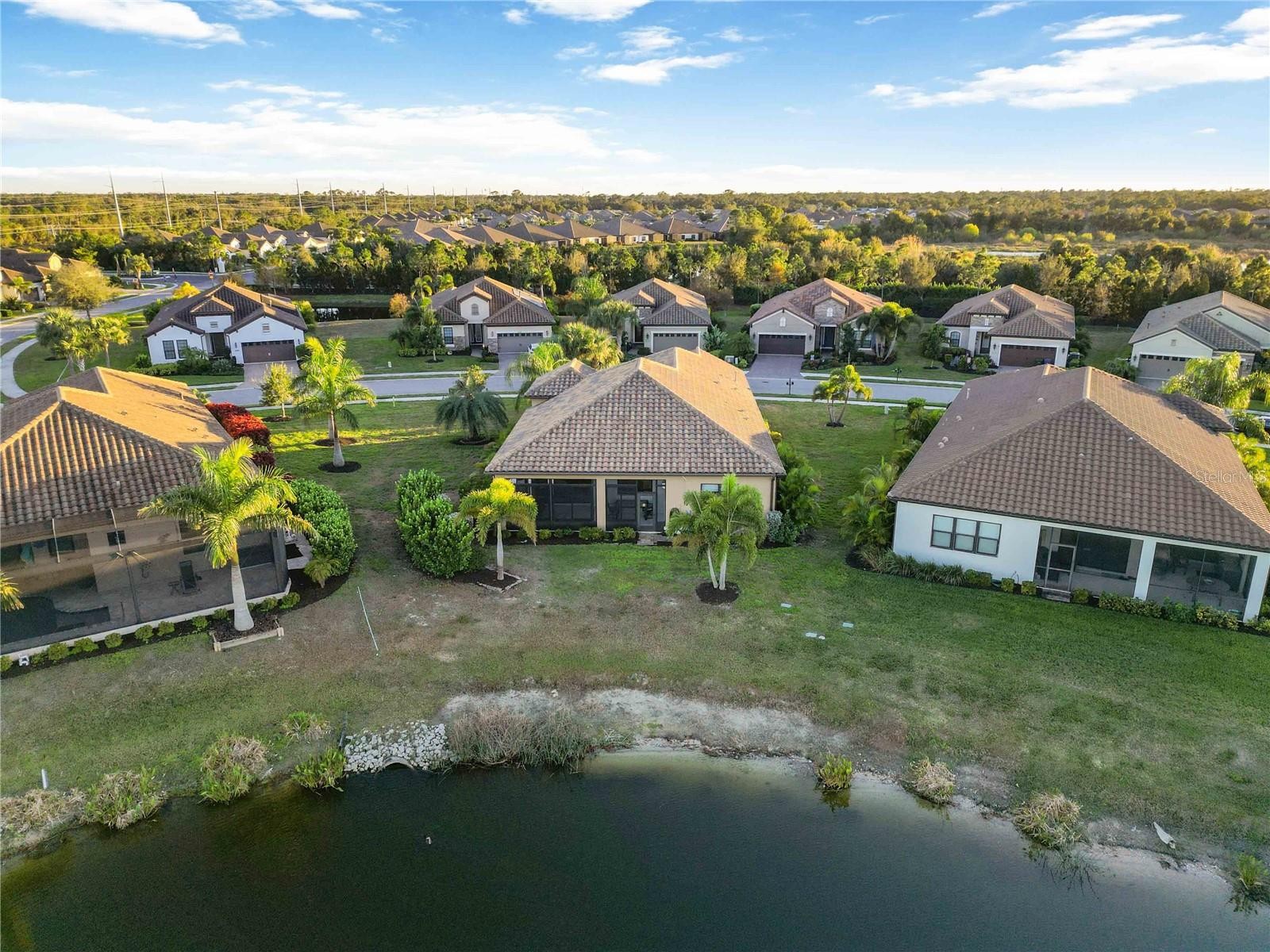 Highly upgraded home located in the gated Boca Royale community, not in a flood zone and with no CDD fees, set on an oversized lot with expansive lake views. This well-designed residence offers 3 bedrooms, 2 bathrooms, and a private office/den, plus a 309 sq ft enclosed lanai featuring a split A/C system, creating a comfortable year-round space to enjoy the peaceful water setting. The kitchen is thoughtfully appointed with quartz countertops, a Brazilian granite center island, custom backsplash, under-cabinet lighting, cabinet pull-outs, and a walk-in pantry, providing excellent storage and functionality. The open great room features tray ceilings and crown molding, while the dining area comfortably accommodates a larger table for entertaining. The office is enclosed with French doors for added privacy. The primary suite includes a spacious bath with quartz surfaces and a Roman shower with a river rock tile floor. Exterior features include mature palm landscaping for privacy, irrigation with drip lines for landscaped beds, and tranquil lake views. Additional highlights include a three-car garage with built-in shelving and a utility sink. Boca Royale offers resort-style amenities, including golf, tennis, pickleball, fitness center, clubhouse, and an active social calendar. Conveniently located near Manasota Key beaches, Wellen Park, Venice Island, shopping, and dining.