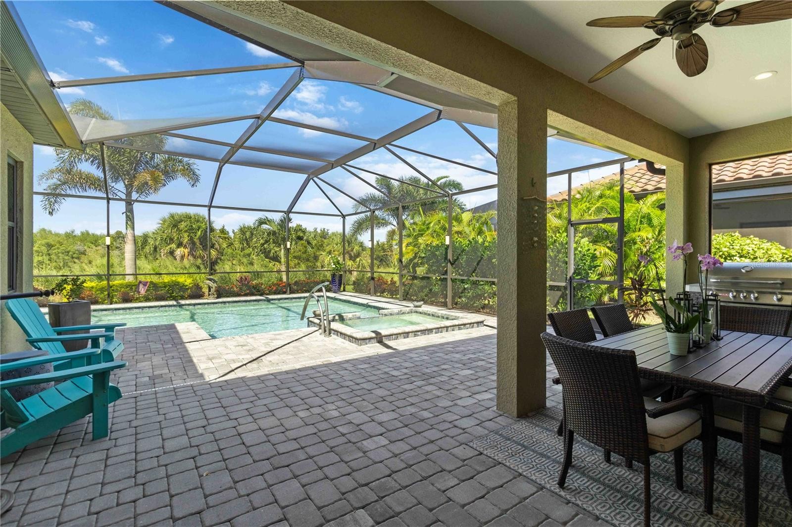 Welcome to your very own slice of paradise with stunning preserve views in the highly sought-after Boca Royale Golf & Country Club! This elegant Endless Summer model single-family POOL home blends luxury, comfort, and convenience—featuring 3 bedrooms, 2 full baths, a den, and a spacious 2-car garage complete with a whole-home Generac generator. Step inside and you’ll immediately appreciate the open, split floor plan—offering both privacy and functionality. The primary suite sits peacefully at the rear of the home, while guest rooms rest comfortably at the front. The interior showcases beautiful tile flooring throughout, plantation shutters, and impact windows on most of the home for added peace of mind. The bright, modern kitchen shines with white cabinetry, granite countertops, and a breakfast bar—perfect for casual dining or entertaining. The laundry room is thoughtfully upgraded with extra cabinetry for added storage. Step outside to your extended screened lanai, where true Florida living begins! Relax in the heated saltwater pool and spa, grill in your outdoor kitchen with refrigerator, and soak in the lush preserve views offering total privacy. The professionally landscaped yard features an upgraded irrigation system with additional sprinklers for easy maintenance. Boca Royale is a gated, amenity-rich community offering dining, fitness, tennis, pickleball, golf, and resort-style pools. With optional golf and racquet memberships, and some amenities open to the public, you can enjoy the best of both worlds. Just minutes from Gulf beaches, boutique shops, and local restaurants, this home delivers the perfect blend of luxury, leisure, and location—everything you need to live your Florida dream!