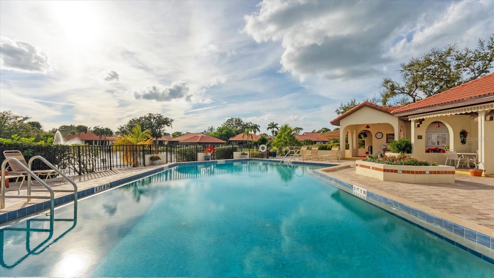 HIDDEN QUIET GEM! Why? Because LAUREL HOLLOW is a GATED community of just 93 SPANISH inspired stand alone VILLAS discretely tucked away between the quaint town of VENICE and bustling SARASOTA, under 2 miles to Nokomis BEACH. Currently self managed, it offers a great value with dues just $283.33/month and per the president, healthy reserves. Not only does this particular unit have many expensive updates already done, like NEW CEMENT TILE ROOF 2023, REMODELED KITCHEN and BATH, but it sits just around the bend, a mere 120 STEPS (for me at 5’3”) from one of my favorite serene clubhouses and sparkling heated pools. In classic Spanish inspired style, the clubhouse is eye candy to anyone who appreciates the kind of architecture that caresses the soul. Walk through rows of ARCHWAYS gracing the route to the COVERED CABANA for shade from the sun or spread out on the DECKING and SUNBATHE on the lake’s edge and enjoy the 3 FOUNTAINS. The BOARDWALK extends to a GAZEBO that in turn extends over the water where you can sit perched above the water or perhaps CATCH and RELEASE FISH in the STOCKED LAKE. I know its only 120 steps home, but spend the day, because the KITCHEN OPENS as an almost OUTDOOR KITCHEN complete with BARBECUE. Luckily on the days when it is too cold to use the outdoor kitchen, or you’ve had a bit too much sun, you will enjoy cooking in your own beautifully UPDATED KITCHEN. QUARTZ COUNTERTOPS sit on top QUALITY SOLID WOOD Cabinets with lots of SOFT CLOSE DRAWERS. Equipped with all STAINLESS STEEL APPLIANCES, a center ISLAND with 2 bar stools, a desk area and a custom SECOND PANTRY with even more super efficient ROLE OUTS, you will have plenty of convenient room for your culinary toys and a space to plan your meals and events. The same quality cabinets were used in the updated master bath which offers a SECOND SINK and EXTRA CABINETRY between the master bath and WALK IN CLOSET. It has a WALK IN SHOWER WITH BENCH SEAT, tile floor and linen closet. The master bedroom also has a door leading directly to the lanai. The floorpan offers 2 SEPARATE BEDROOM SUITES each with their own access to the outside making them feel like DOUBLE MASTER SUITES. There is a newer HURRICANE GARAGE DOOR and a MOTORIZED pull down garage screen providing comfort for the busy handy man projects or offering extended space for big gatherings. When its time to venture out from the community, grab your golf cart for the groceries, PUBLIX is just across the street or head less than 2 miles WEST to NOKOMIS BEACH. Out for the night DOWNTOWN VENICE, with its many RESTAURANTS and FESTIVALS and BEACH is just 4 MILES South. 13 miles North is SIESTA KEY and just beyond that is THE VAN WEZEL and a plethora of SARASOTA NIGHTLIFE. If NATURE and Exercise are your focus, OSCAR SHERER PARK is just 3 miles North or Hop on your bike and take THE LEGACY TRAIL all the way to Sarasota. You can’t beat the easy access WATER SPORTS with our many MARINAS and BOAT LAUNCHES and JET SKI RENTAL. This is just a great affordable area for the Florida Lifestyle. There is just enough furniture left behind, that you can start enjoying your new place in the sun the day of closing.