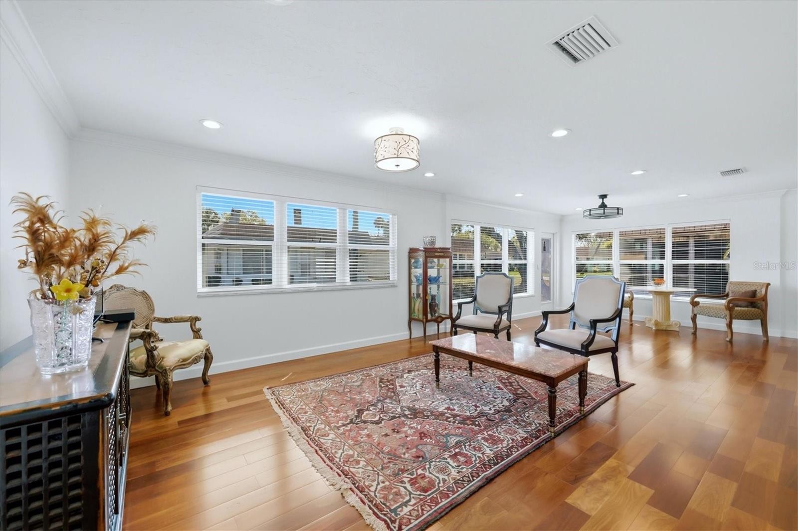 Welcome to Strathmore Riverside-perfectly positioned in the heart of Sarasota, where fun and an active lifestyle meet coastal charm! Step inside this stunning villa, fully remodeled from top to bottom with great attention to detail. The open-concept floor plan has been thoughtfully redesigned to include expanded closet space in the primary suite and a beautifully updated, more spacious bathroom. The kitchen now overlooks the living area with walls removed to create a bright, airy space that’s perfect for both relaxing and entertaining. The many updated features include hurricane impact windows, handsome Brazilian teak wood floors throughout, new 5" baseboards, new interior paint, solid-core doors, skip-troweled ceilings, new door hardware, lighting, receptacles & switches, and crown molding throughout. The kitchen has been completely opened up and features a kitchen island with offsetting color, granite tops, neutral raised-panel cabinetry, and brand-new stainless appliances. Behind the scenes, this villa has been replumbed and new A/C ductwork installed. There is a one-car carport and a large outside laundry room/workshop. The location in this 'Over-55' community of 336 villas is only a very short walk away from the community center with clubhouse, swimming pool, exercise room, and boat docks. This well-run community is 2.5 miles to a Siesta beach access, 4.5 miles to downtown Sarasota, and is conveniently surrounded by walkable restaurants, grocery, and so much more. This location has it all and this villa will absolutely not disappoint. Stop by today.