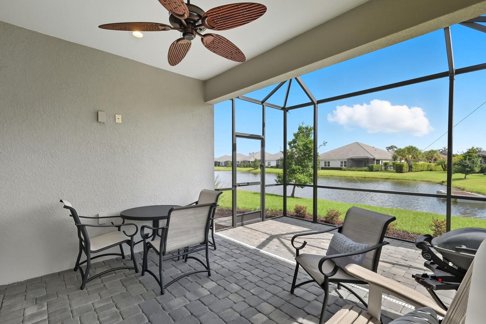 Welcome Home to this exceptional and highly upgraded Villa perfectly positioned with private and serene water views and a large back and private side yard in the Resort style Gated Community of Indigo located in the Heart of Lakewood Ranch. This Villa has a thoughtful, open floor plan that seamlessly connects to the expanded Lanai. It was built in 2021. Better than new! The high-end designer finishes create the perfect atmosphere for entertaining family, friends or daily living. The large Chef inspired Kitchen has custom white wood cabinetry with under cabinet lighting, a lovely Quartz island with sitting area, stainless appliances including gas stove plus a walk-in pantry with wooden shelving . The Dining area is conveniently positioned across from the kitchen and adjacent to the light and airy Great Room with high impact sliding glass doors for peace of mind leading to the expanded Lanai with lovely nature and water views. All main living areas have wood-look tile flooring. The Bedrooms and Den have Upgraded carpeting. Retreat to the Primary Suite with relaxing water views featuring a large Walk-in Closet with custom built-ins and a 2nd oversized closet. The ensuite Bath has dual vanities with quartz counters , white cabinetry and a large walk-in shower. The split floor plans has the 2nd Bedroom nestled toward the front of the Villa with a stylish 2nd Bath featuring white cabinets, tub with shower and private water closet. Nearby is the well equipped Laundry room and storage closet. Opposite is an ample size Flex room perfect as a den, study or extra space for company offering privacy with double herringbone wood doors. Features include Custom window treatments, Plantation shutters, upgraded lights and fans, crown moldings, high impact windows and doors , large 2 car garage and paver drive & walkway. every detail reflex's quality design, care and comfort. Enjoy effortless maintenance free living! The Villa is walking distance to the Oasis Pool, Spa and Clubhouse which is private for the Villas. The Community Resort style amenities offers a Large Pool/Spa, 5 Cabanas, a Beautiful Clubhouse and Fitness Center, 2 Bocce , 4 Pickleball Courts, a playground and an onsite Activity Coordinator. Located close to top rated schools, the UTC Mall's shopping and dining, Waterside Place, Sarasota &Manatee cultural and fun events plus our world-renowned Beaches. Location is every thing. Indigo offers the perfect balance of serenity and convenience. Don't miss this opportunity. Schedule a tour today and make this home yours! You deserve it!
