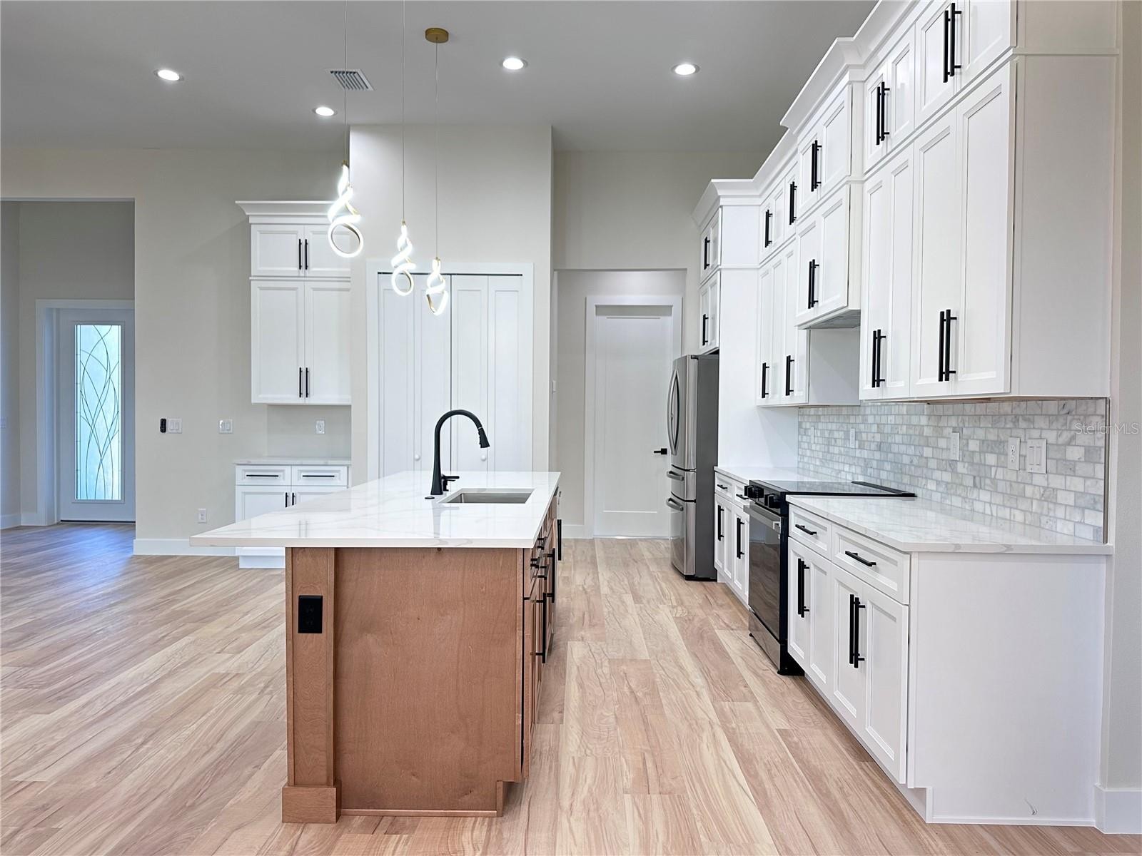 WATERFRONT NEW CUSTOM HOME! Experience the perfect blend of style, comfort and convenience in this brand NEW 2025 WATERFRONT CUSTOM BUILT HOME meticulously crafted to the latest building codes. Boasting over 2,640 square feet of total space this residence embraces 3-bedrooms, 1 office/flex room, 2-baths, and 2 car garage. Ideally situated near everyday essentials, schools, grocery stores, easy access to I-75 for convenient commuting to Fort Myers and Sarasota areas. The welcoming foyer flows into a spacious great room with a cozy electric fireplace, three panel sliding doors provide lots of natural light. 12’ high ceilings in the great room, kitchen and office with modern design and extra recessed lighting. The gourmet custom kitchen impresses with quarts countertops, large waterfall island, tall-double stacked soft-close cabinets, built-in range hood, beautiful tile backsplash, professional appliances, pantry and more. The dining area overlooks the serene waterfront backyard, with plenty of privacy - perfect for starting your day. The primary suit features two panel sliding doors, step ceiling with recess lighting while the ceiling fan providing gentle breeze. Primary bath offers-double vanity, luxurious tile throughout, spacious walk-in shower, two walk in closets, and additional linen closet. Step into the office with double picture windows or make it an extra 4th bedroom to suit your needs. Light and airy combination throughout and contemporary design. Hurricane Impact windows and doors. Inside laundry room with full set of cabinets for extra storage. NO HOA's or CDD's. Enjoy outdoor living under the covered patio overlooking the specious backyard with plenty of room for the future swimming pool. With its thoughtful design and prime location, this home is a true gem waiting for you to call it your own!