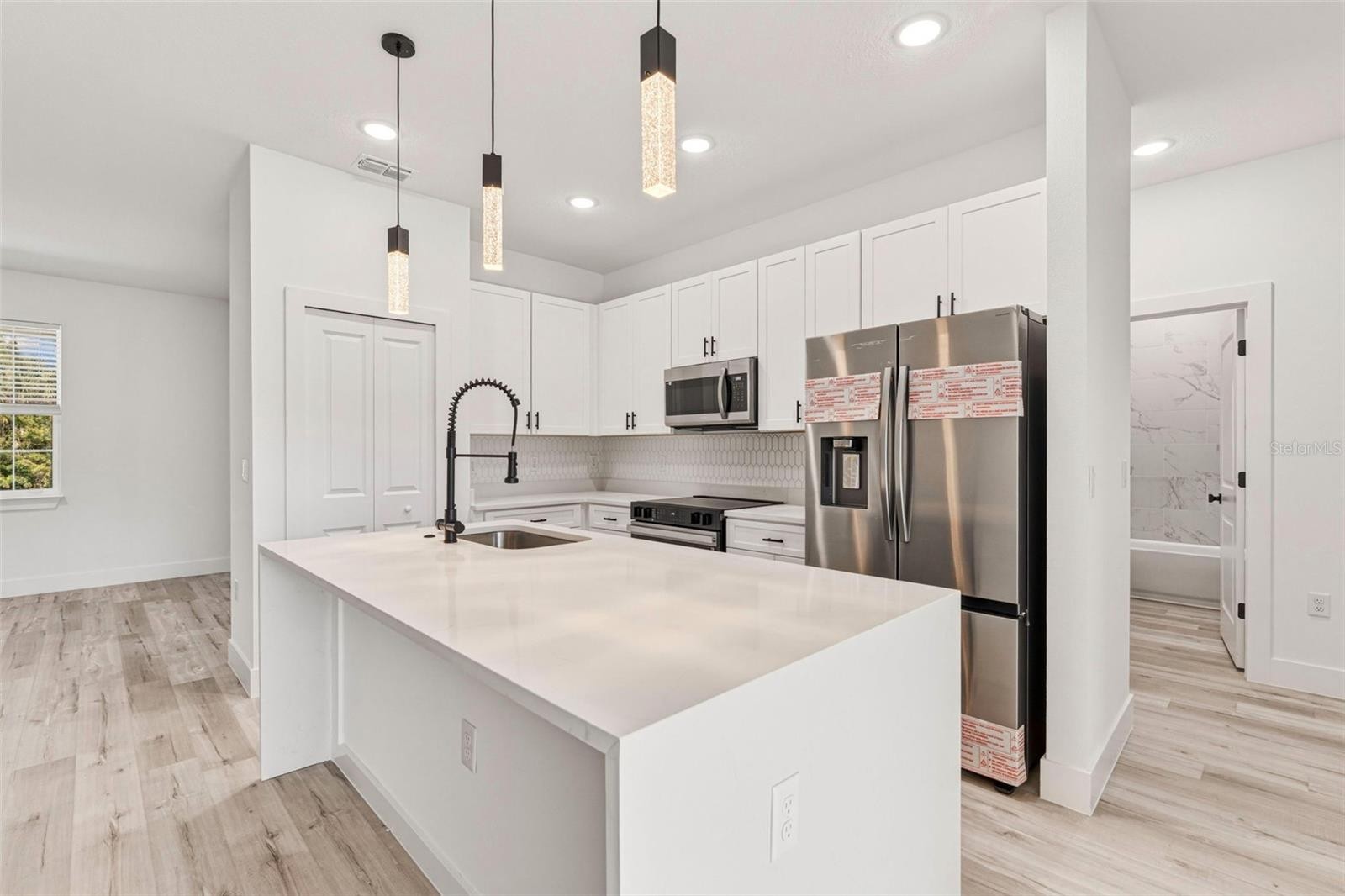 JUST COMPLETED! BRAND NEW 4 BEDROOM, 3 BATH, 2-CAR GARAGE HOME IN NORTH PORT! Stunning new construction home, designed with thoughtful details for comfort and style. Open floor plan with high ceilings, luxury vinyl flooring, contemporary and recessed lighting plus much more. Well-appointed kitchen offers soft-close cabinetry, quartz waterfall countertops, tile backsplash, stainless steel appliances, closet pantry and center island overlooking the dining and living areas. Generous primary bedroom with his and hers walk-in closets and en-suite bath featuring dual sinks, LED mirror, and walk-in tile shower. Split floor plan provides guests with plenty of privacy, featuring 3 additional bedrooms, a full guest bath, and one bedroom with its own ensuite bath perfect for hosting guests or family. Outdoor entertaining area features covered lanai and plenty of room for a pool in the backyard. Additional highlights include impact windows and doors, smart thermostat, water filtration system, epoxy garage flooring, and paver driveway. Nestled on a quiet street you'll enjoy the peace of suburban living while still being just minutes away from shopping, dining, and everyday conveniences with easy access to I-75. With North Port's affordability, friendly atmosphere, and strong community feel it's easy to see why so many are choosing to call this area home. Don’t miss this opportunity! Schedule your private showing today!