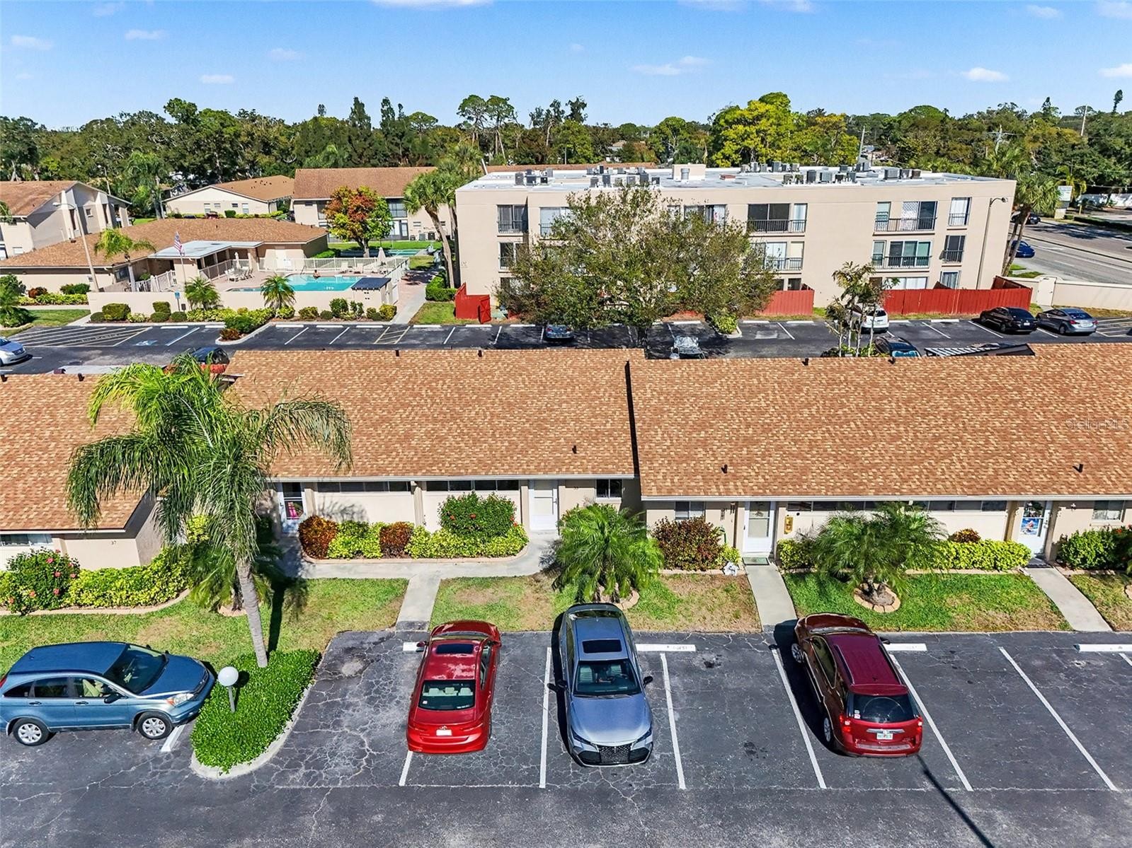 Experience comfortable Florida living in this beautifully maintained first-floor condominium, featuring 2 spacious bedrooms and 2 full baths. The open and inviting floor plan showcases elegant ceramic tile flooring throughout, complemented by a bright living and dining area perfect for entertaining or relaxing. The well-appointed kitchen boasts solid wood cabinetry, stylish stone countertops, and ample storage space. Retreat to the primary suite, complete with a generous walk-in closet and private bath, while the guest bedroom offers privacy and convenience with its own full bath. Additional upscale touches include an inside laundry room, central air conditioning, partial furnishings, exterior storage, and a covered screened patio ideal for enjoying the Florida weather. Assigned parking plus guest parking add convenience. Residents benefit from a heated community pool, fitness center, clubhouse, paved sidewalks, and meticulously maintained grounds. Monthly fees cover cable TV, water, sewer, trash, pest control, exterior maintenance, and grounds care. Ideally located close to premier shopping, dining, healthcare facilities, and Sarasota’s world-class beaches, this residence offers both comfort and style. Association approval required.