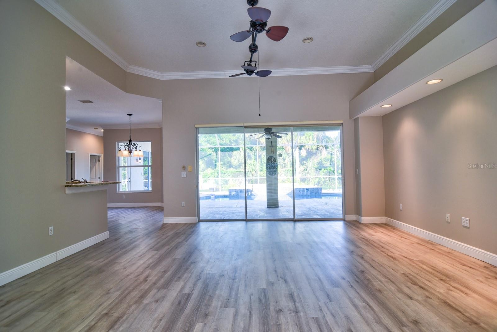 One or more photo(s) has been virtually staged. Step into elegance and comfort in this beautifully updated 4-bedroom, 3-bath plus den/bonus room pool home, nestled in the highly desirable River Woods community. Known for its tree-lined streets, manicured landscapes, and timeless charm, River Woods offers the perfect backdrop for this spacious, light-filled home. Inside, you’ll find a sophisticated formal living and dining area, soaring ceilings, crown molding, and luxury vinyl plank flooring (2025). The oversized kitchen is ideal for entertaining, featuring granite countertops, a sunny breakfast nook, and seamless access to all three guest bedrooms. Enjoy the privacy of a split floor plan, with the generous primary suite tucked away on its own wing. Step outside to your private fenced-in backyard oasis, complete with a sparkling pool, new pool pump, and rescreened enclosure (2025) — perfect for relaxing or hosting family and friends. This home has been meticulously maintained and upgraded, including a new roof (2025), interior paint (2025), and solar water heater pump (2025) — truly move-in ready! Located in one of Parrish’s most sought-after communities, River Woods offers a serene lifestyle with access to a clubhouse, pool, tennis courts, and low HOA dues—and no CDD fees. Just minutes from new shopping centers, top-rated schools, and major highways, you’ll enjoy the perfect blend of peace and convenience.