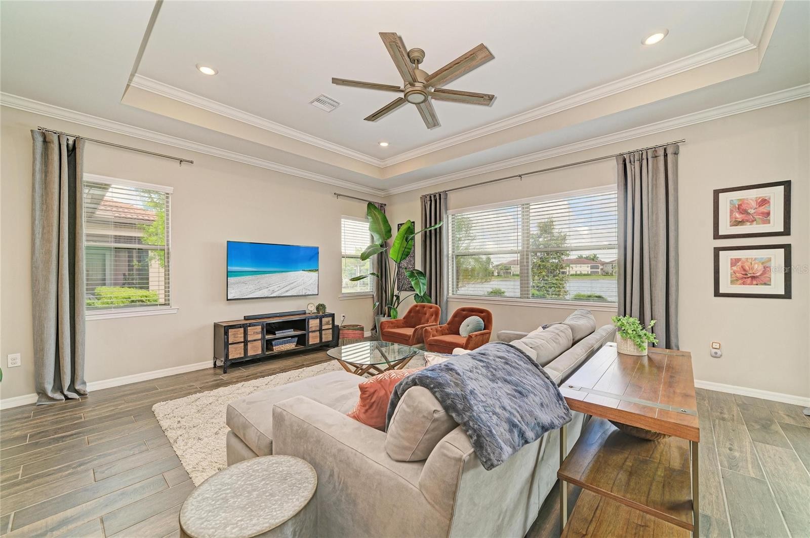 Wonderful opportunity to make this meticulously maintained 2,352SF Abbey floor plan your own! This stunning residence offers exceptional curb appeal and includes 3 spacious bedrooms, a den, 2.5 bathrooms, a generous 3-car garage, all situated on an incredible lakefront lot that offers plenty of space for your dream pool. This property truly has it all! As you step inside, you're immediately greeted by breathtaking views of the serene 33-acre lake and a wide open floor plan. The inviting modern kitchen, equipped with high-quality finishes, will spark your culinary passion. Its expansive layout, complete with a large island that flows seamlessly into the dining area and an incredibly spacious great room, creates a bright and contemporary living space. The main living area and den showcase beautiful wood-look large plank tile floors, soaring ceilings, 8-foot interior doors, and exquisite crown molding, creating a warm and welcoming atmosphere. In the kitchen, the stylish white cabinets, chic backsplash, quartz countertops, and stainless steel appliances combine to create an elegant and polished aesthetic. Picture yourself enjoying delightful views of the shimmering lake from your kitchen island while you whip up your favorite recipes! Retreat to the primary suite at the back of the home, where you’ll find two walk-in closets and a luxurious en-suite bathroom featuring dual sinks and a large walk-in shower, offering a private sanctuary for relaxation. The two additional bedrooms, thoughtfully located at the front of the house, share a Jack and Jill bathroom equipped with dual sinks and a separate tub/shower combinationperfect for accommodating family or guests! The thoughtfully placed den overlooks the spacious covered lanai and the lake, providing an inspiring work environment. Speaking of the outdoors, the expansive covered lanai is pre-plumbed for an outdoor kitchen, making it an ideal spot for enjoying al fresco dinners or entertaining friends against the stunning backdrop of the sparkling lake. Toscana Isles is a premier gated community that embraces a resort-style lifestyle perfect for those eager to engage in an active, fulfilling life. Imagine kayaking, canoeing, or fishing on over 200 acres of beautifully interconnected lakes! The grand 8,000-square-foot clubhouse is a vibrant social hub, featuring a fitness center, ballroom, and a billiards room with a big-screen TVa place where unforgettable memories are made! Location? You’ve got it! A quick 10-minute drive takes you to gorgeous Suncoast beaches, the scenic Legacy Trail, and a fantastic array of shopping, dining, and cultural experiences in Venice and Sarasota. Plus, with the new Sarasota Memorial Hospital campus nearby, all your needs are comfortably within reach. This exceptional opportunity is not one to miss! Reach out today for your private showing. You won’t regret it!
