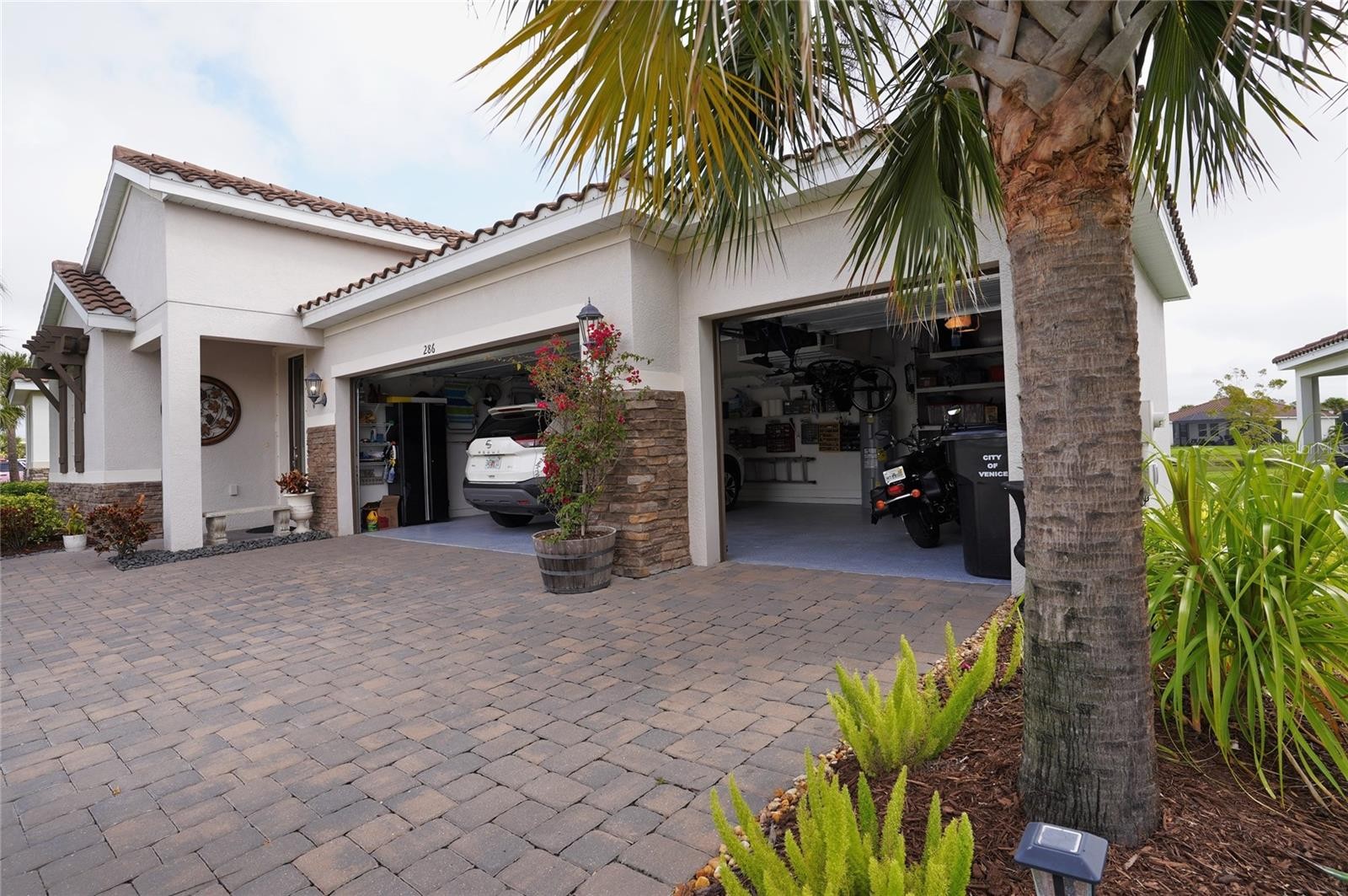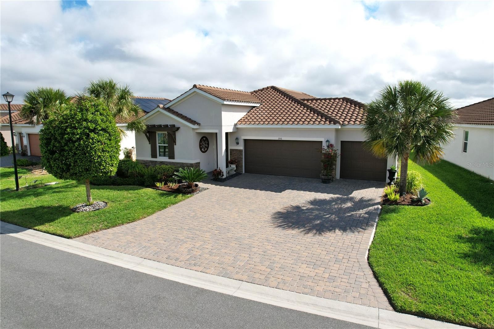 This pristine waterfront 3/2.5/3 car garage is a breathtaking like model home in a gated community. 286 Daylily Blvd is a 2,093 square foot home with 3 bedrooms Plus an additional room with 2.5 bathrooms and 3 car garage with additional parking space. This smart home is located in Venice Woodlands with no CDD fee and low HOA fee. Home was built in 2021 and has no need for flood insurance. The house sits in X, flood zone (No flood zone). Enjoy your morning coffee with the sunrise from your Lanai which leads to an outdoor paved patio area with a view of the lake. Inside the home you'll find beautiful tile floors throughout the main living area and carpet in the bedrooms. Primary bedroom includes an en suite bathroom with walk-in closet, linen closet and dual vanity with granite counter tops plus a private water closet. Guest rooms have large closets for plenty of storage. The kitchen comes with all upgraded appliances that include a glass top stove with convection oven, microwave, refrigerator, and dishwasher. 42" kitchen cabinets, walk-in pantry, canned and pendant led lighting and granite counter space. The laundry room includes a utility sink with extra large cabinets. You can walk to your club house fitness center or pool for your quick workout before or after work. Close to local amenities, beaches, and Tiki Bars and Live entertainment. The best game fishing in the world with off speed boat racing to spring training baseball teams as The Atlanta Braves and Tampa Rays. Just want to go to the beach or go fishing for the day. Great to do it all with whatever you can dream or do as a hobby. Local International Airports: Fort Myers, Sarasota and local Punta Gorda with Allegiant airlines direct. Many outdoor concert venues weekly. Local parks, state parks, tennis or pickle ball, to amazing golf courses. You deserve to view this property and make it your home or investment.