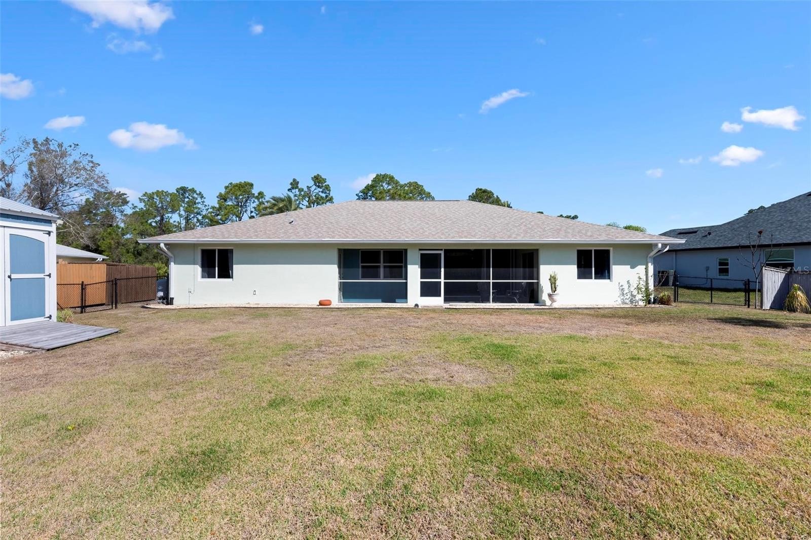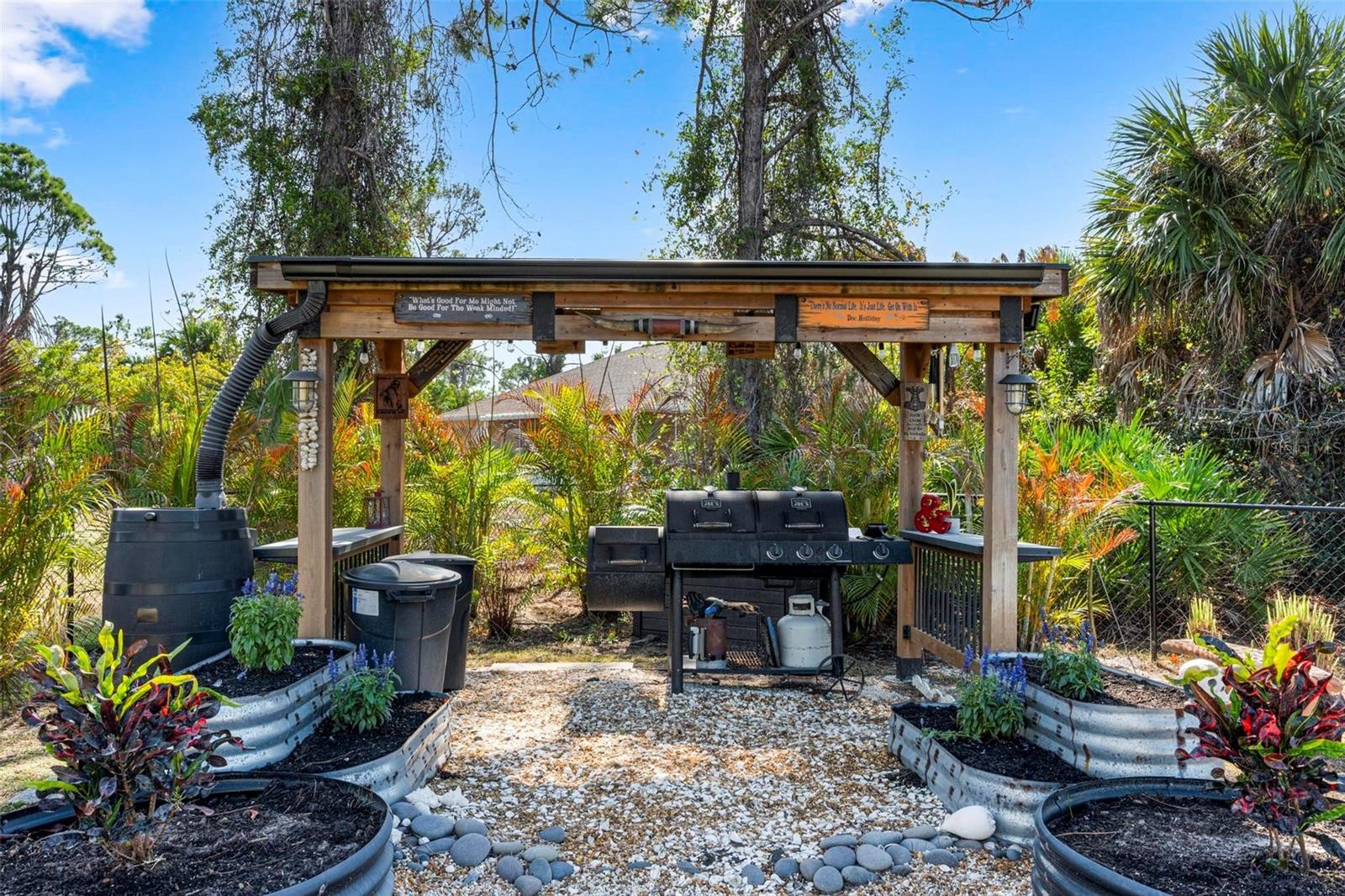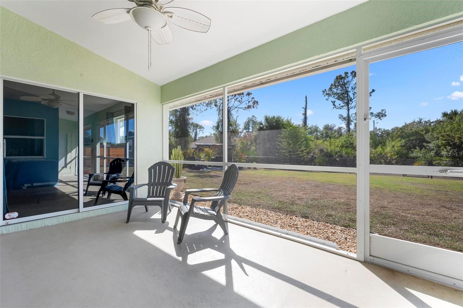 LOCATION, LOCATION, LOCATION - With an assumable VA mortgage opportunity! I am delighted to present an exceptional residential offering that perfectly embodies the adage of prime location coupled with meticulous care, modern amenities and the added advantage of a valuable assumable VA mortgage for qualified buyers. This impeccably maintained property in North Port, designed as the sought-after Biscayne model, promises a tranquil and convenient lifestyle. Upon entering this distinguished residence, you are greeted by an expansive open floor plan accentuated by soaring cathedral ceilings, creating an immediate sense of spaciousness and airiness. The thoughtfully designed layout includes three well-appointed bedrooms plus a versatile den, perfect for a home office, study, or additional guest accommodation. The property also benefits from an oversized two-car garage, offering ample storage and convenience. The oversized primary suite is a true sanctuary, featuring dual walk-in closets for generous storage, dual vanities for added comfort, a beautifully tiled shower, and a private water closet, ensuring a refined and private experience. This home has undergone significant and recent upgrades, providing both aesthetic appeal and peace of mind. These include brand new flooring installed in 2023, a modern air conditioning system from 2022, a recently replaced roof in 2018, updated plumbing fixtures and a new sink added in 2022, and a professionally serviced septic system in 2023. Further enhancements include a whole-house Kinetico water system, comprehensive hurricane shutters, LeafGuard gutters with underground drainage, a Ring security system, and pre-wiring for both fiber and cable, ensuring modern comfort, security, and connectivity. Step outside into your private outdoor oasis, where the professionally landscaped grounds feature a fully fenced backyard designed for relaxation and entertainment. Enjoy the in-ground fire pit, cultivate your passions in the raised garden beds, or find serene privacy behind the elegant bamboo feature. A hurricane-proof gazebo provides a perfect shaded retreat, and an oversized, powered shed (installed in 2021) offers ample space for hobbies or additional storage. Strategically situated on a quiet street, this home offers unparalleled convenience with immediate access to I-75, close proximity to various shopping destinations, and scenic walking paths along Panacea Drive. In addition to its exceptional features, this property offers a rare opportunity: an assumable VA mortgage for qualified buyers, potentially allowing a purchaser to take advantage of a favorable interest rate with lender approval. This turnkey residence represents a remarkable opportunity for comfortable, ready-to-enjoy living.