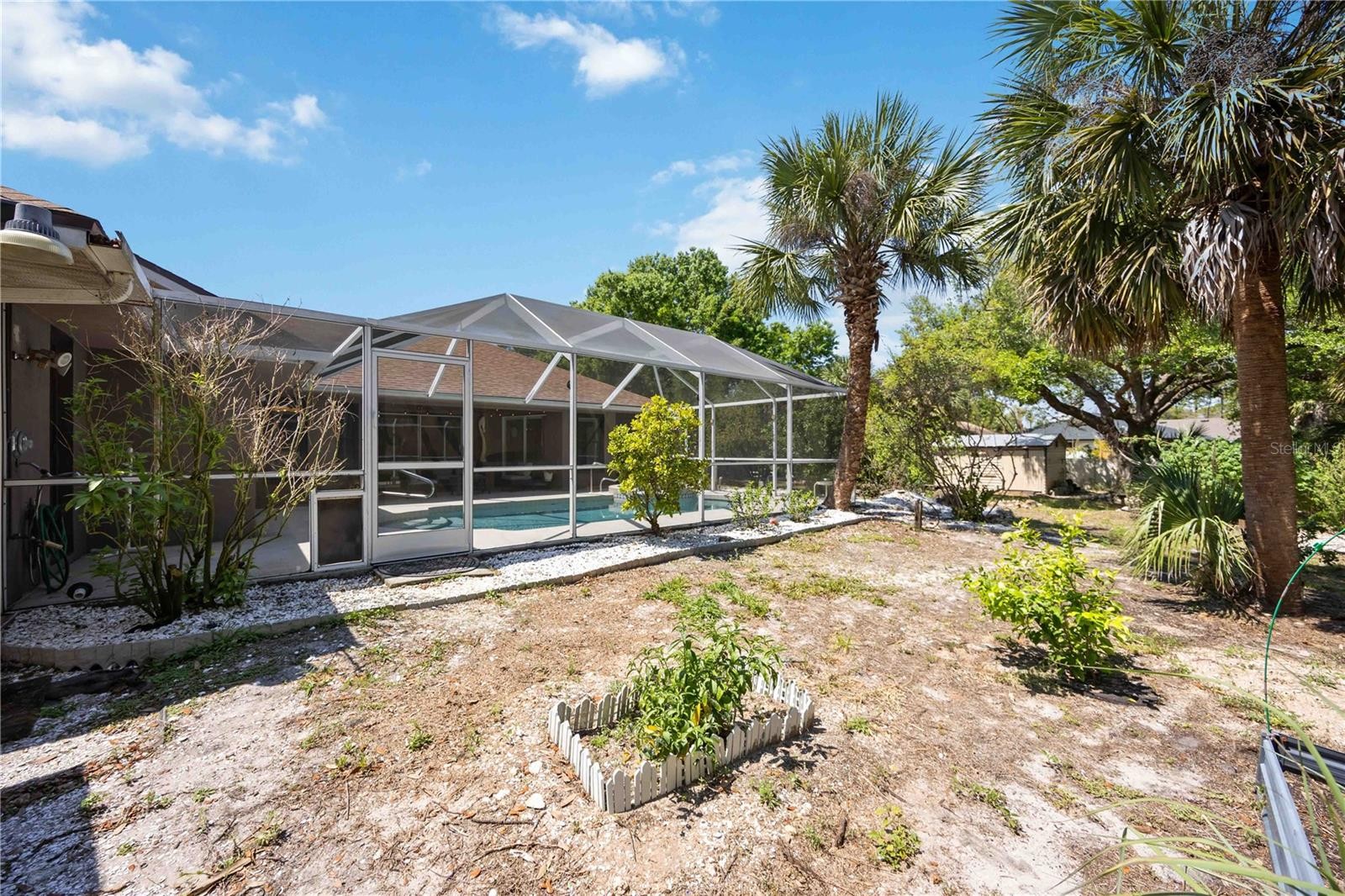 Unveil the beauty of a home designed for effortless Florida living. This large ,split plan, family home includes 4-bedrooms, 3 baths, Double Lot and Heated Pool with spa. This residence offers 2,148 sq ft of light-filled space in the heart of North Port. Thoughtfully updated with a NEW ROOF (2024), NEW AC (2024), New kitchen (2023) and new insulation installed in attic providing optimal heating and air all year round. This well planned home blends comfort with peace of mind—plus it’s located in Flood Zone X, so no flood insurance is required. Step inside to an open, airy floor plan where the living spaces flow seamlessly into the kitchen, highlighted by easy-care tile and wood flooring and an over-sized attached 2-car garage (30 x 22} providing ample storage and work space. The split-bedroom layout provides flexibility for growing households or visiting guests. Outdoors, your private retreat awaits—a heated pool and spa perfect for year-round enjoyment and entertaining under the Florida sun, outdoor shower and bathroom access. An added bonus: the adjacent lot has already been combined with vinyl fencing enclosing entire second lot offering extra space and future potential. Wait there's more, if you need a place to work, play or just meditate this property includes a she-shed that is fully insulated and has a wall A/C unit for comfort. Ideally situated near the natural beauty of Warm Mineral Springs Park, spring training excitement at Cool Today Park, family fun at North Port Aquatic Center, and easy access to the Legacy Trail connector and the new Myakkahatchee Creek Greenway Nature Trail—this location offers the perfect balance of recreation and relaxation.