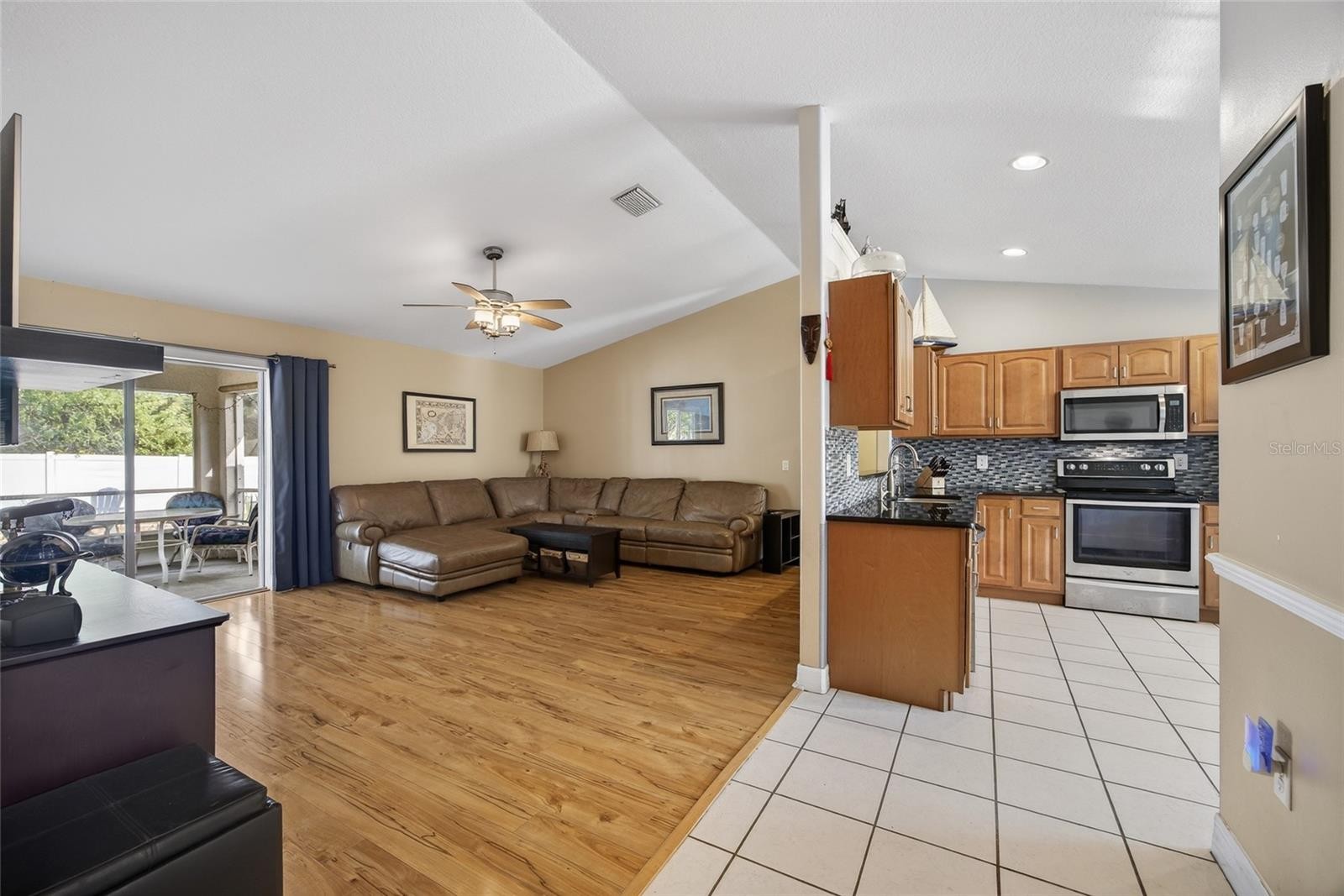 GREAT LOCATION! 3 BEDROOM, 2 BATH, 2-CAR GARAGE, HOME IN NORTH PORT! This home features 1,365 sf of living space, high ceilings, laminate and tile flooring in main living areas. The kitchen has wood cabinetry, granite countertops, tile backsplash, stainless steel appliances, and eat-in kitchen. Generous primary bedroom has double tray ceiling, walk-in closet and private ensuite with walk-in shower. Split floor plan ensures privacy, with two additional bedrooms sharing a full guest bath. Step outside to a covered lanai overlooking the fenced backyard with mature trees for privacy. Additional highlights include new AC (2026), water softener and sulfur blocker (2024), Armorvue impact windows (2022) with 1 year warranty for new owner, and a newer roof (2022) with a 10 year transferable warranty. Located minutes from I-75, Murdock shopping and restaurant district, schools, hospitals and outdoor activities. Don’t miss this opportunity! Schedule your private showing today!