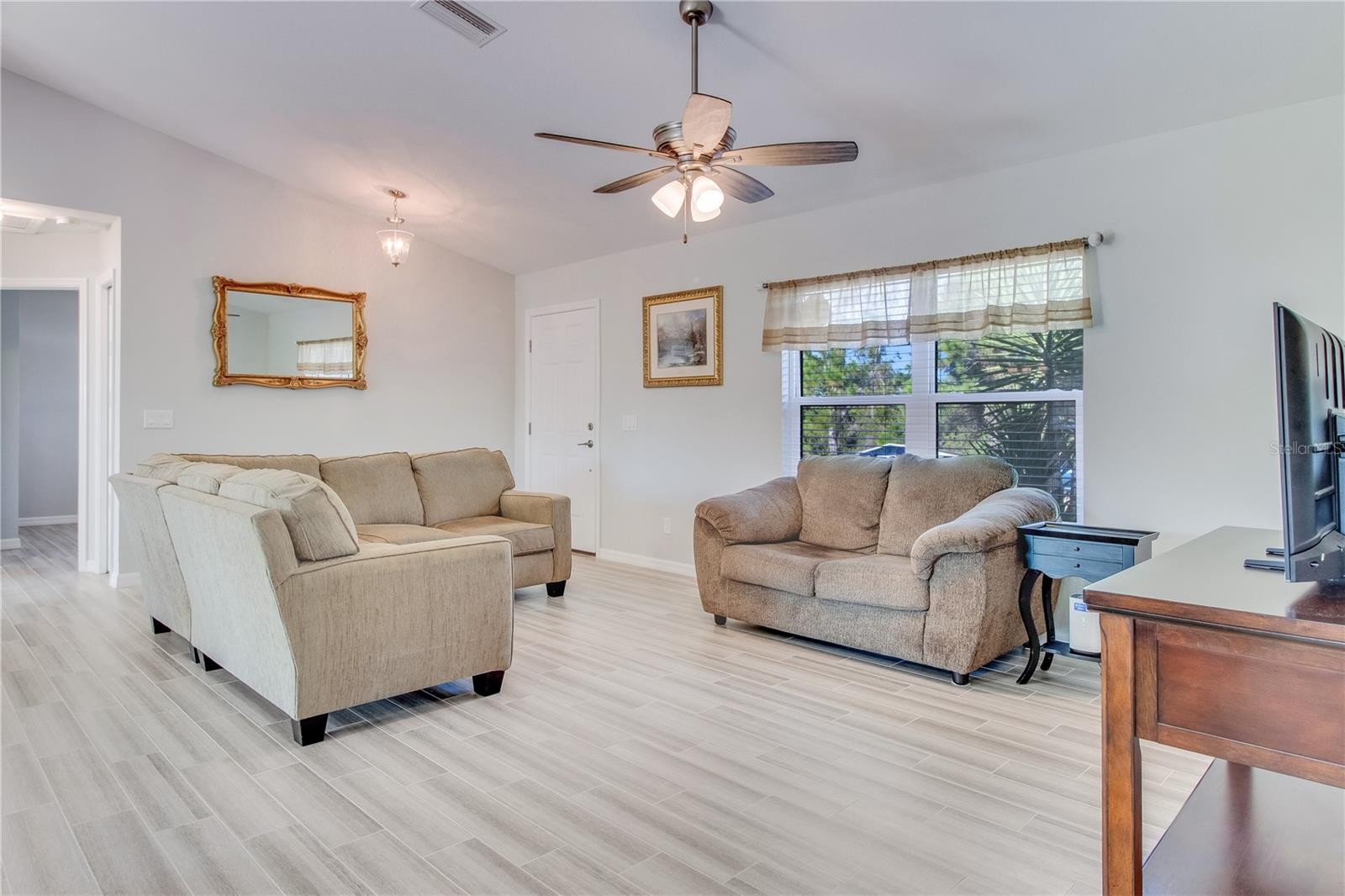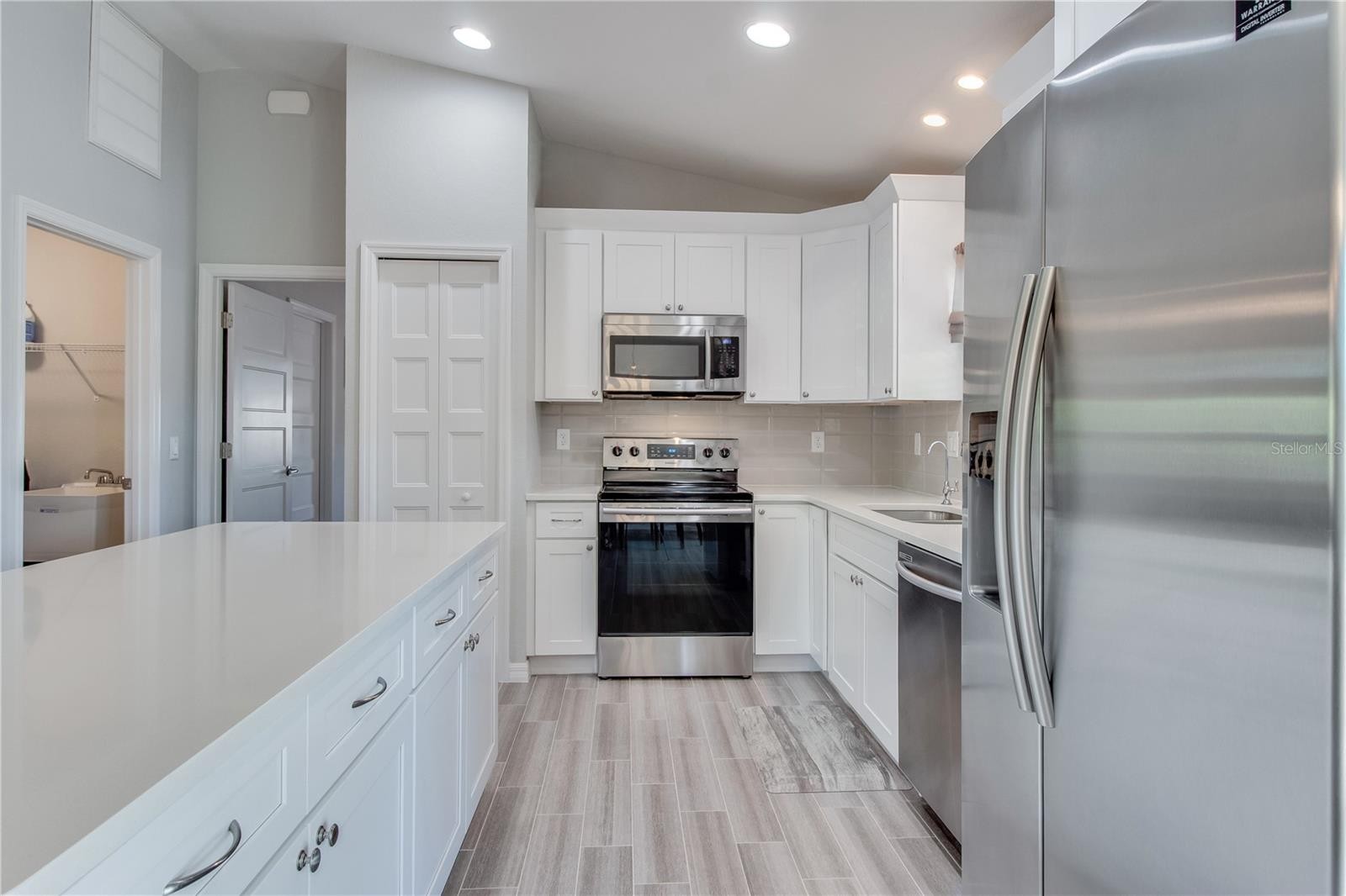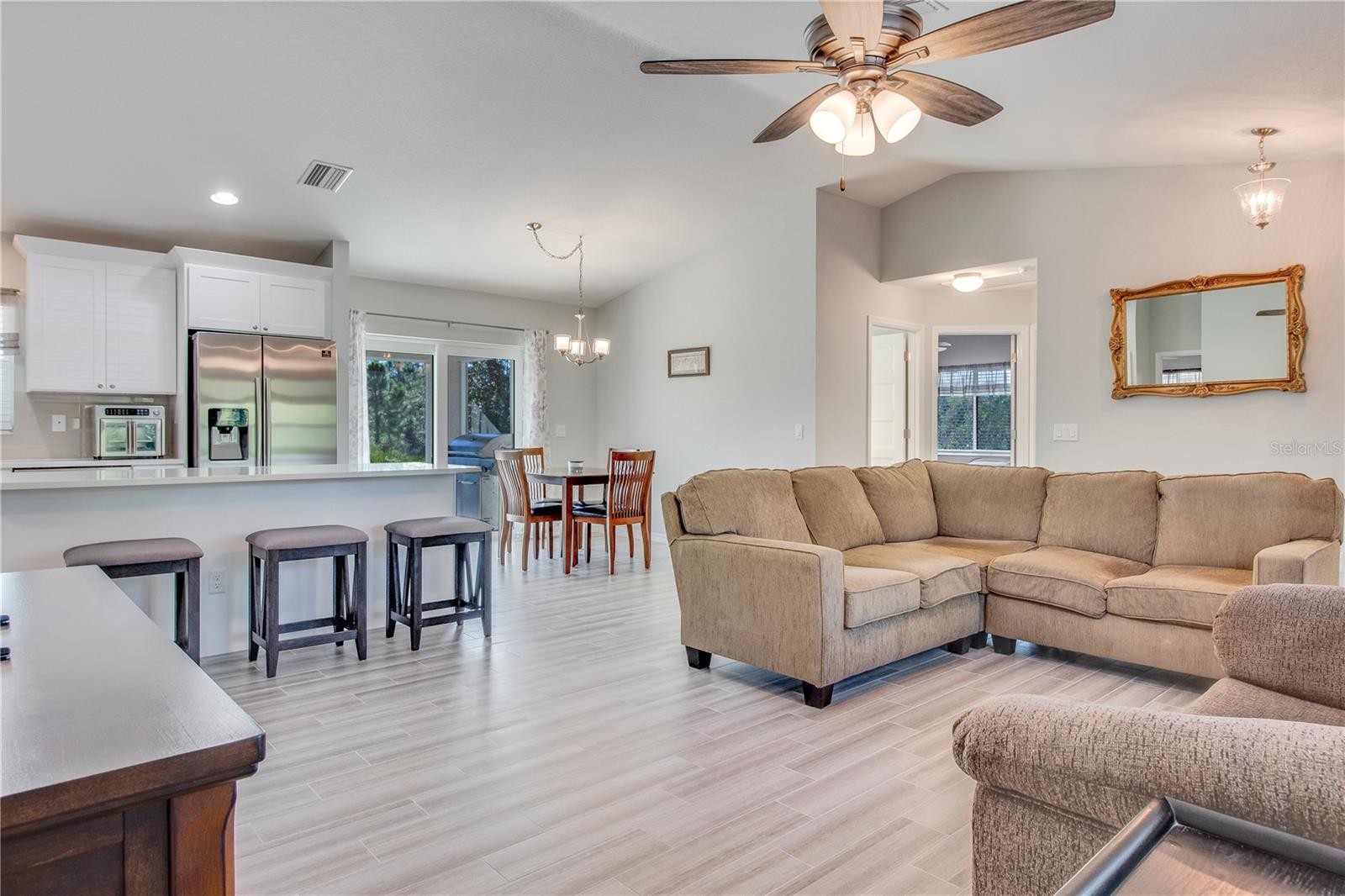 **3D interactive virtual tour available** Welcome to this meticulously maintained and tastefully updated 2020 Walker home, offering 3 bedrooms, 2 bathrooms, and a 2-car garage, perfectly positioned in one of North Port’s most desirable neighborhoods. Built for comfort and peace of mind, this home features full exterior gutters, five-panel interior doors, soft-close cabinetry, regularly serviced A/C and pest control, plus HURRICANE IMPACT WINDOWS AND DOORS throughout. Tucked away on a quiet street and surrounded by nature conservatory lots, the setting offers a true sense of privacy and tranquility. Curb appeal shines with fresh landscaping, decorative pebble rock, exterior lighting, and elegant entry pillars that welcome you home. Step inside and instantly feel at home as you’re greeted by a spacious and open floor plan, featuring high, vaulted ceilings, neutral tones, and wood-plank style porcelain tile runs the entire home making cleaning a breeze and pet friendly. Front windows from the Great Room, allow natural sunlight to shine through. The kitchen is truly the heart of the home, featuring quartz countertops, white cabinetry with decorative molding, a closet pantry, plant shelves, and an under-sink reverse osmosis system. A centrally located island offers additional storage and seating, all beautifully illuminated by recessed lighting. Best of all, the stainless-steel appliances are included. Just off the kitchen, a cozy dining area provides the perfect spot to enjoy your morning coffee while you get ready to start your day. The desirable split-bedroom layout offers privacy for both owners and guests. Guest bedrooms are generously sized with ceiling fans, ample closet space, and natural light. The guest bathroom includes a tiled tub and shower combination, modern vanity, and upgraded lighting. The primary owner’s suite is a relaxing retreat with a walk-in closet and a well-appointed en-suite bath featuring dual vanities, linen closet, and a stunning walk-in shower complete with river stone flooring, built-in niche, and bench seating. A large interior laundry room adjacent to the kitchen provides room for storage and functionality all within your air-conditioned living area. From the dining area, HURRICANE IMPACT sliding glass doors lead to a screened in lanai, a wonderful space to unwind and relax with a good book, all while taking in the serene setting of your spacious backyard with a natural backdrop of sunshine, chirping birds, and mature oaks, which creates a relaxing outdoor retreat. The well-kept, attached two-car garage is well equipped with shelving, wall cabinets, and a workbench with pegboard, perfect for hobbies or weekend projects. With no HOA, no deed restrictions, and no flood zone designation, this home offers exceptional flexibility. Conveniently located near schools, dining, Coco Plum Shopping Center, and the vibrant Wellen Park area featuring the Atlanta Braves Spring Training stadium, dining, fishing pier, and weekly Sunday farmers market. Easy access to I-75 and US-41 puts you just a short drive from some of Florida’s most beautiful beaches. Whether you are searching for a full-time residence or a seasonal escape, this beautifully cared-for home delivers comfort, style, and functionality in a prime location. Schedule your showing today and start your next chapter here.
